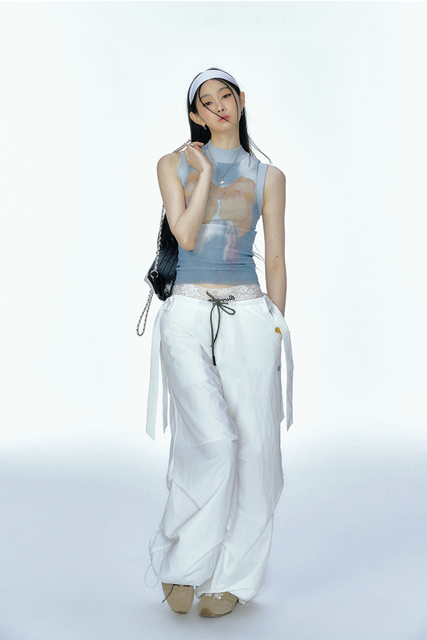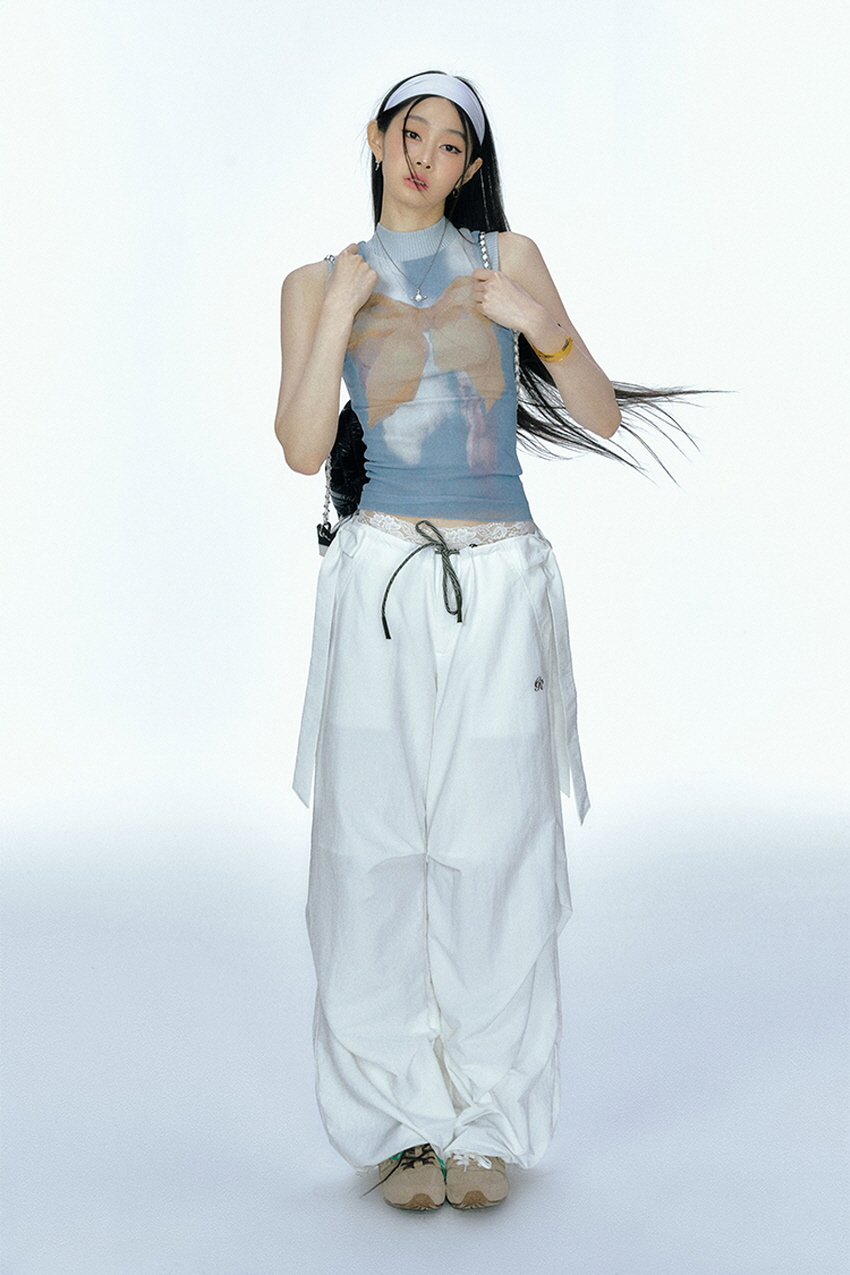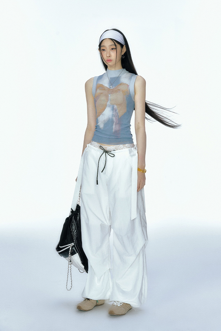 Detachable Ribbon White Sports Pants