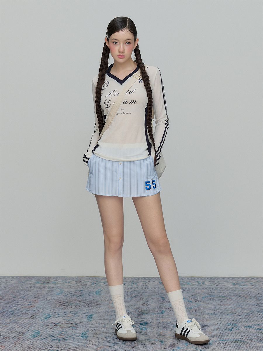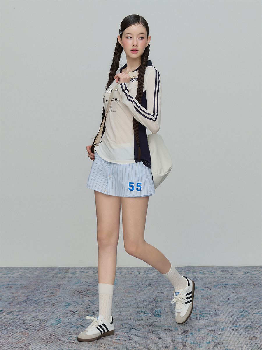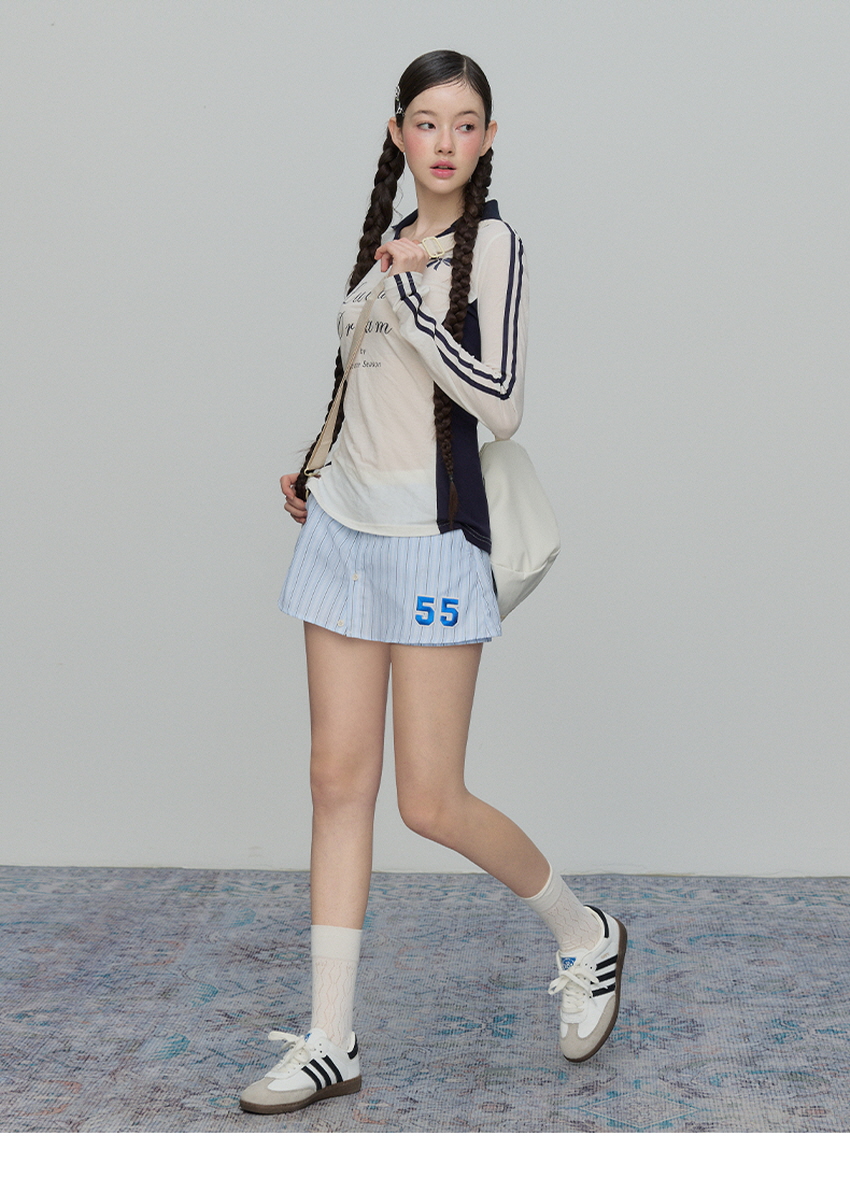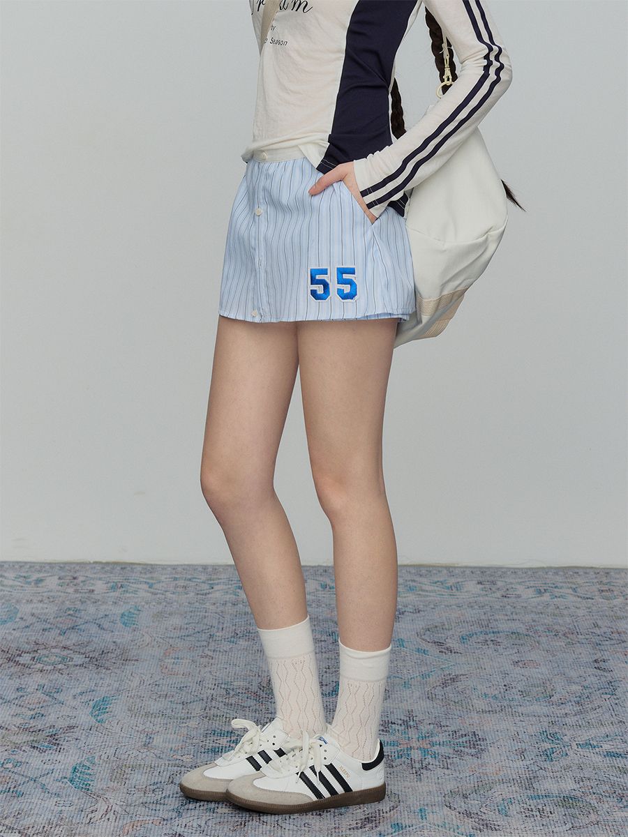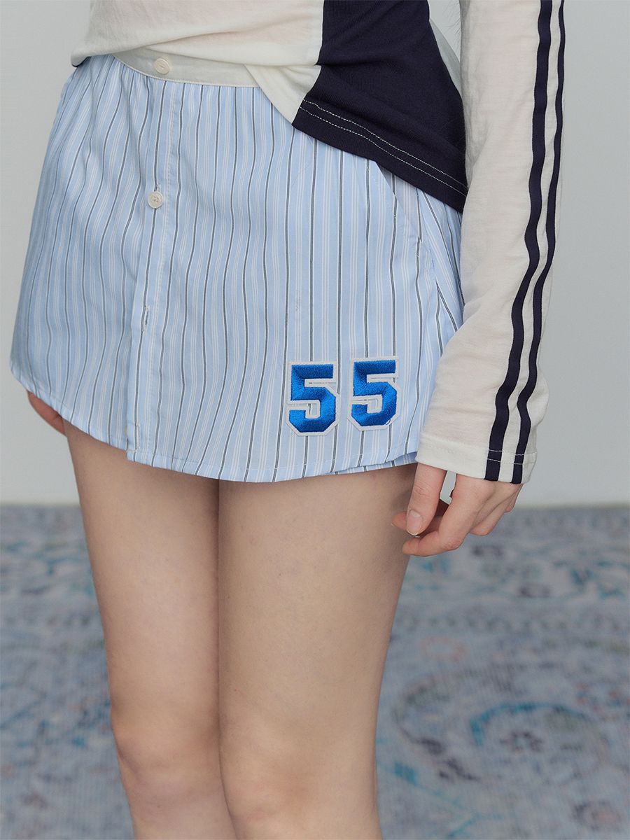 데일리하게 입을 수 있는 스포티한 스트라이프 A라인 스커트 팬츠입니다.