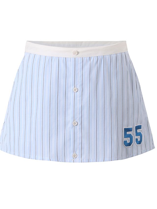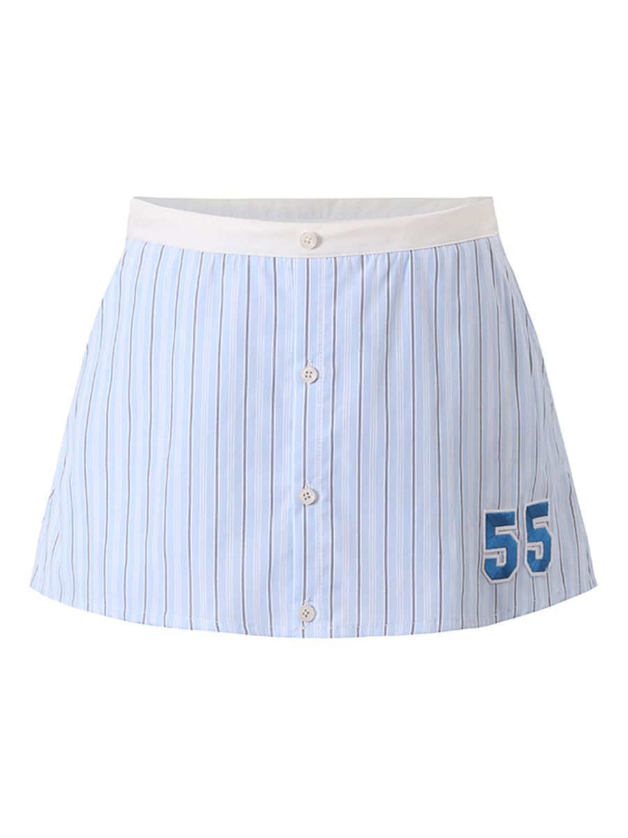 Blue Striped Casual Skirt Pants