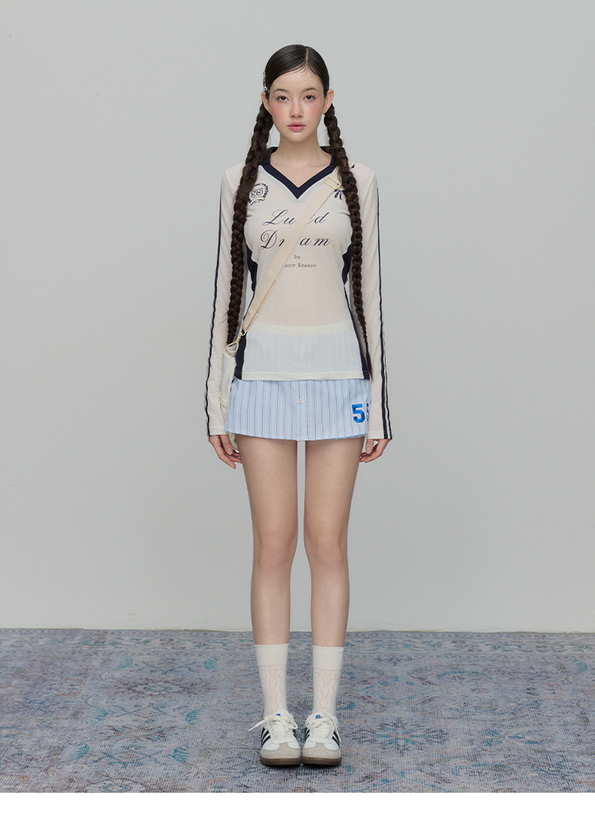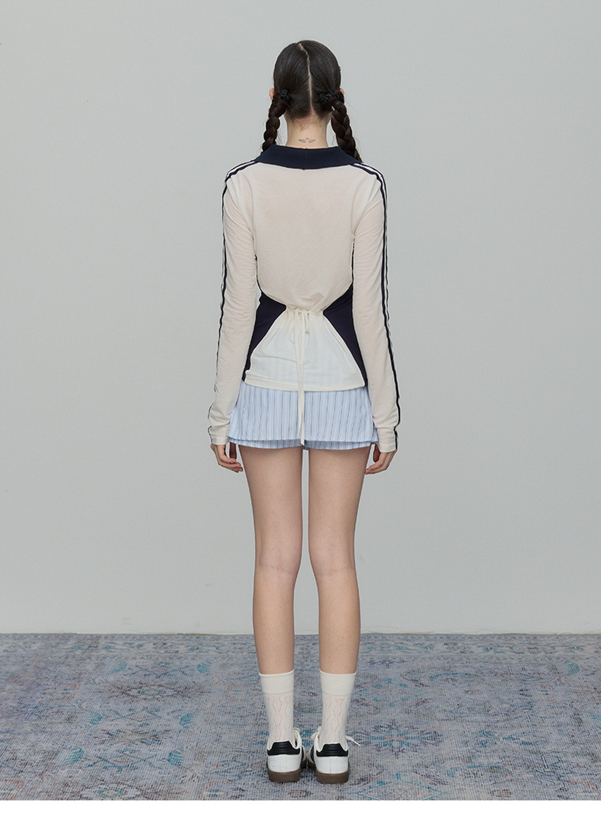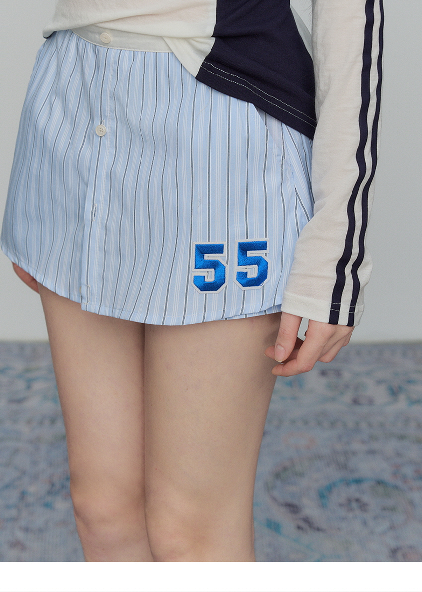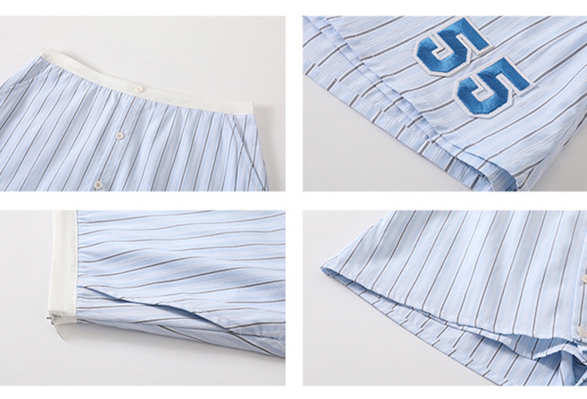 - 허리밴드와 대비되는 블루 스트라이프 색감이 청량하게 표현됨
