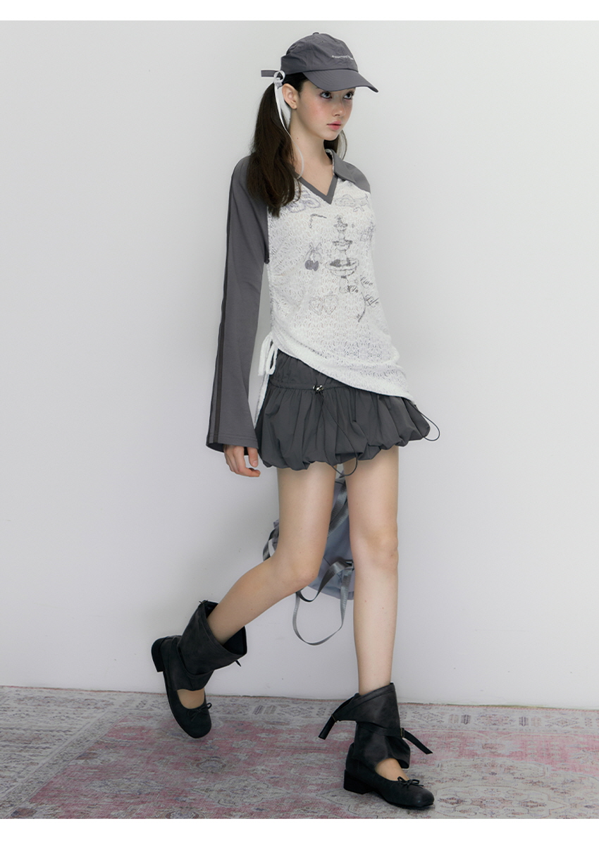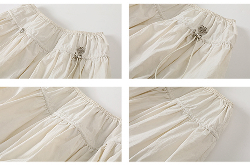 - 셔링 디테일의 A라인으로 여성스럽고 볼륨감이있어 체형 커버에 좋습니다.