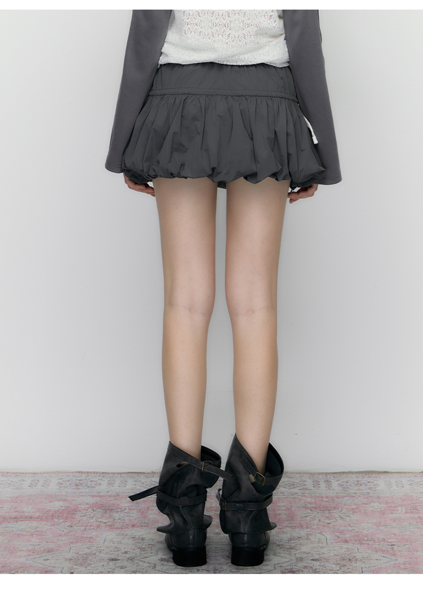 스트링 디테일 포인트가 있는 부케 꽃 같은 풍성한 미니스커드입니다.