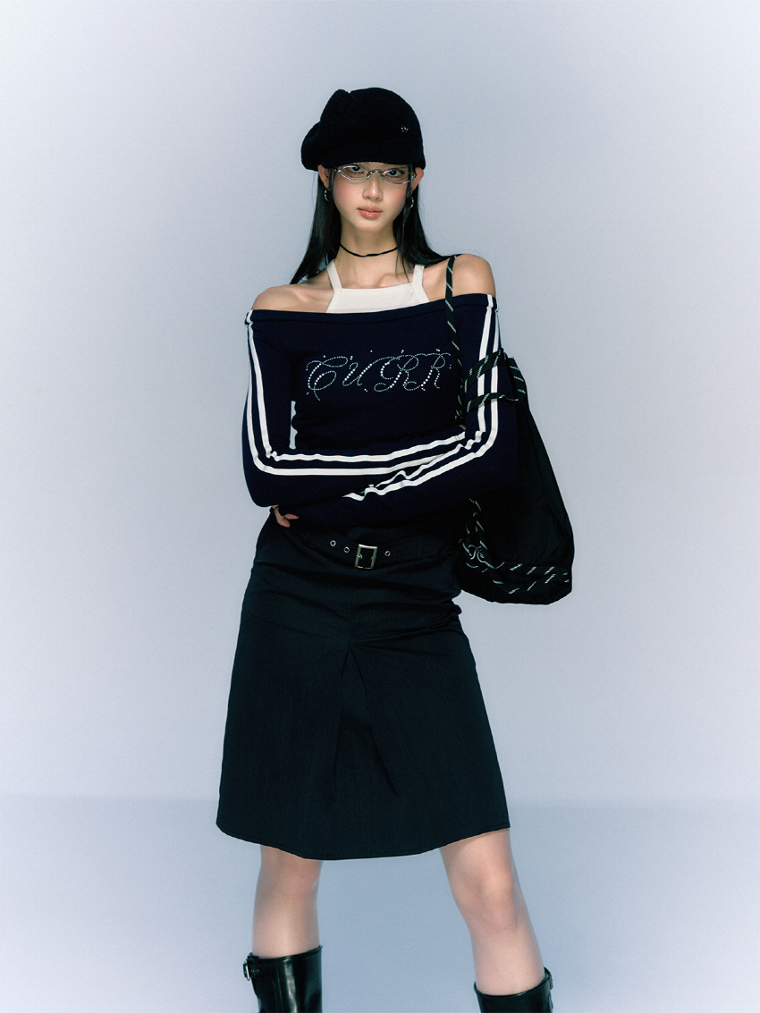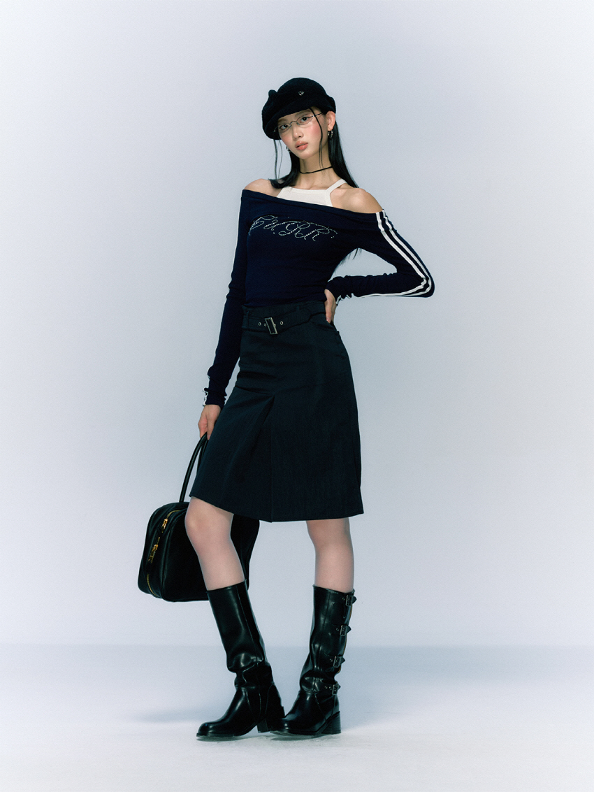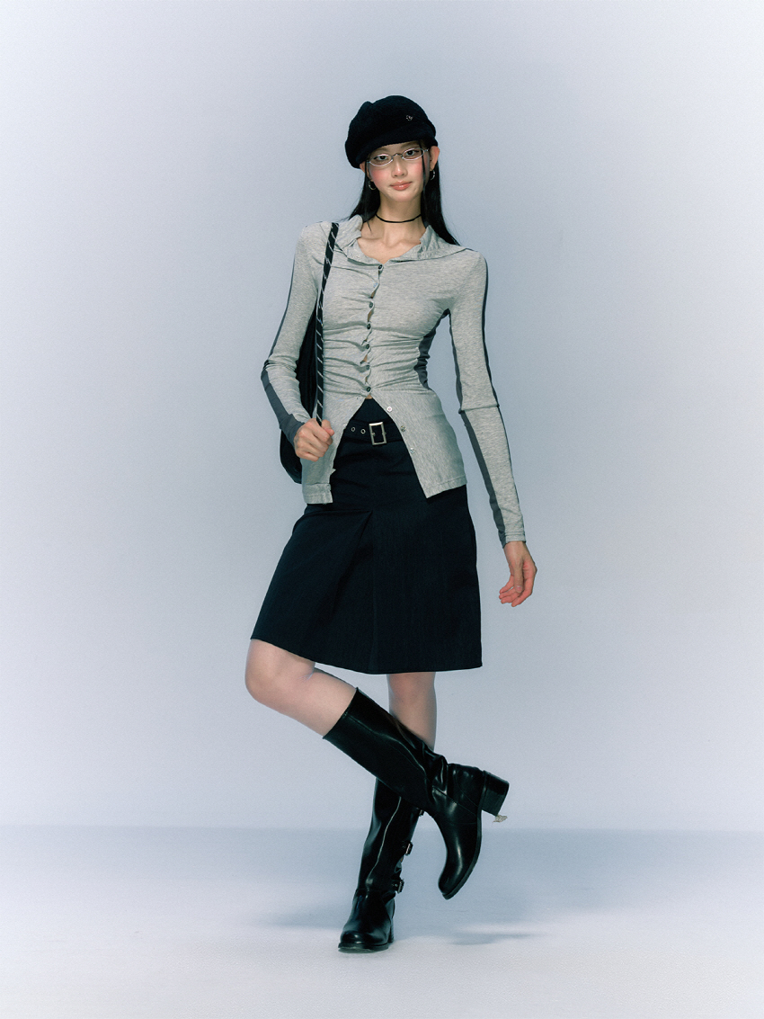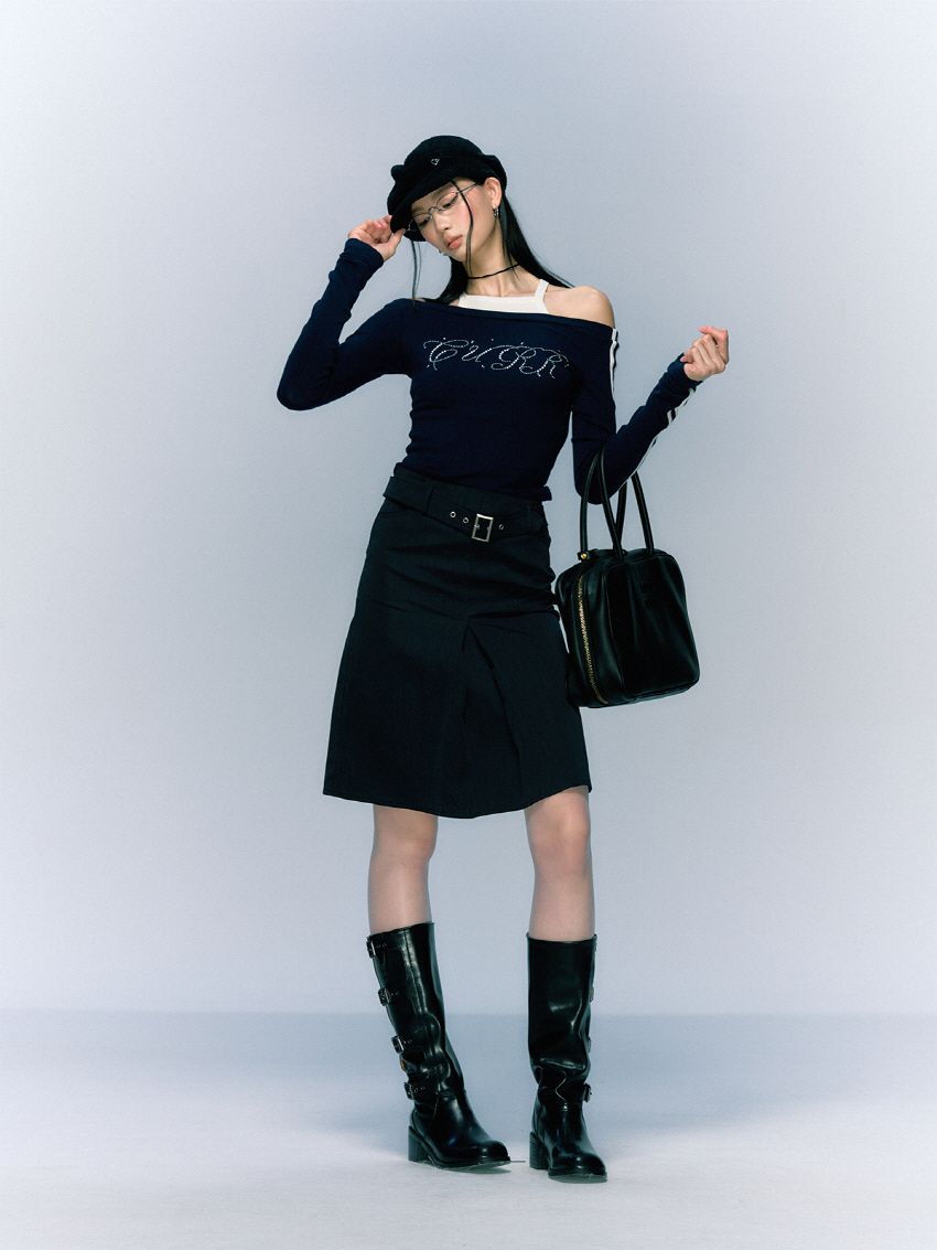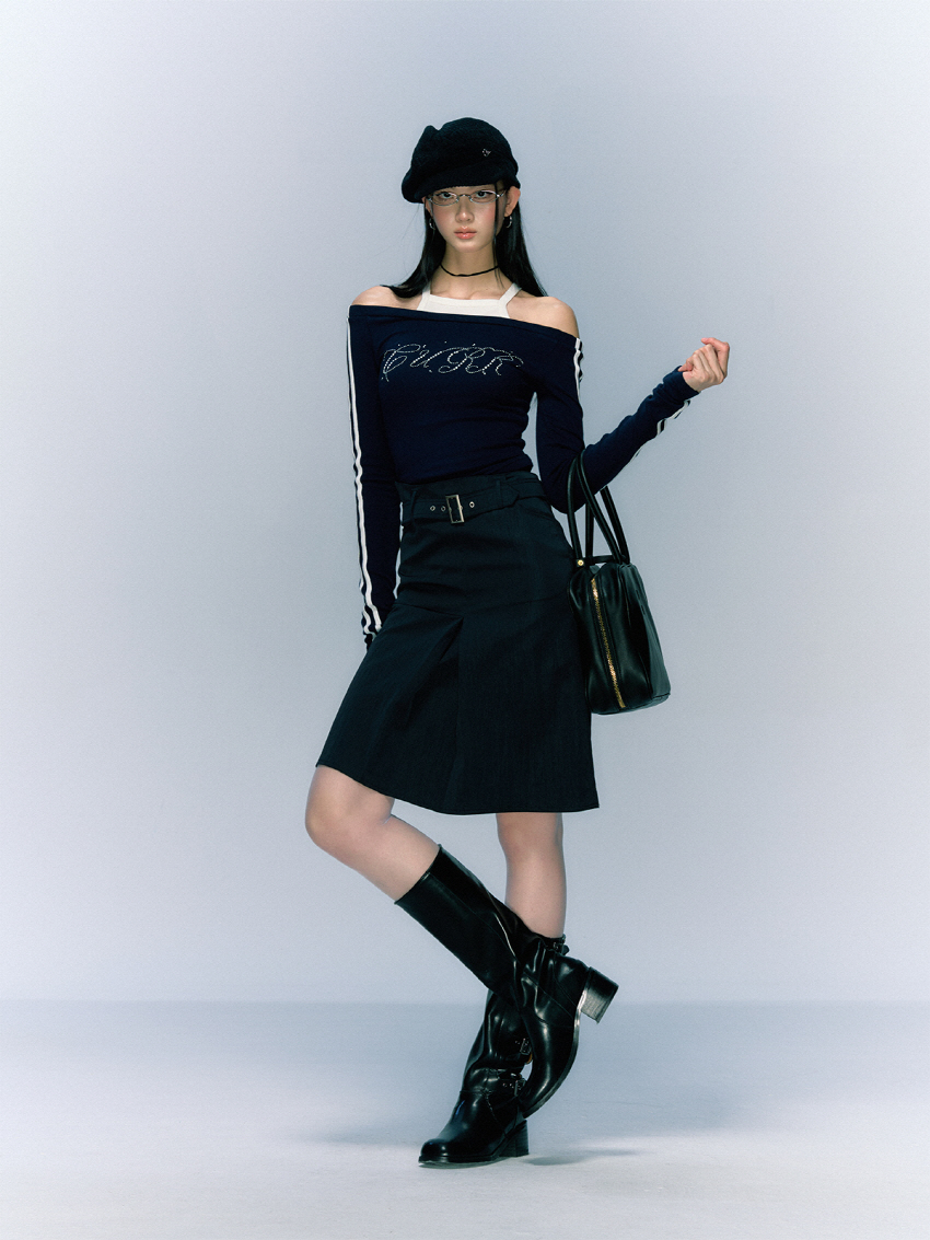 클래식하면서 빈티지한 벨트와 클래식한 무드의 A라인 하프 스커트입니다.