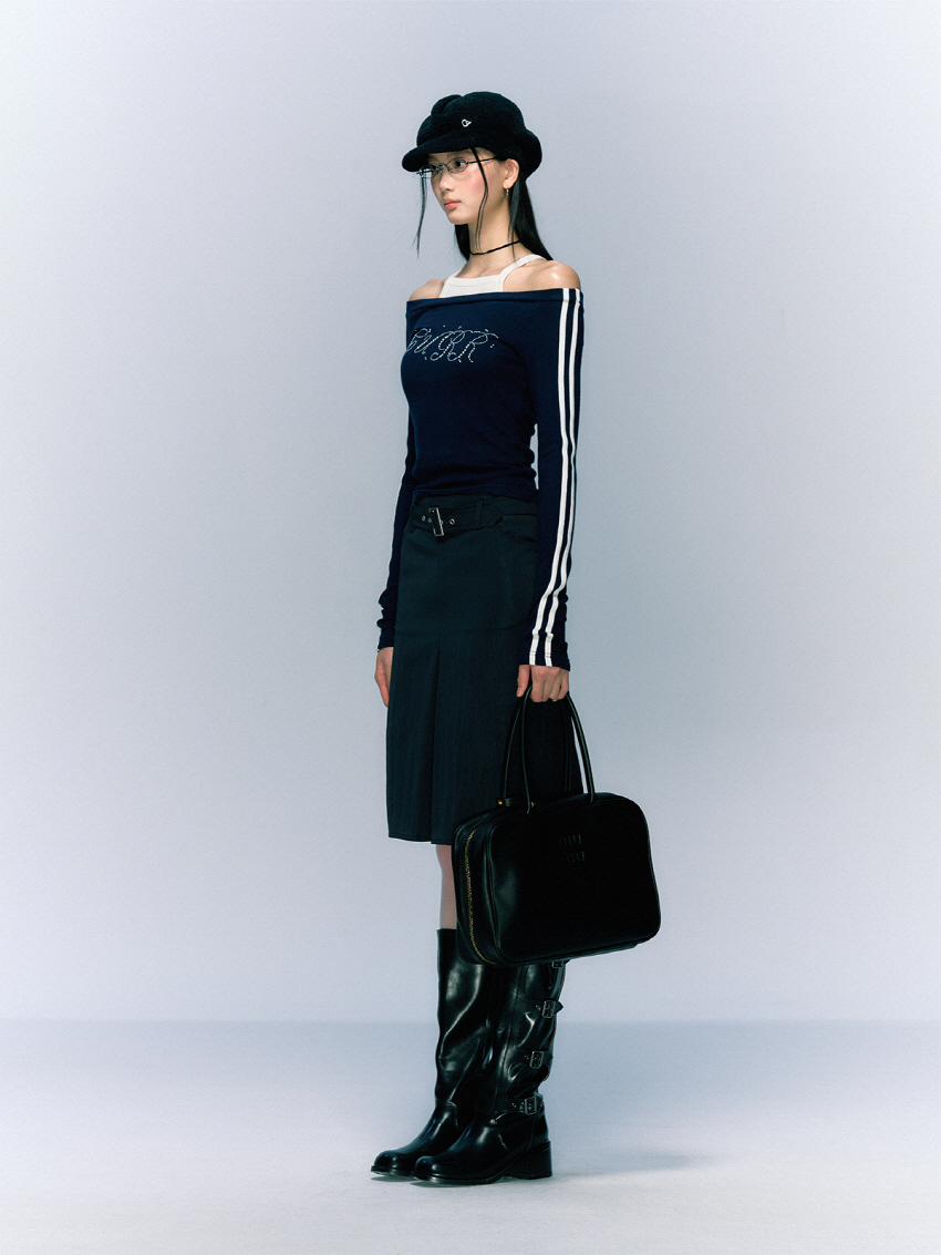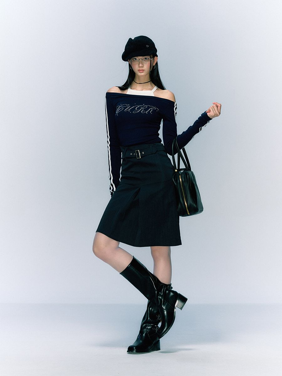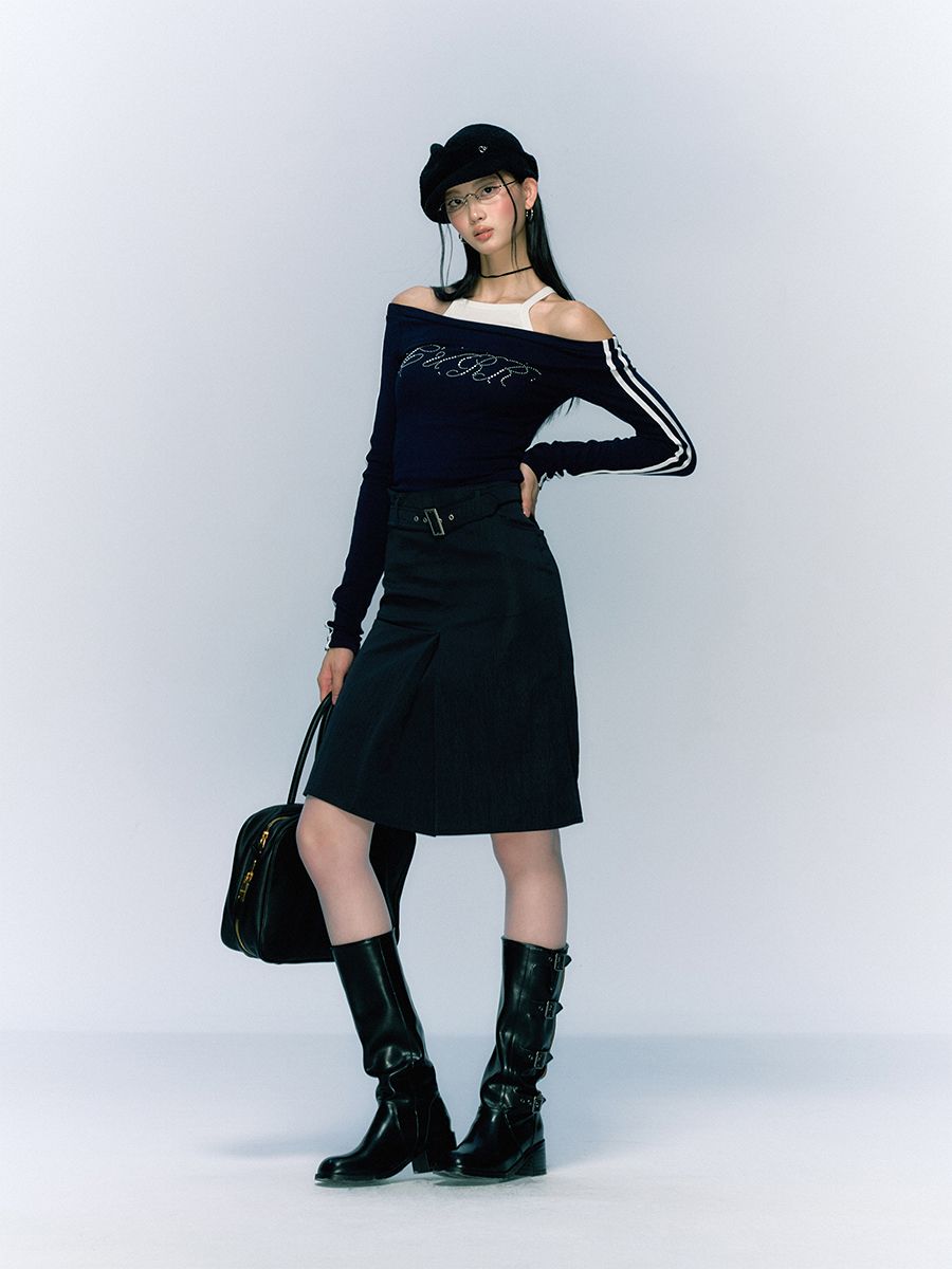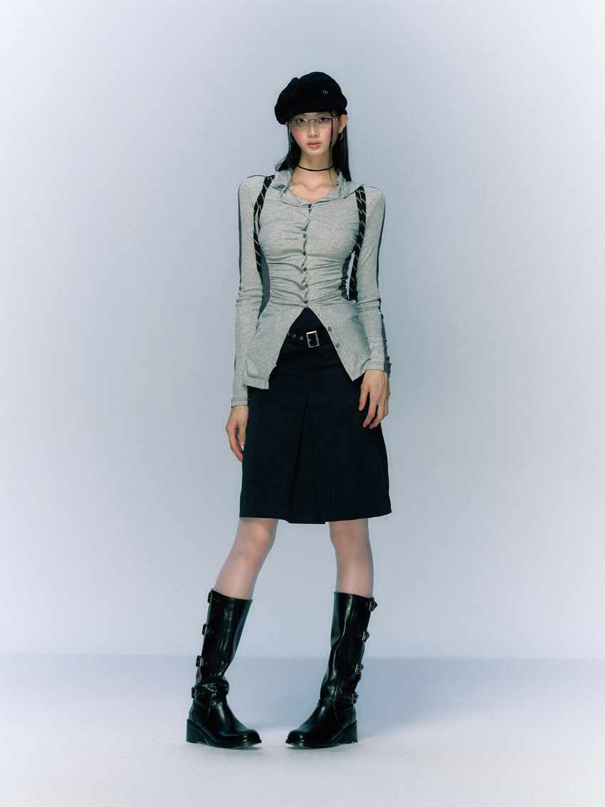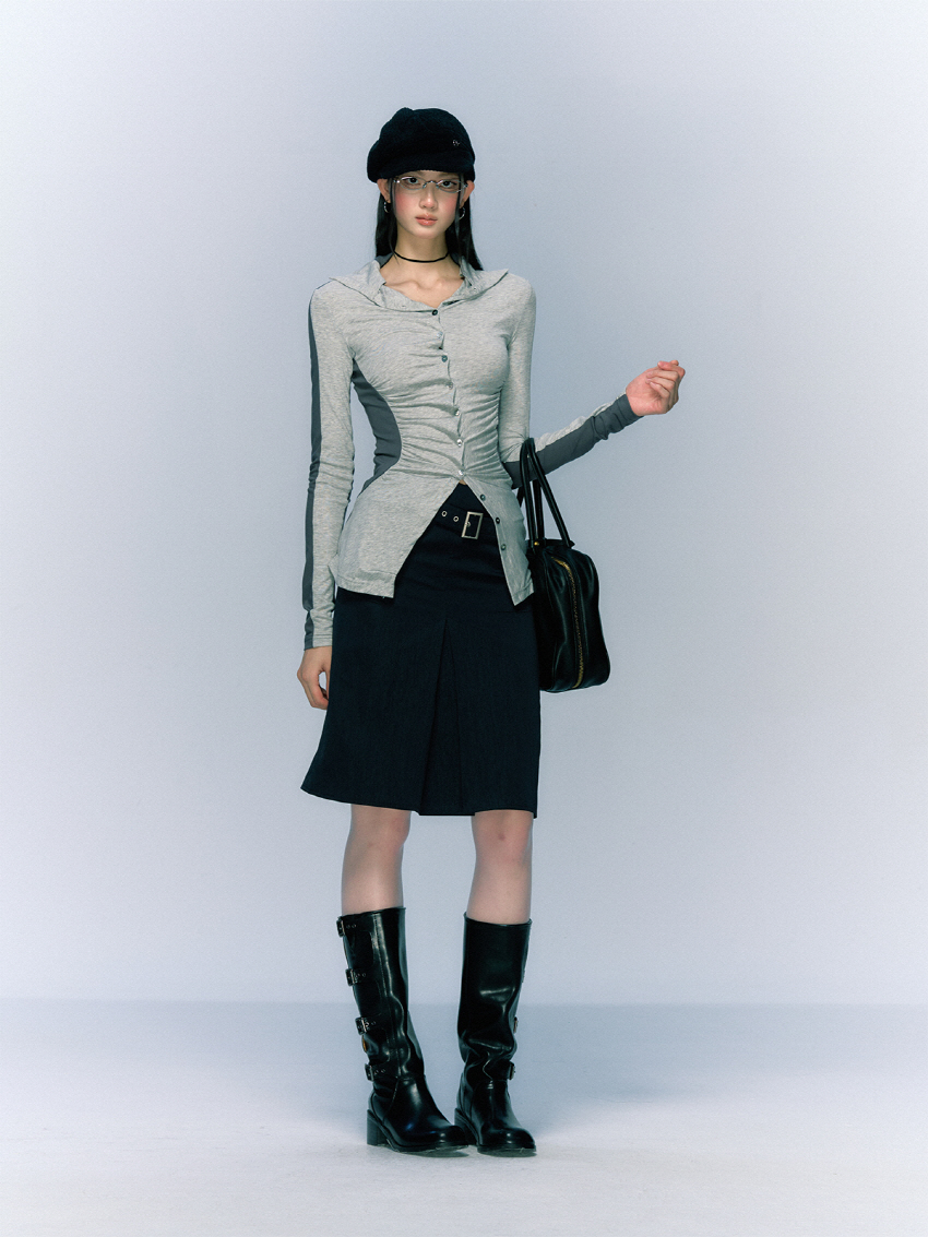 클래식하면서 빈티지한 벨트와 클래식한 무드의 A라인 하프 스커트입니다.
