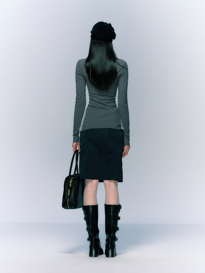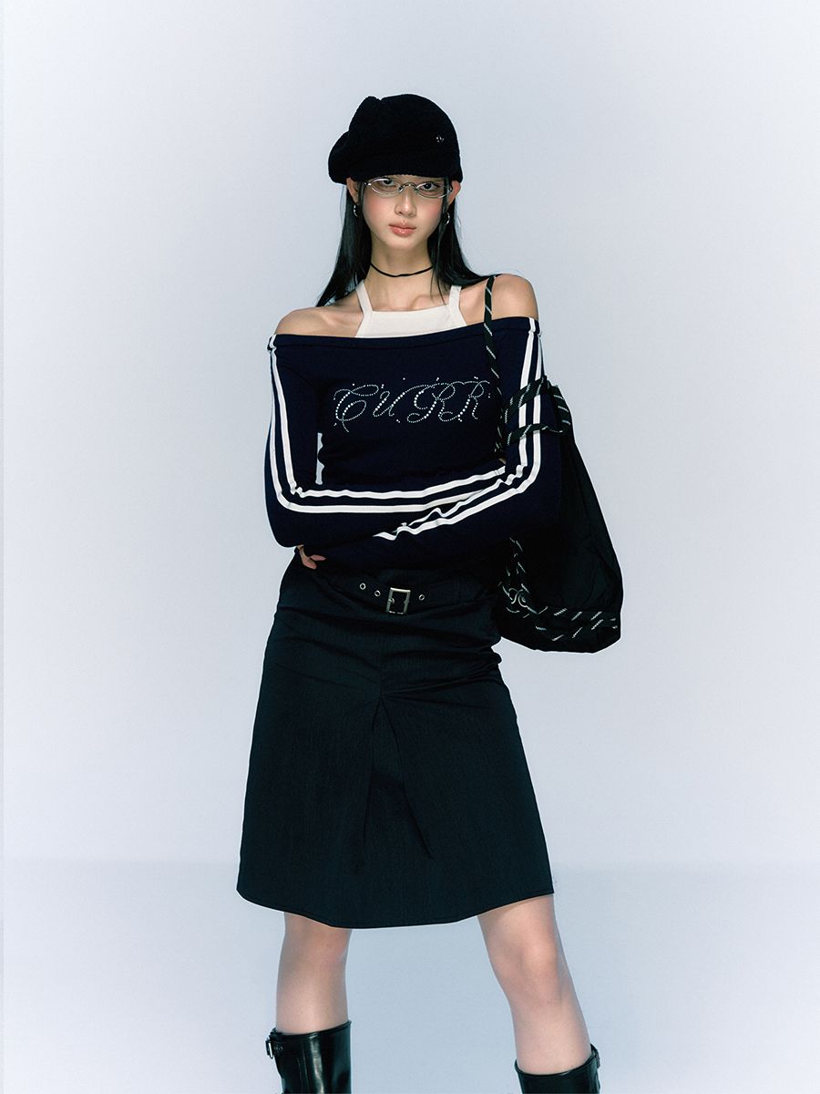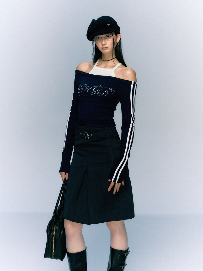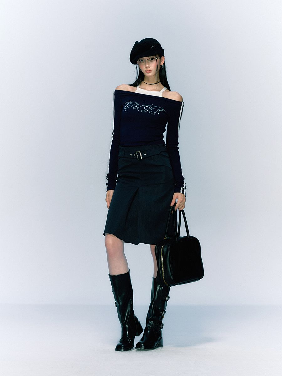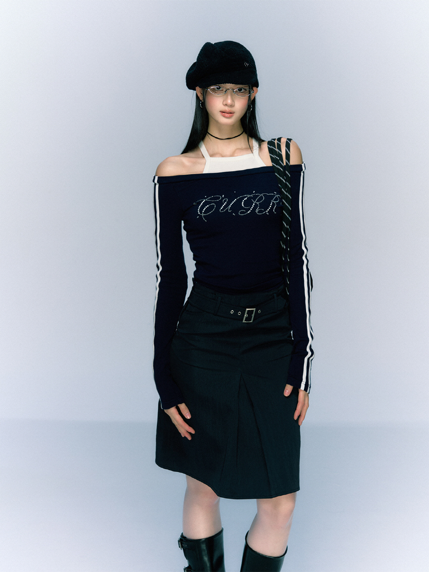 클래식하면서 빈티지한 벨트와 클래식한 무드의 A라인 하프 스커트입니다.