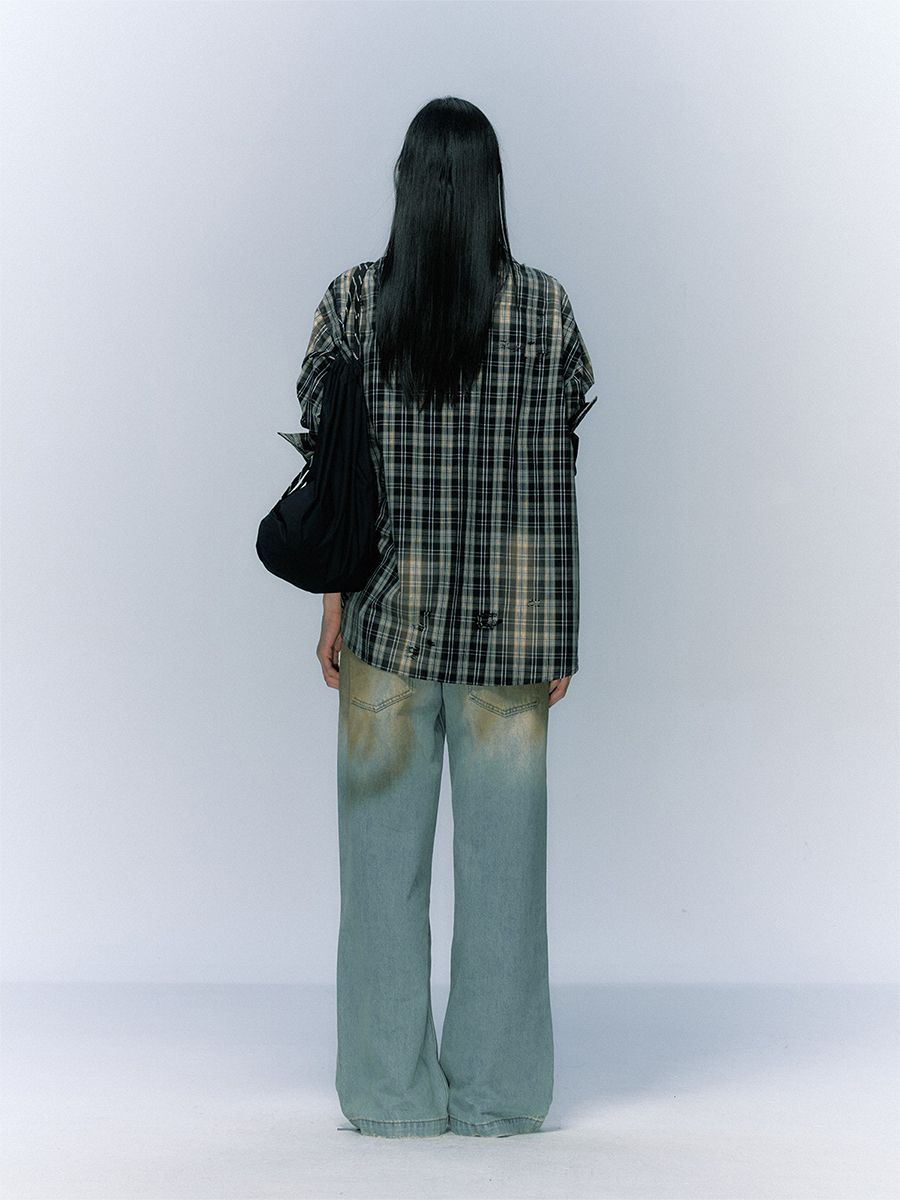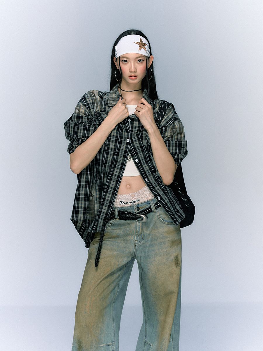 Vintage Black Checkered Washing Shirt