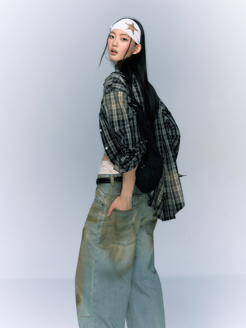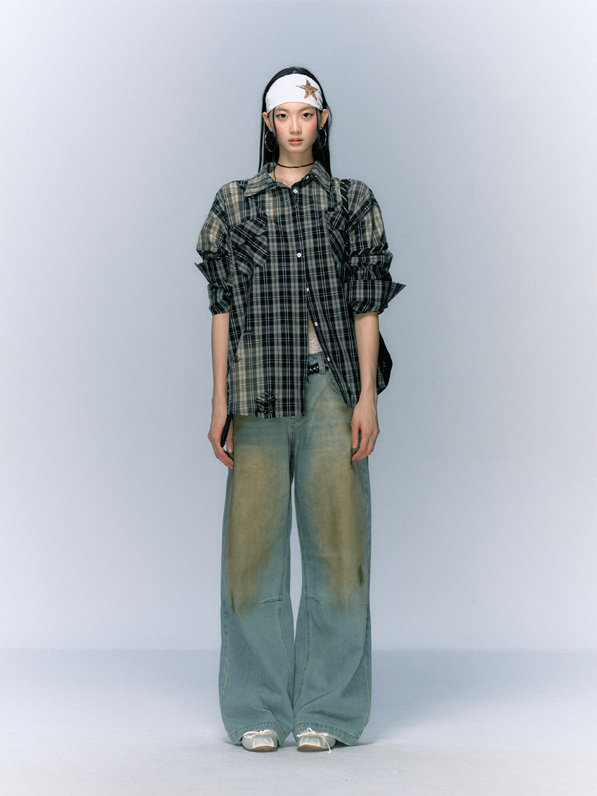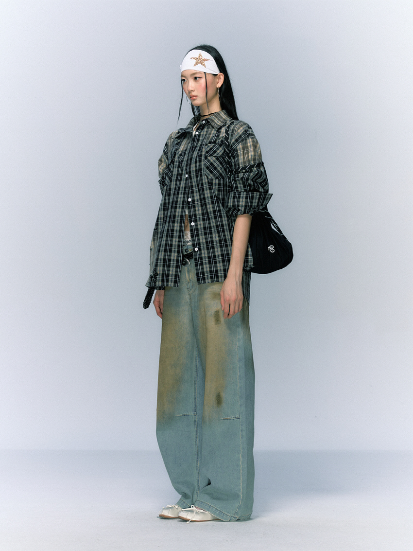 구제 워싱 공법으로 빈티지함을 더한 코튼 체크 셔츠입니다.
