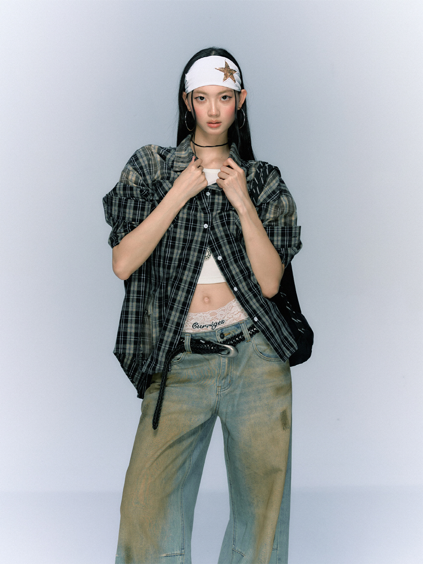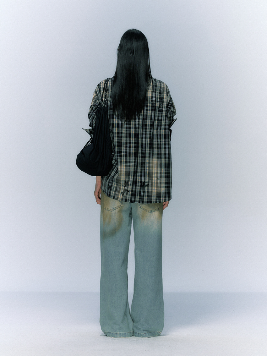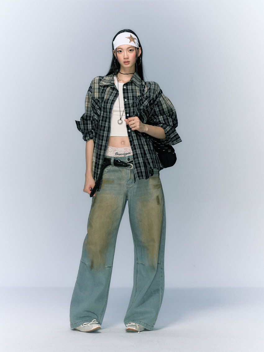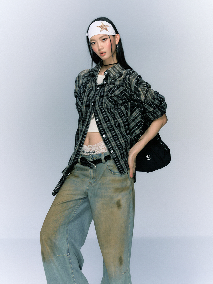 구제 워싱 공법으로 빈티지함을 더한 코튼 체크 셔츠입니다.