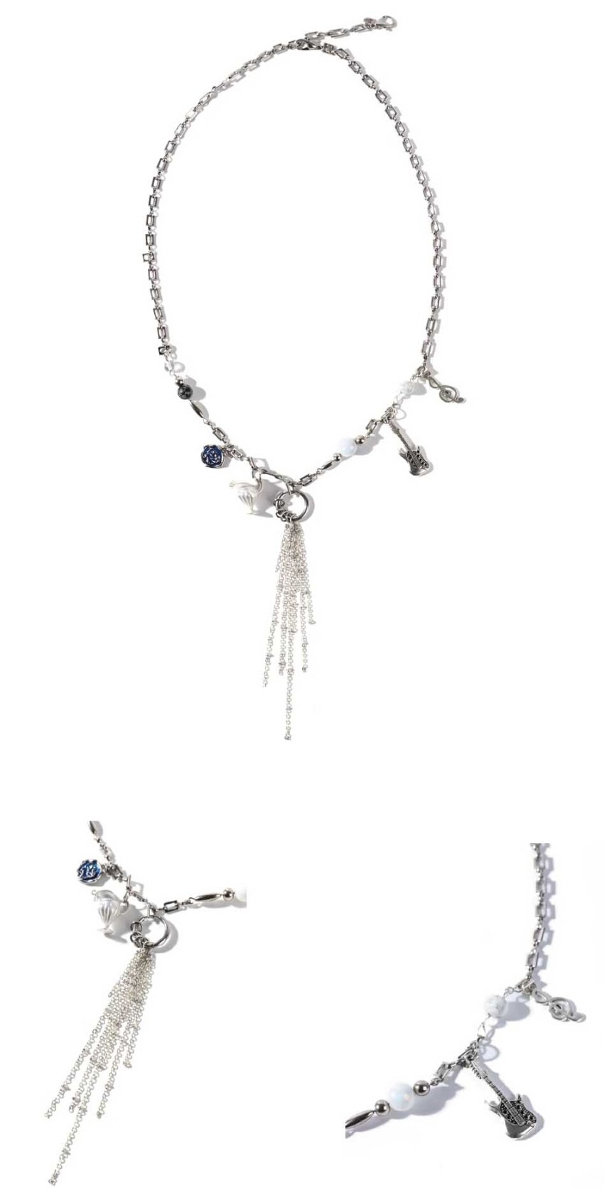 - 옵션은 짧은 시계/핀 디테일 초커목걸이와 긴 길이의 주전자 비즈 목걸이 총 두 가지입니다.