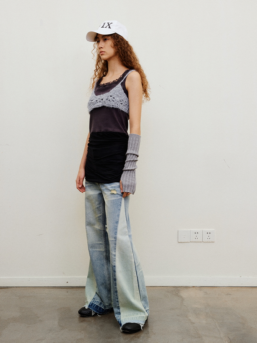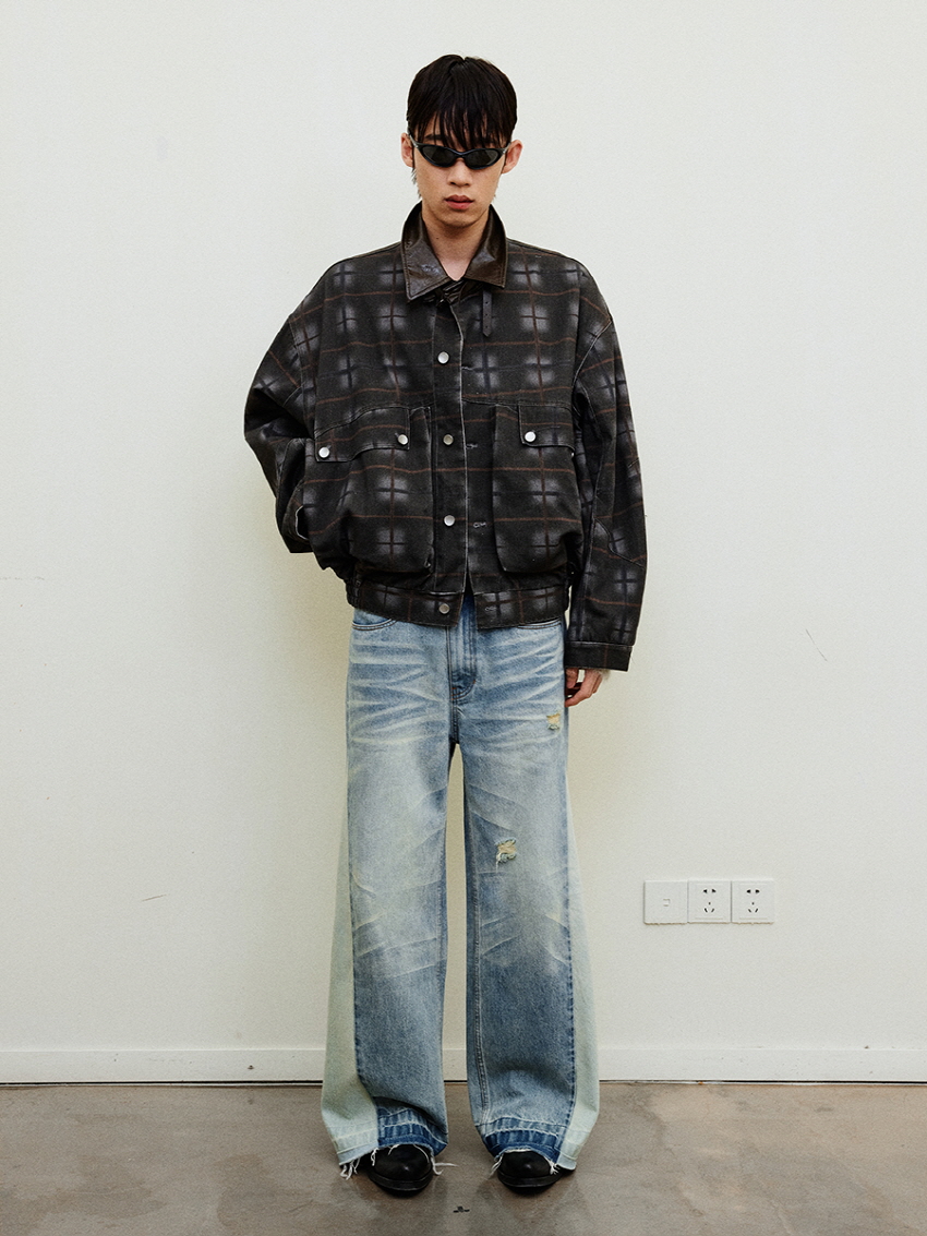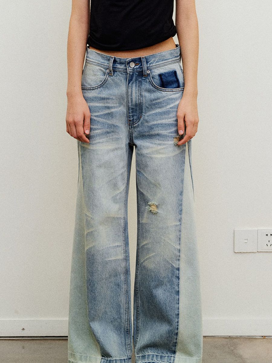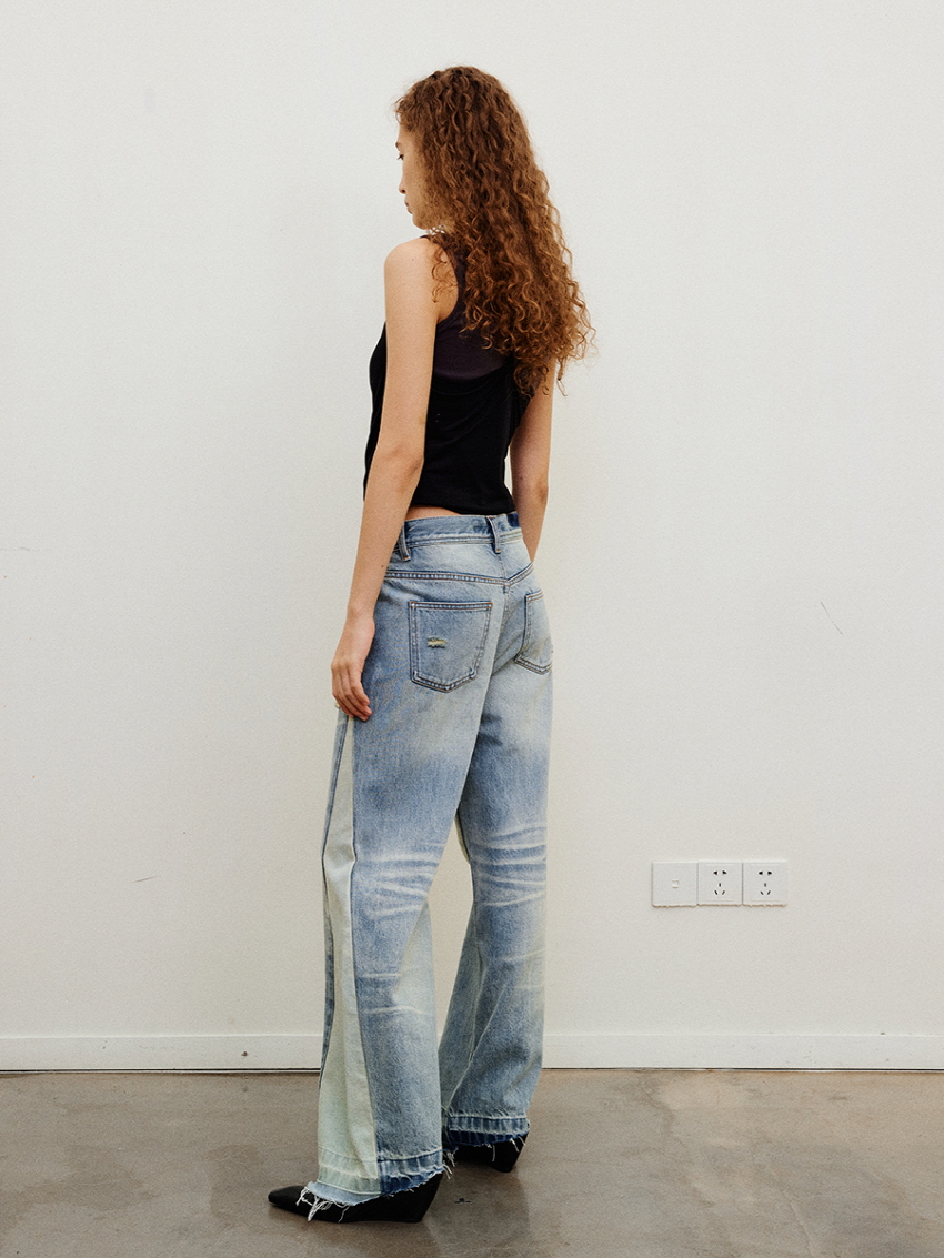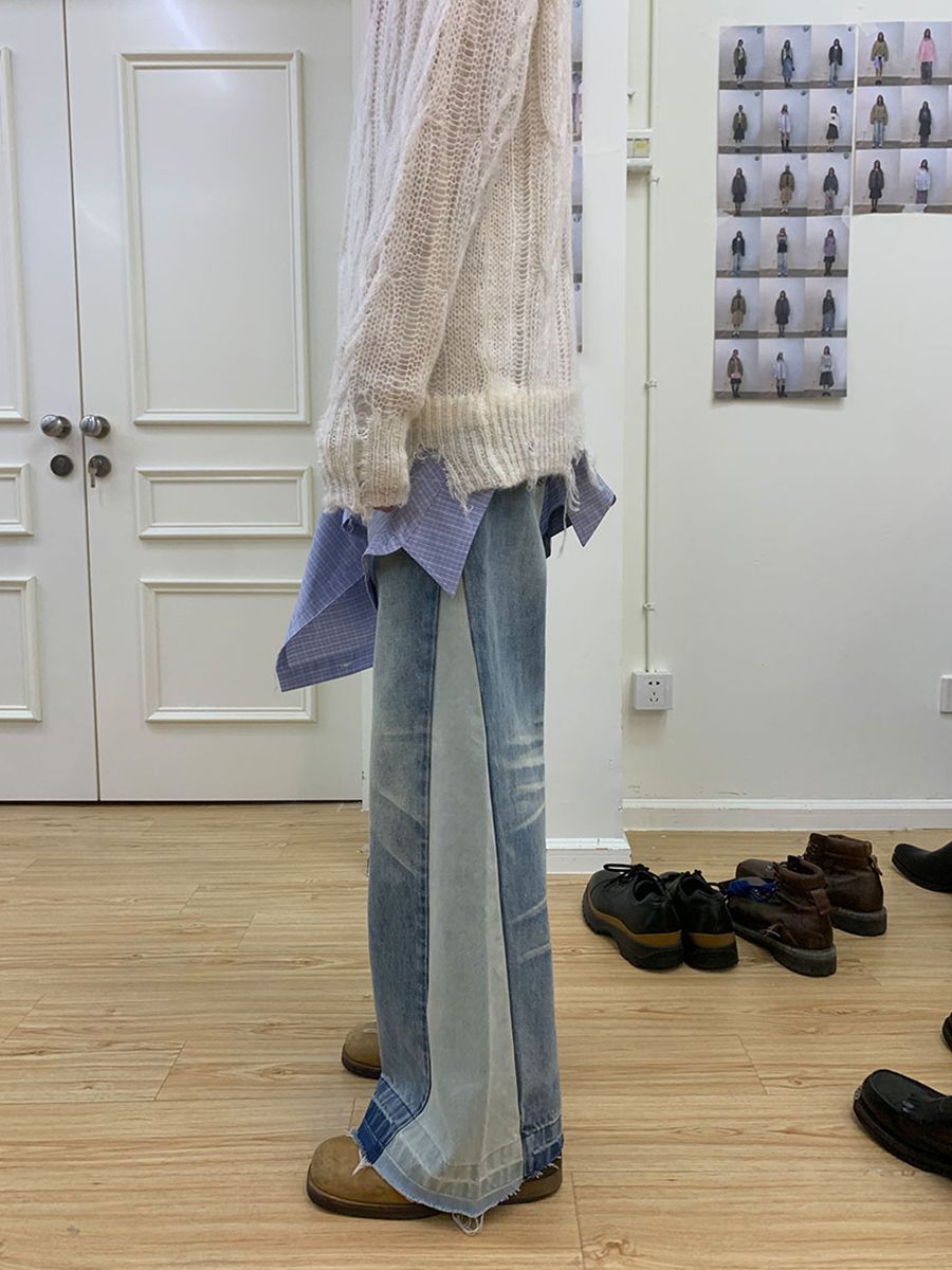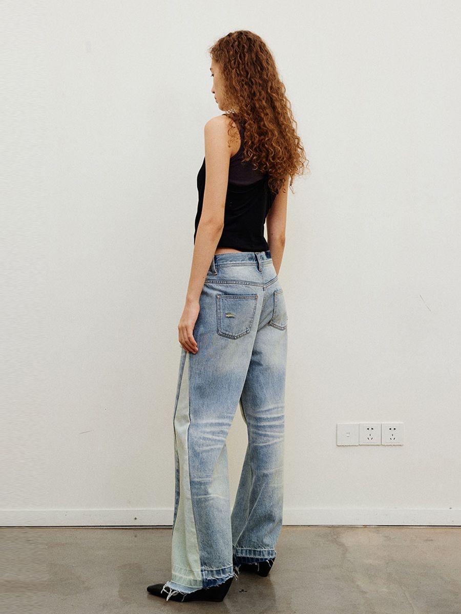 Collision Color Vintage Washed Loose Jeans