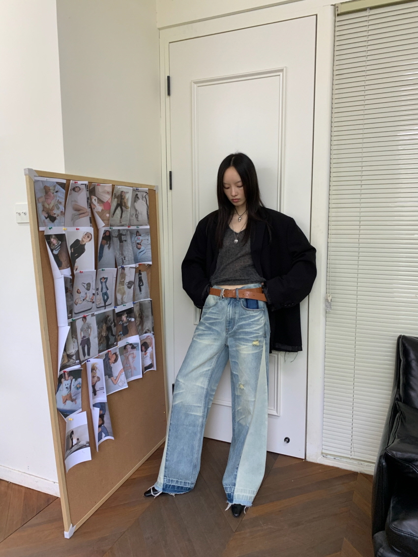 빈티지한 디테일과 워싱 , 옆선 배색이 포인트인 데님 팬츠입니다.