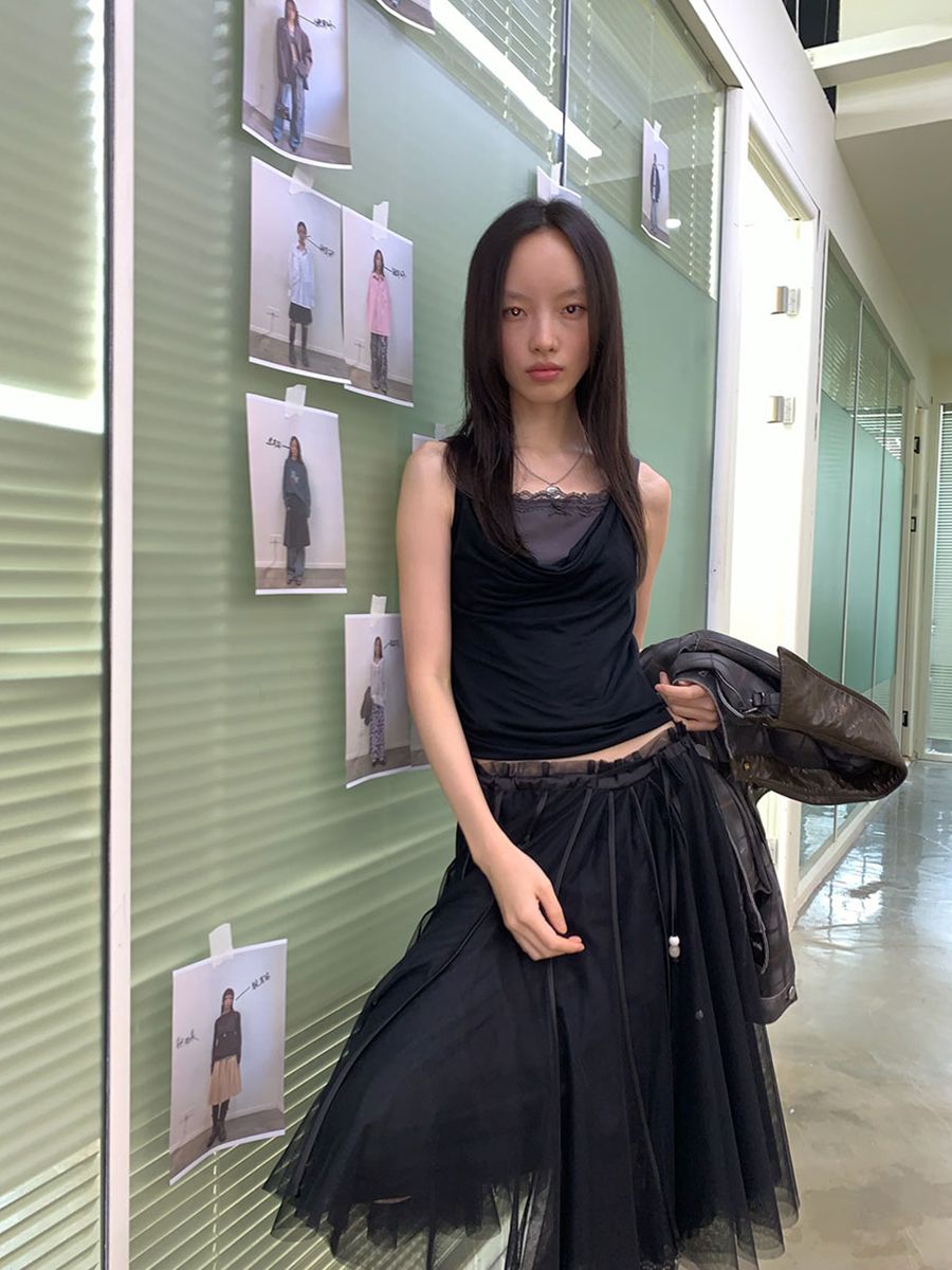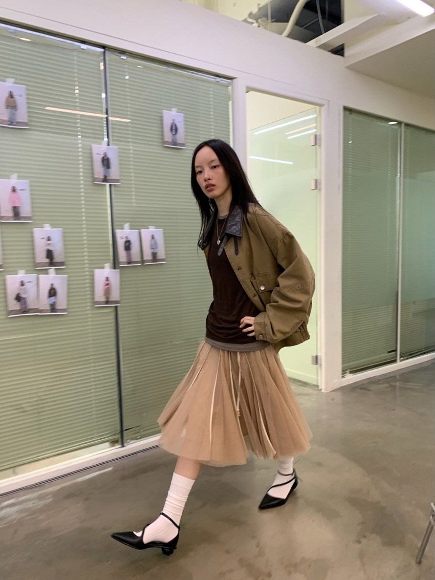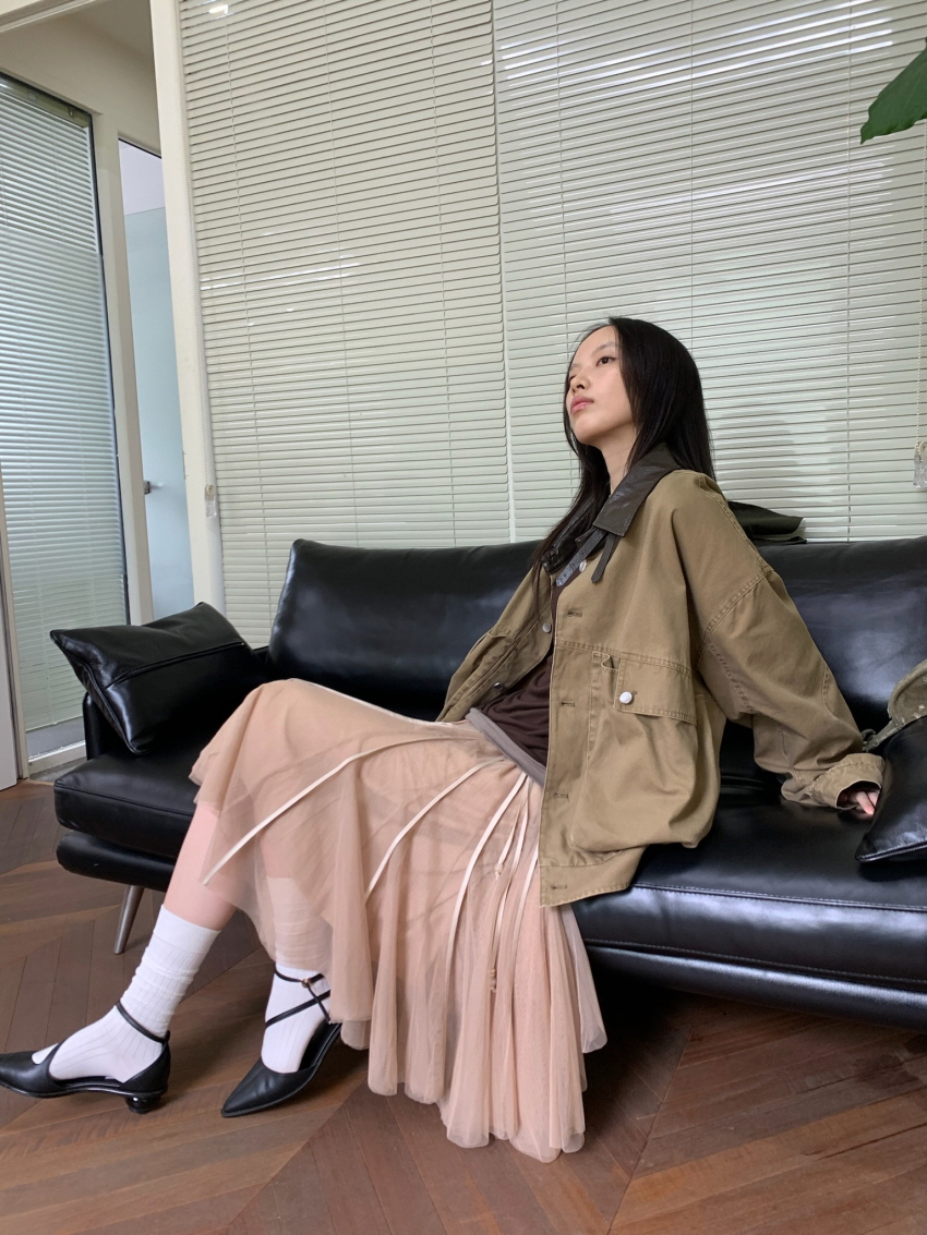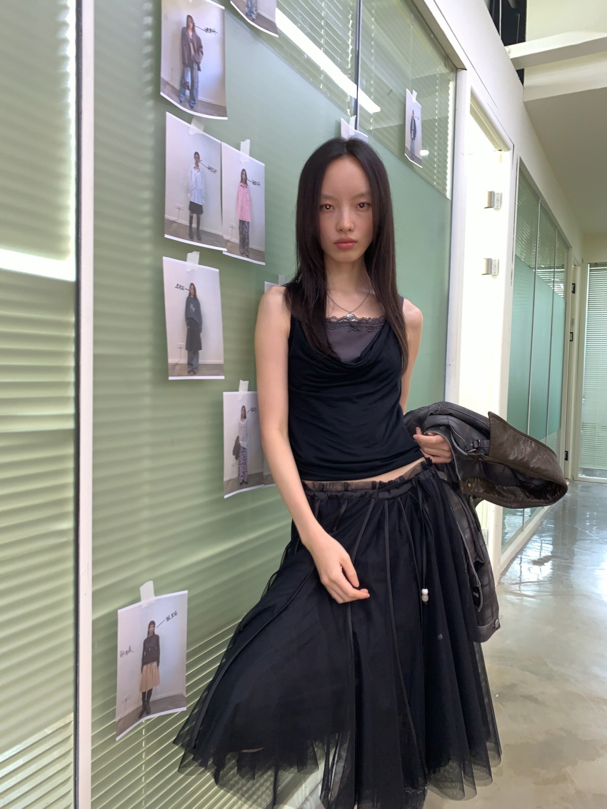 하늘하늘한 셔링 레이어드가 포인트인 메쉬 스커트 입니다.