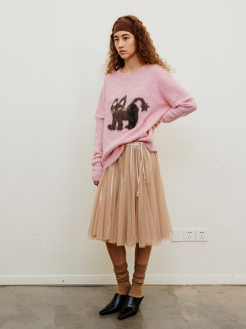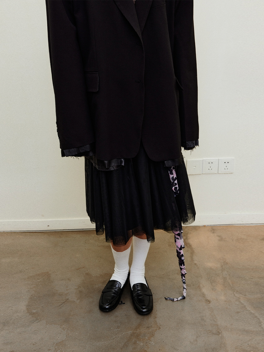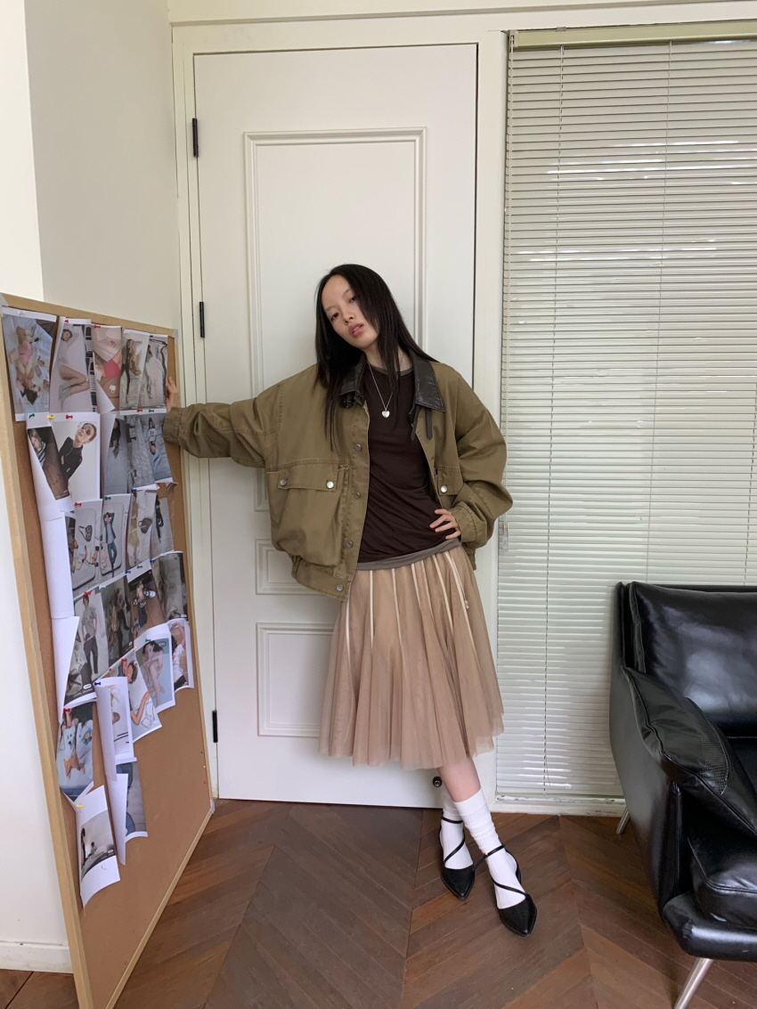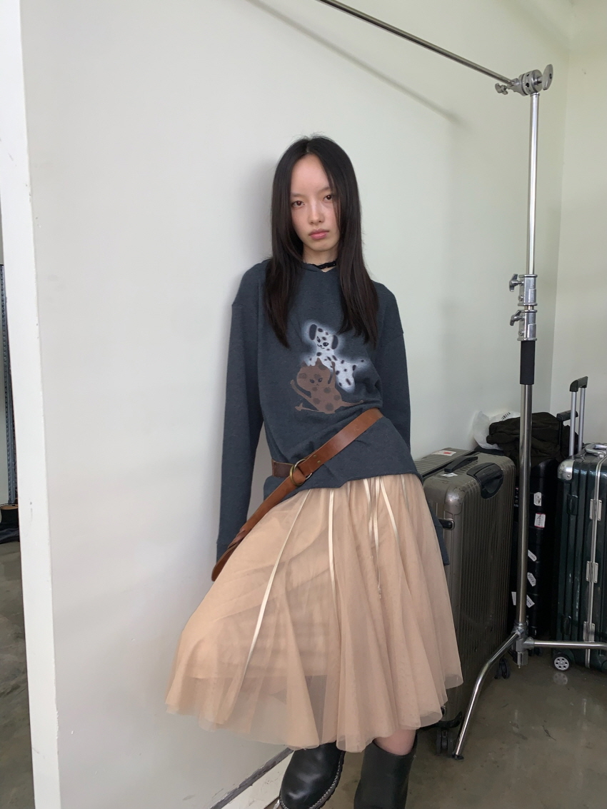 하늘하늘한 셔링 레이어드가 포인트인 메쉬 스커트 입니다.