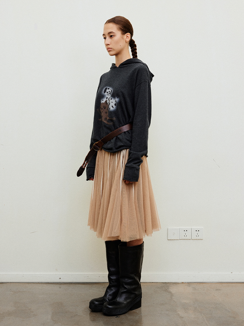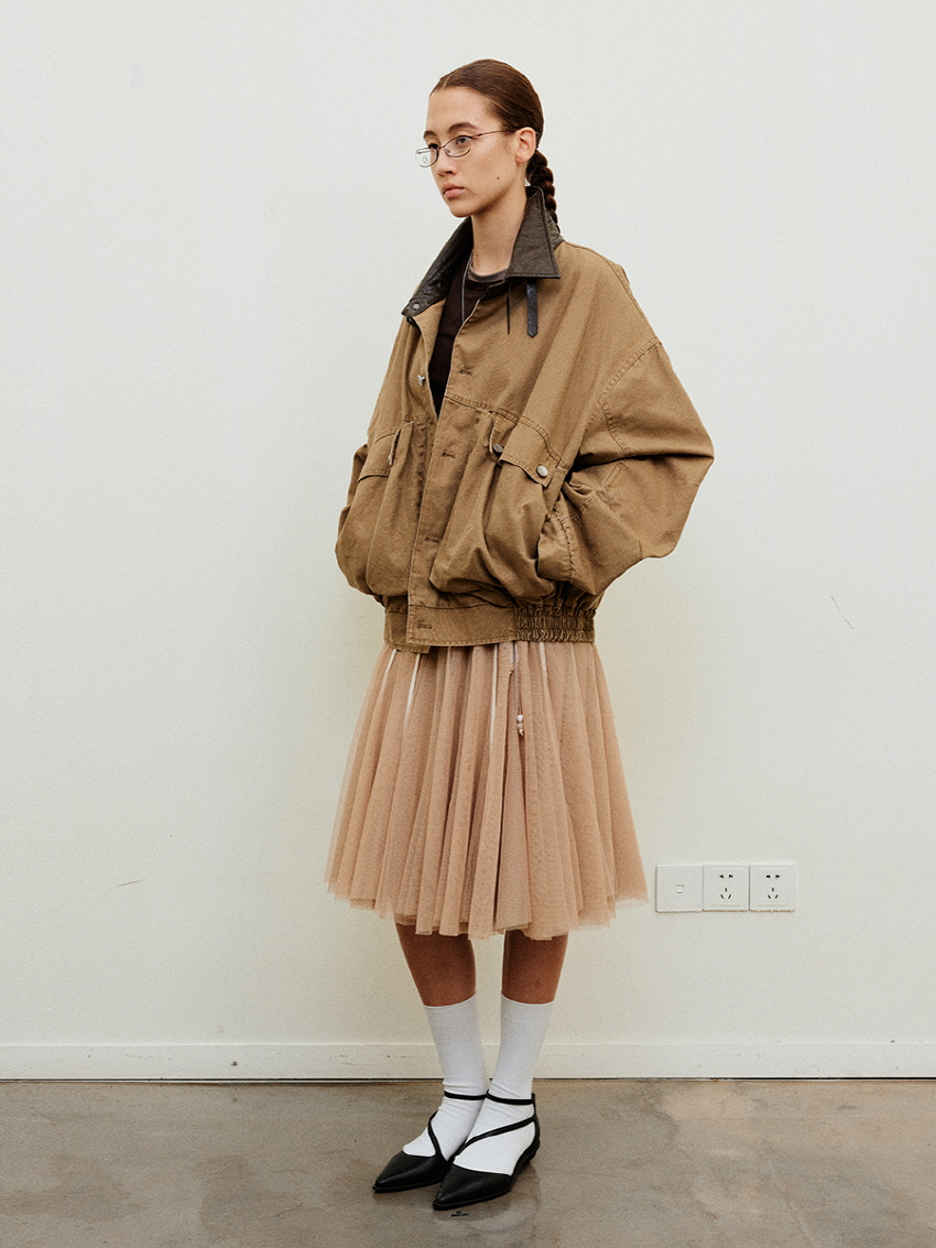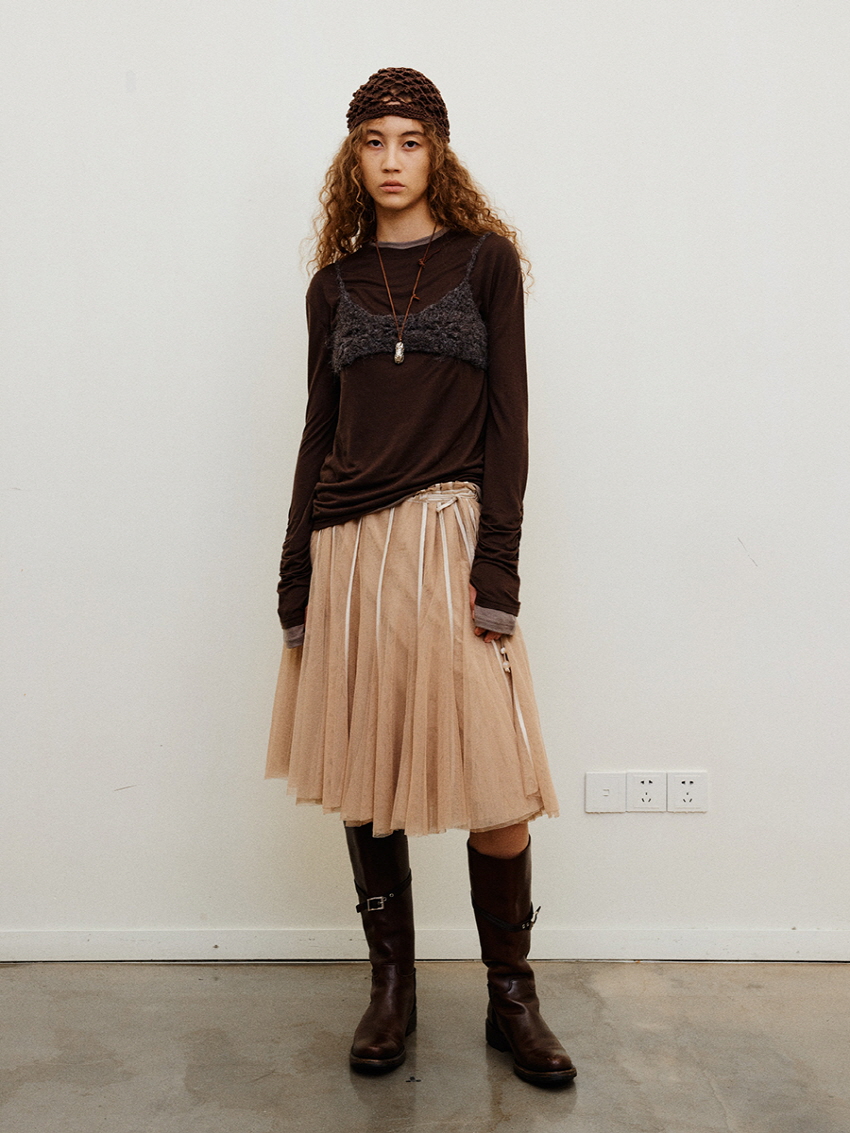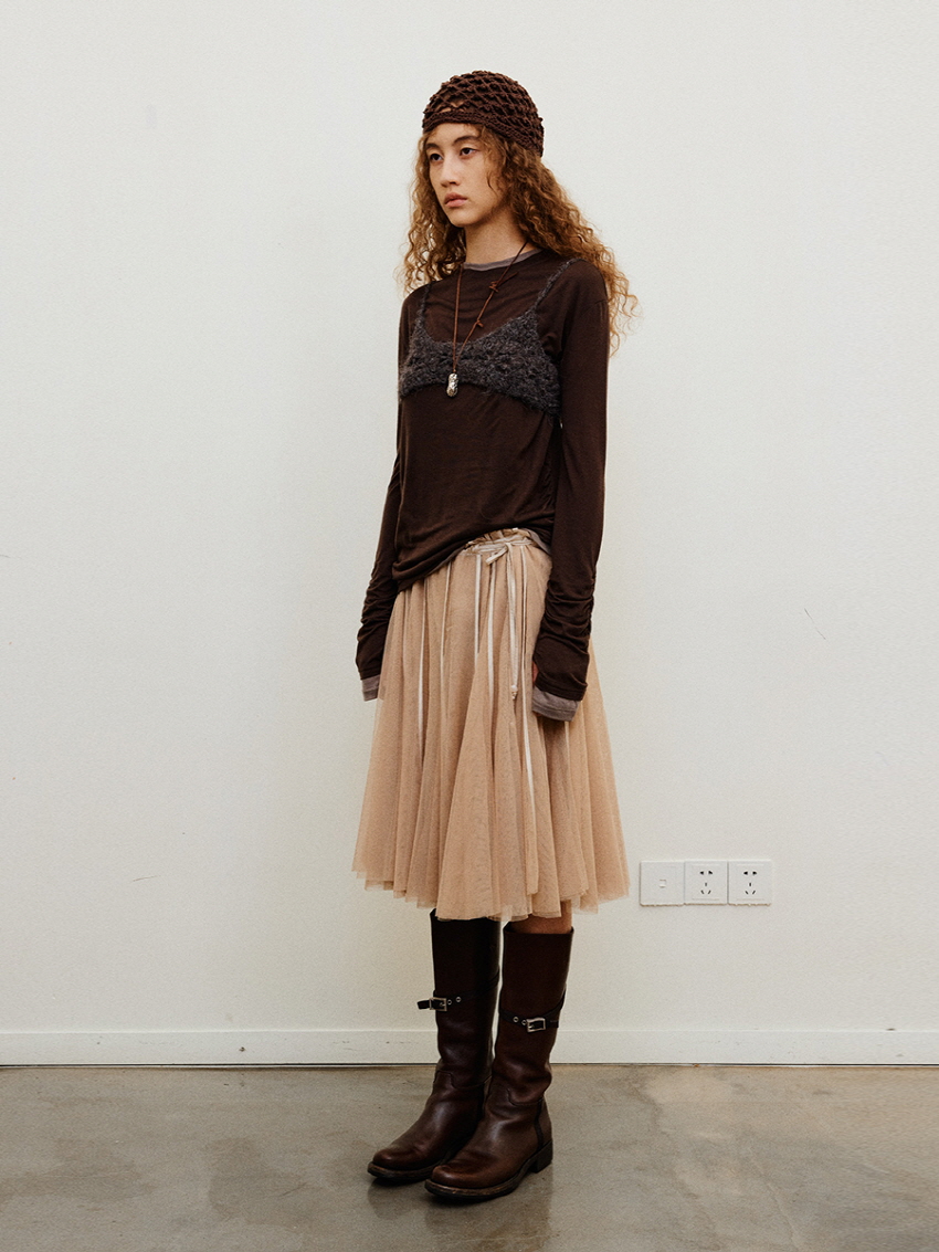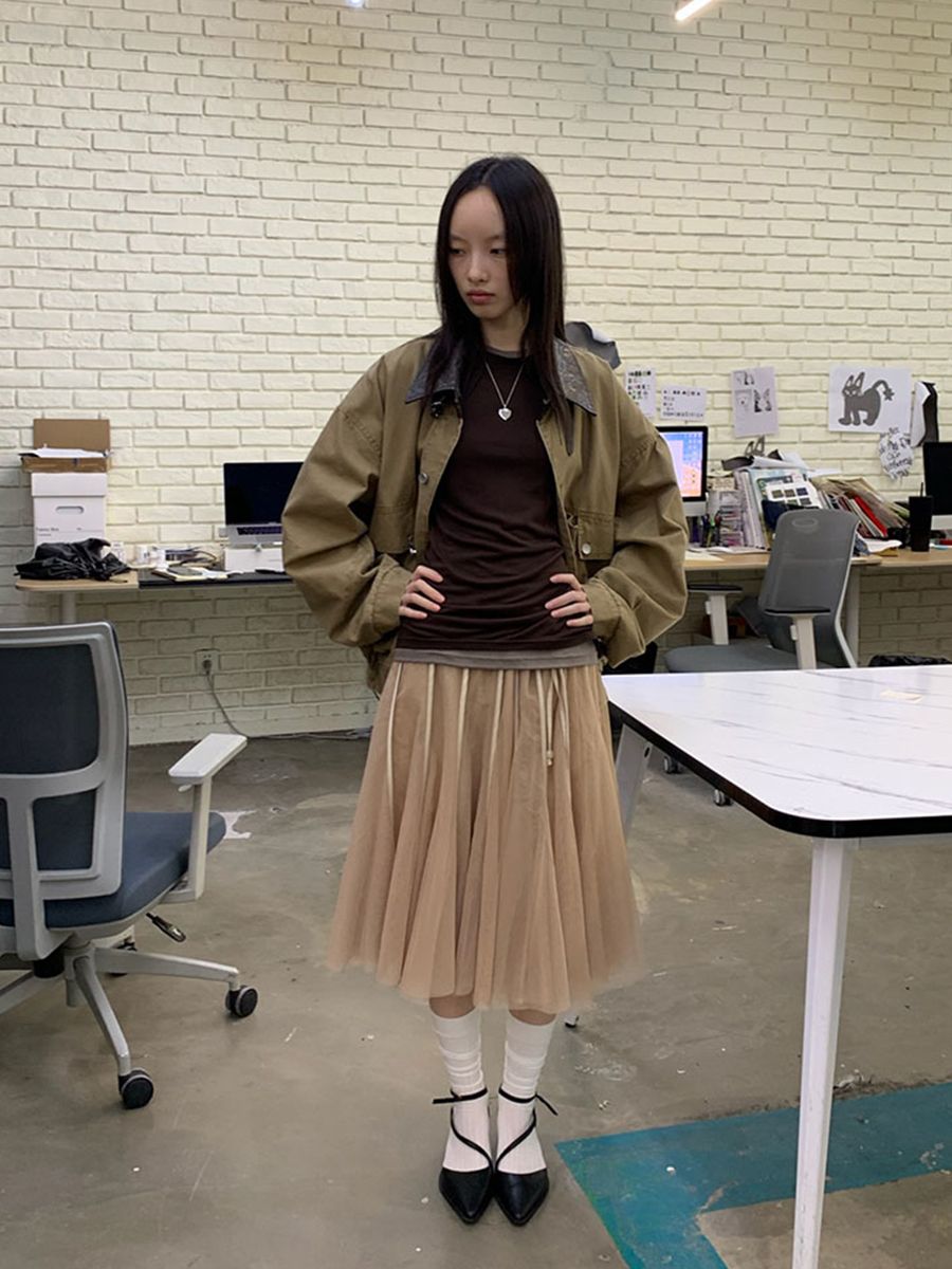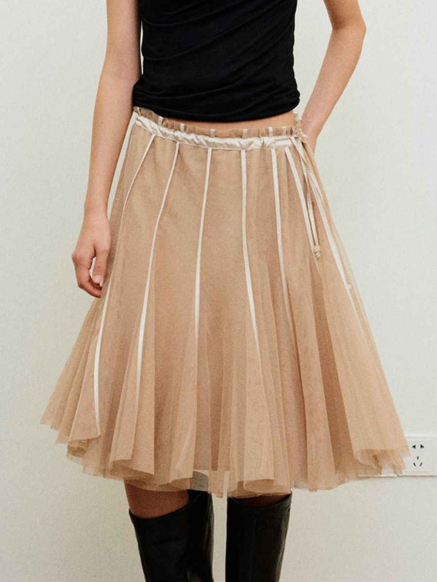 Shirring Layered Mesh Half Pleated Skirt