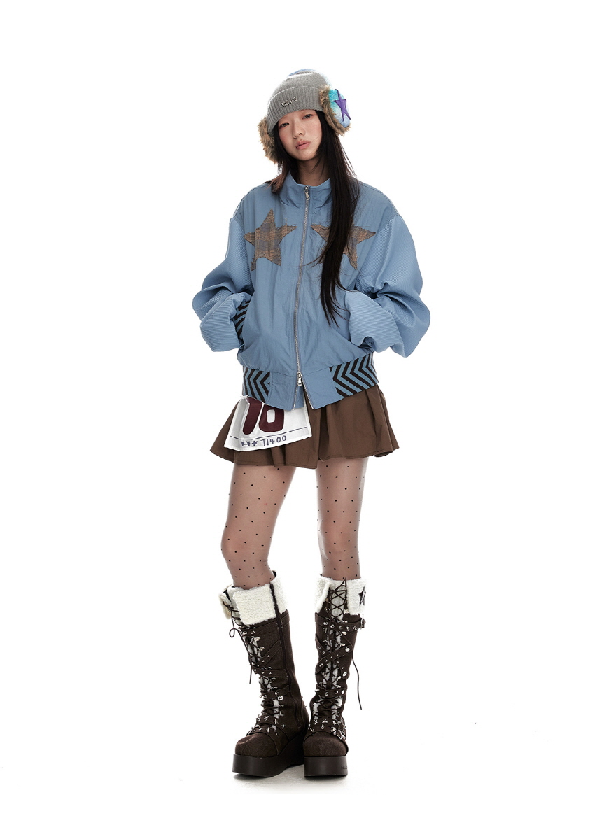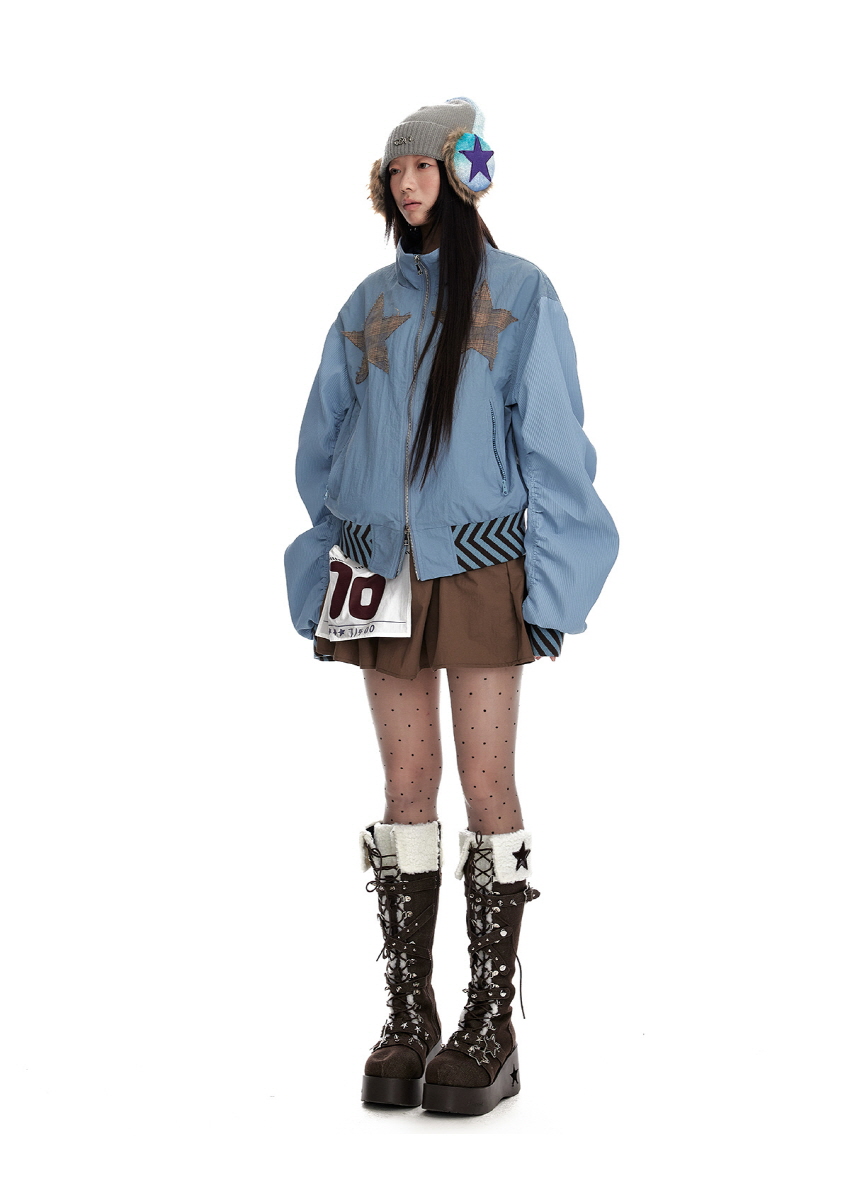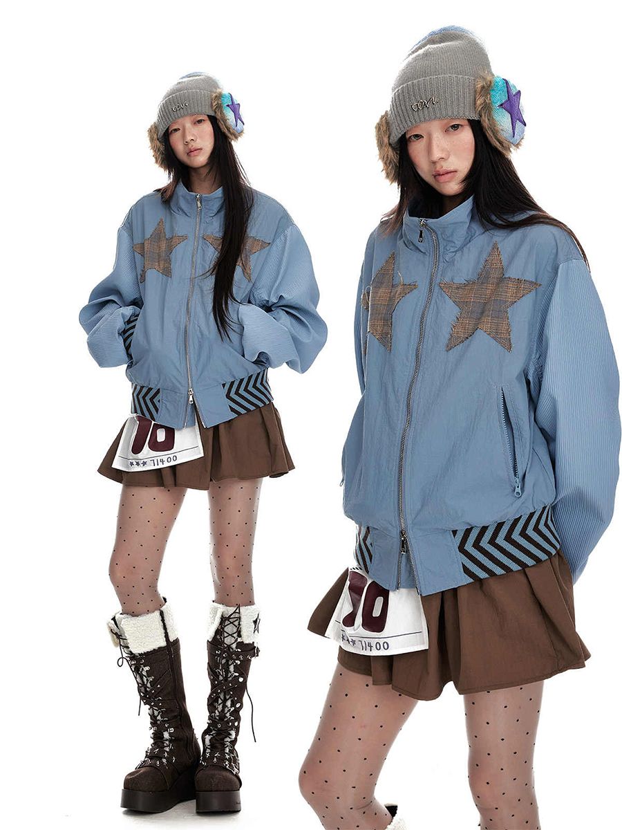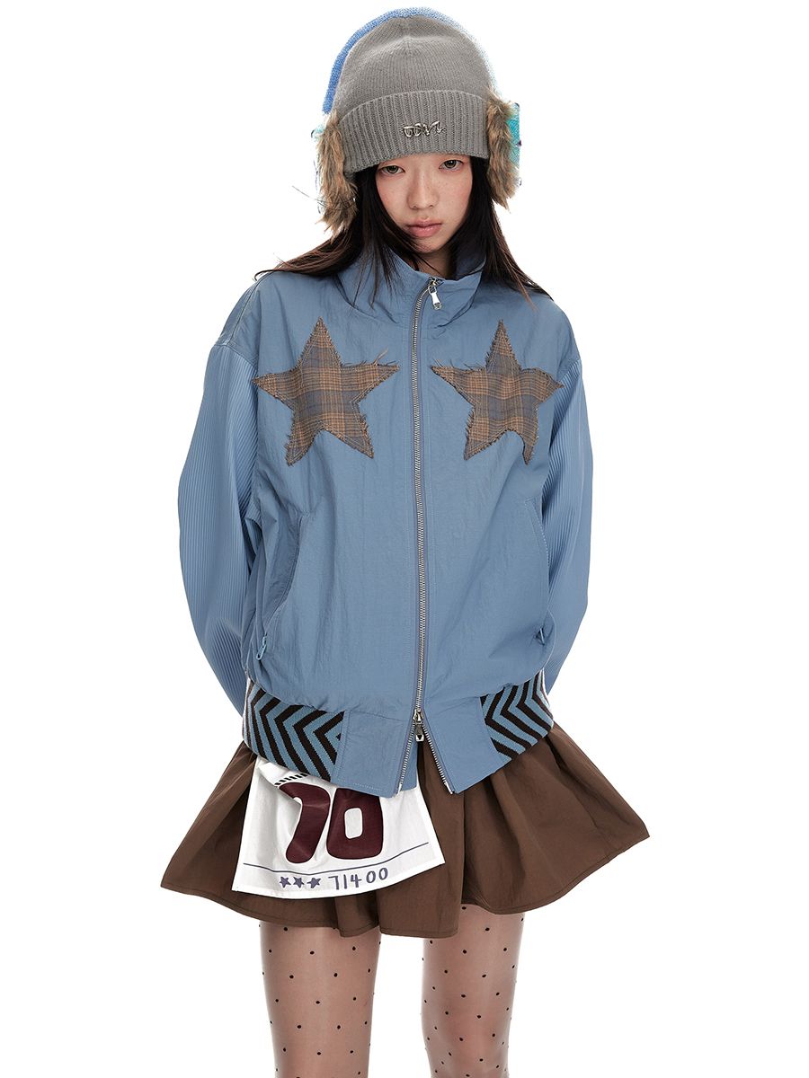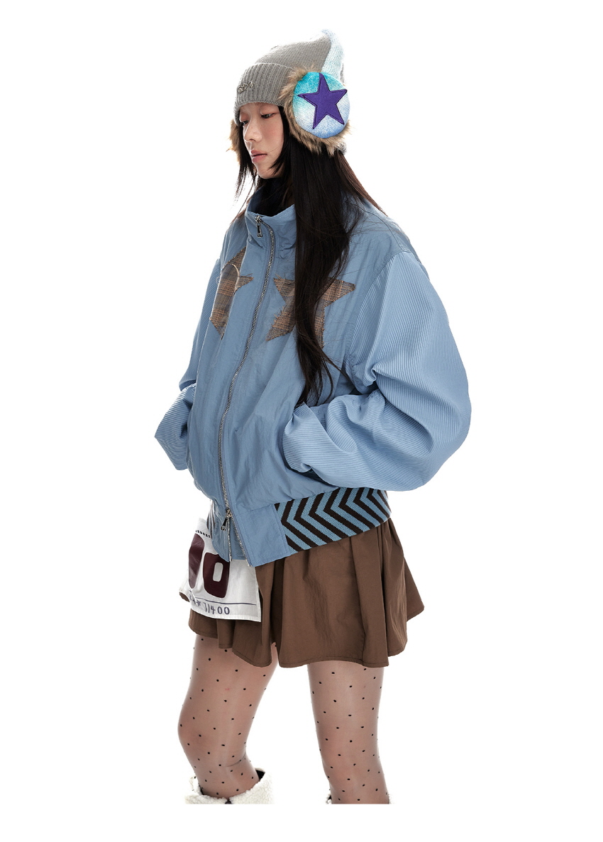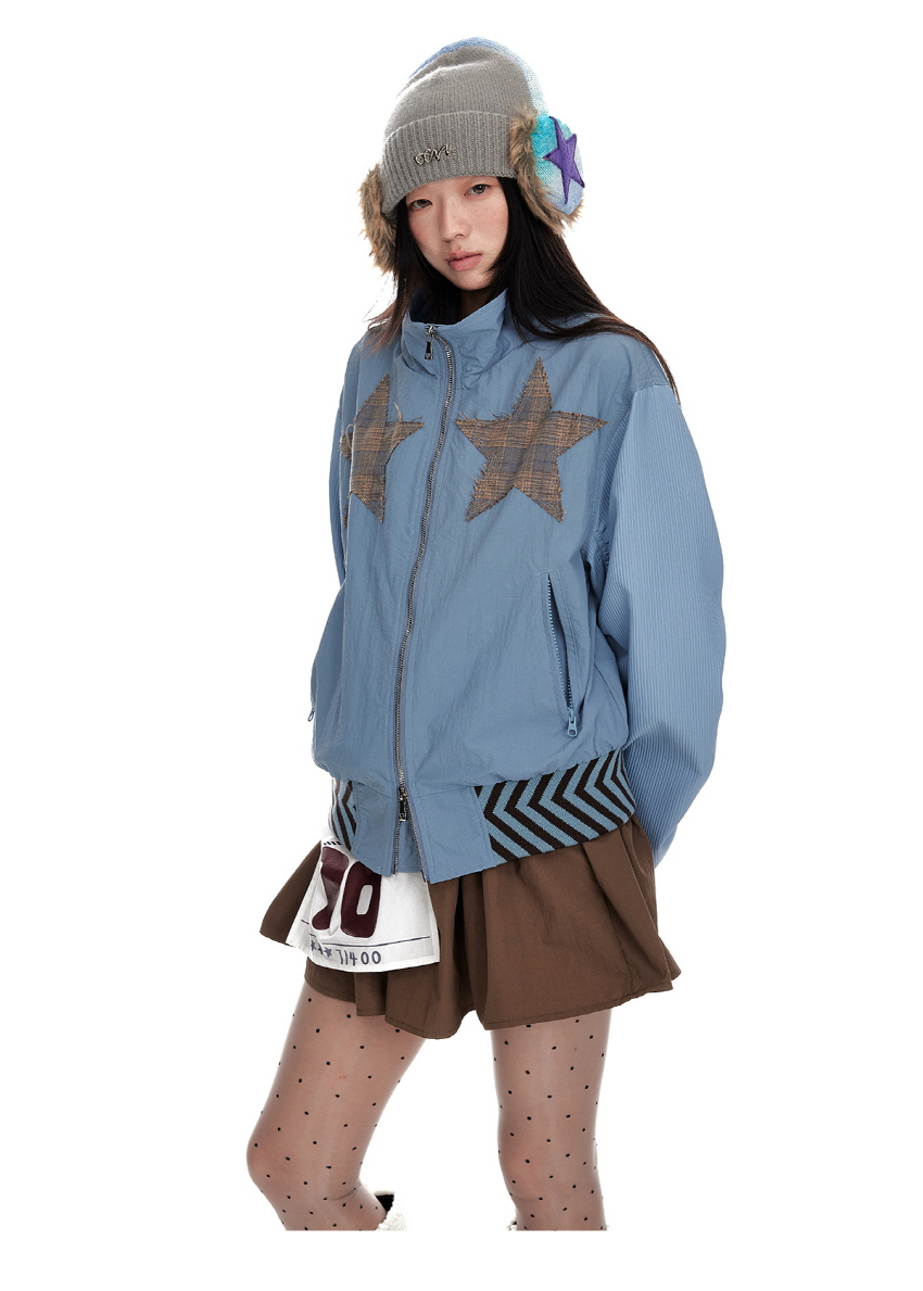 Star stitching double zipper jacket