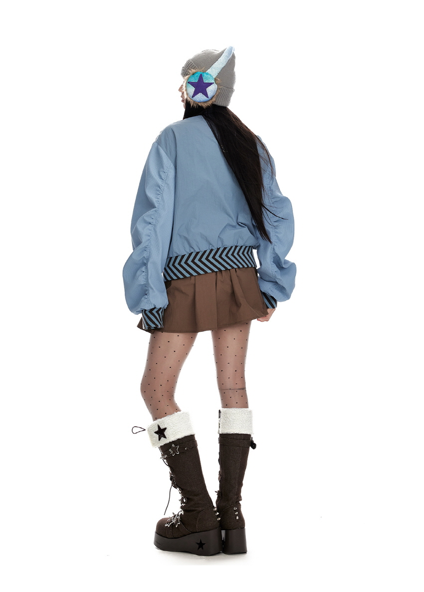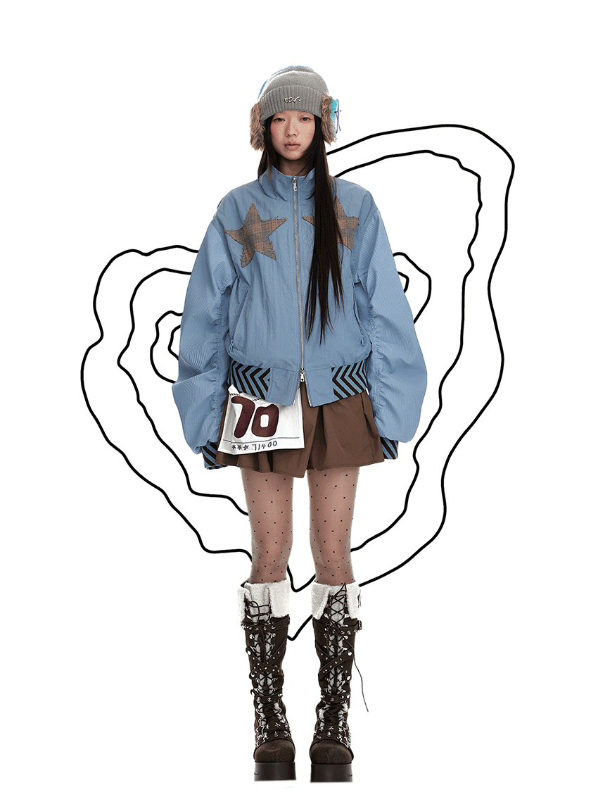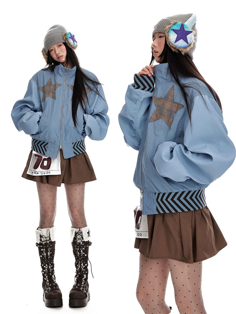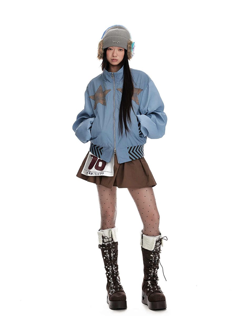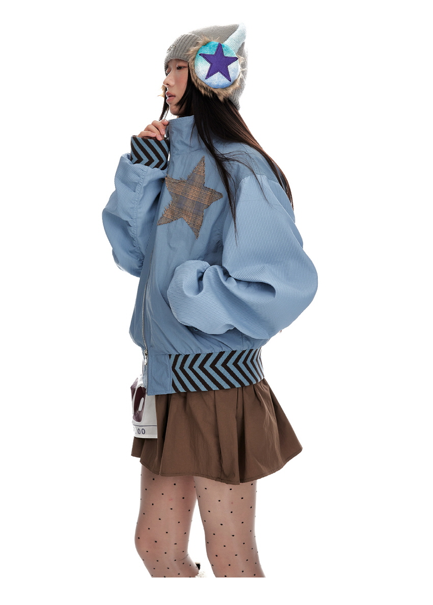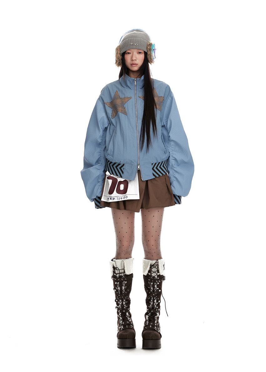 Star stitching double zipper jacket