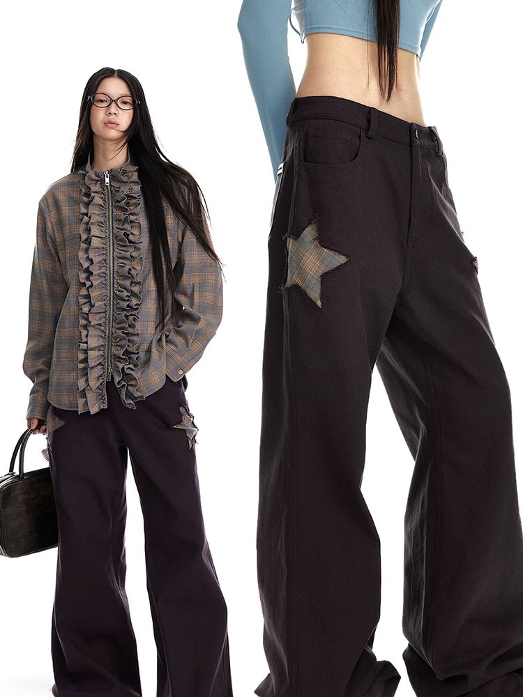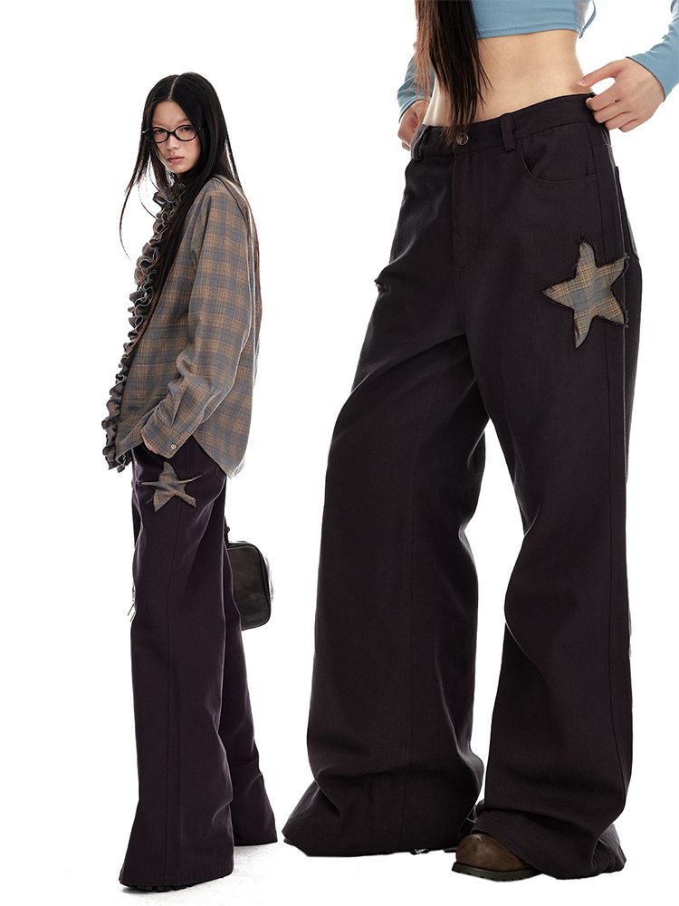 Star Patch Wide Flared Pants