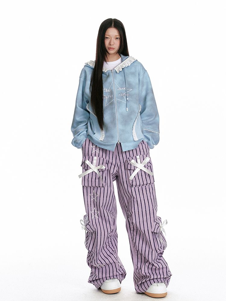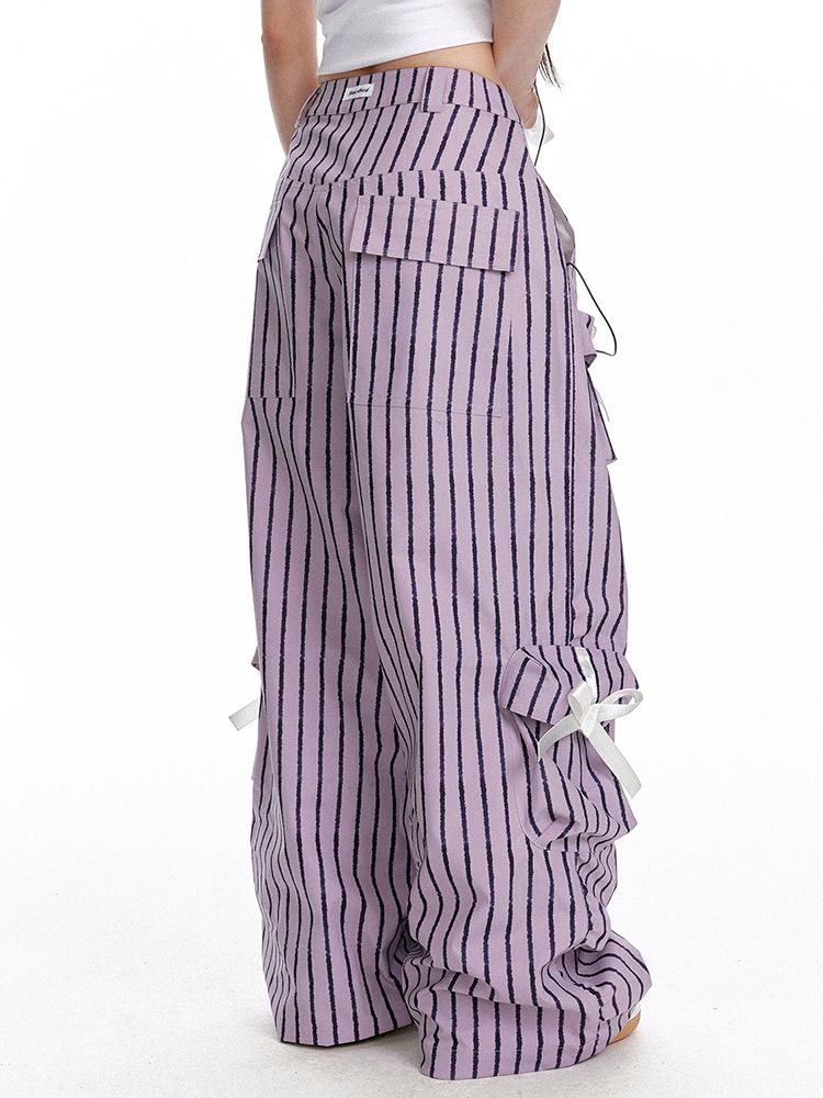 Ribbon Point Parachute Striped Pants