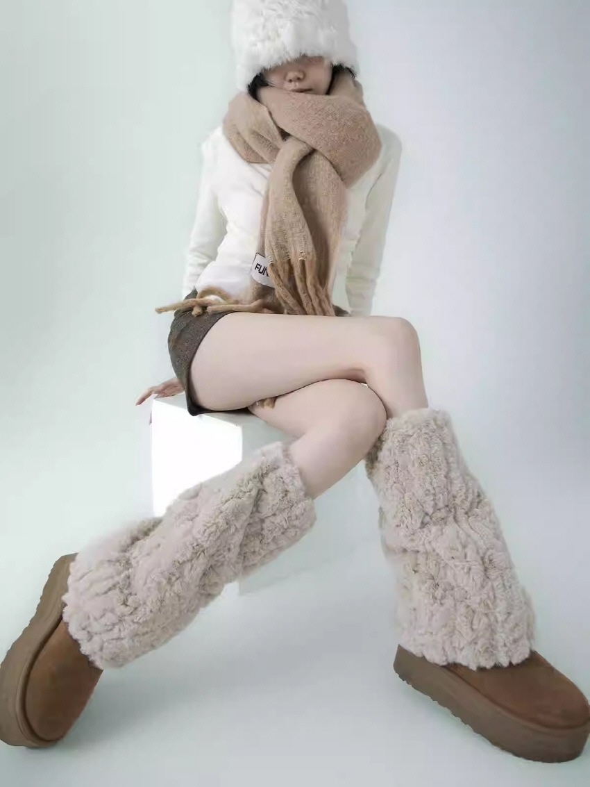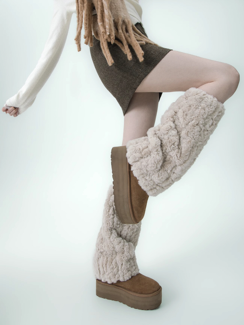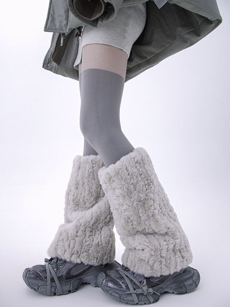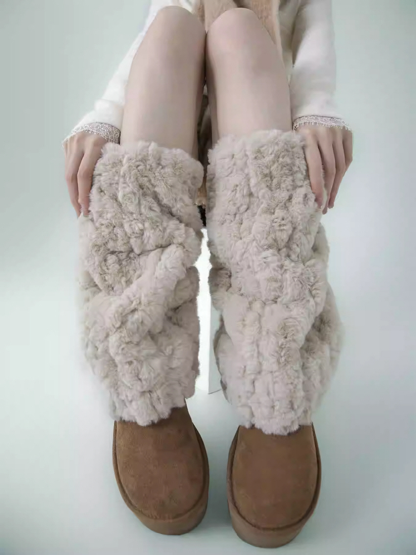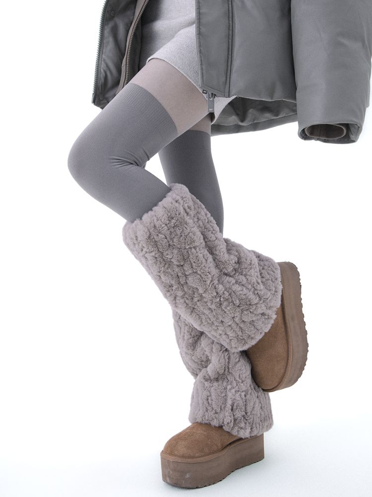 페이크 토끼털 소재로 따뜻하면서 스타일리쉬한 플러쉬 퍼 레그 워머입니다.