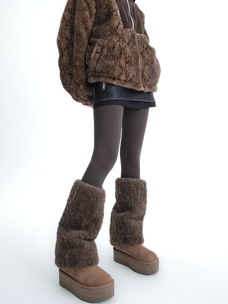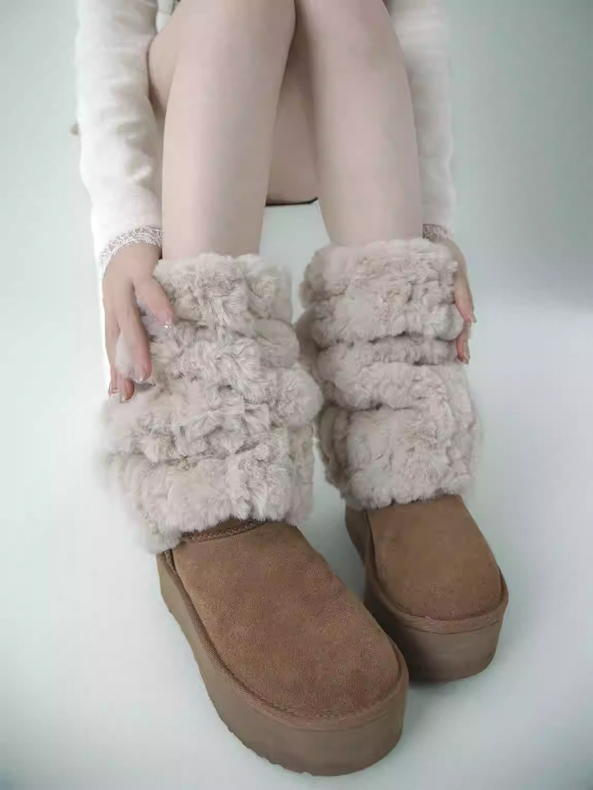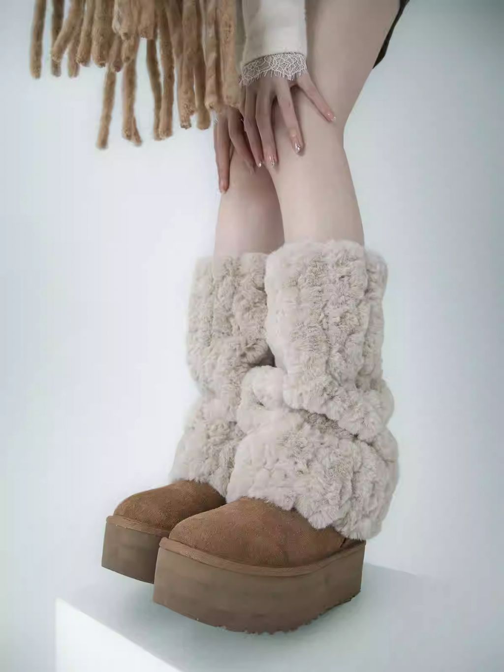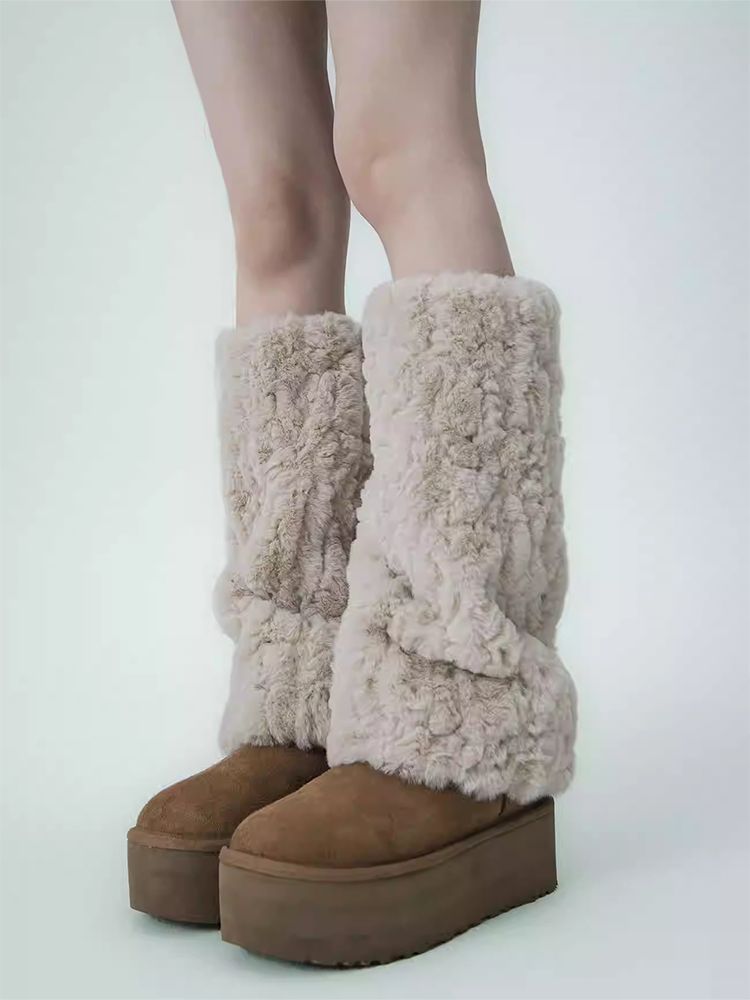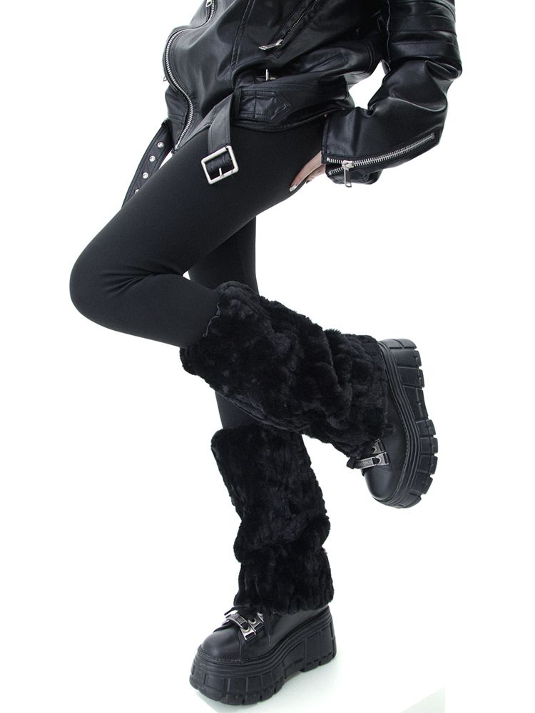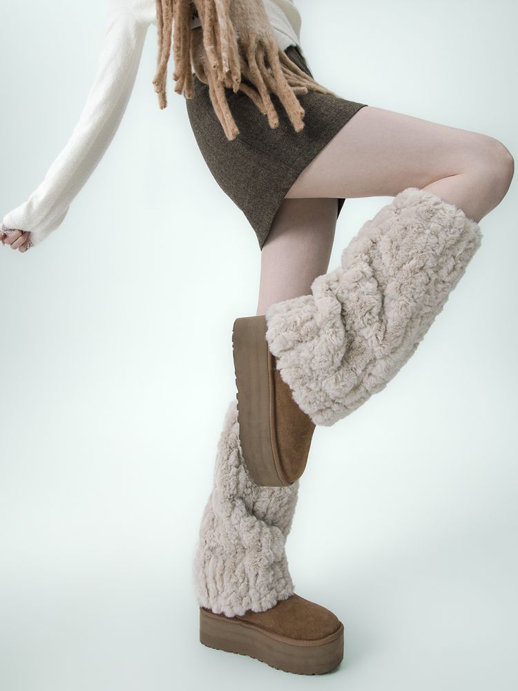 페이크 토끼털 소재로 따뜻하면서 스타일리쉬한 플러쉬 퍼 레그 워머입니다.