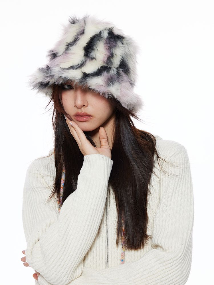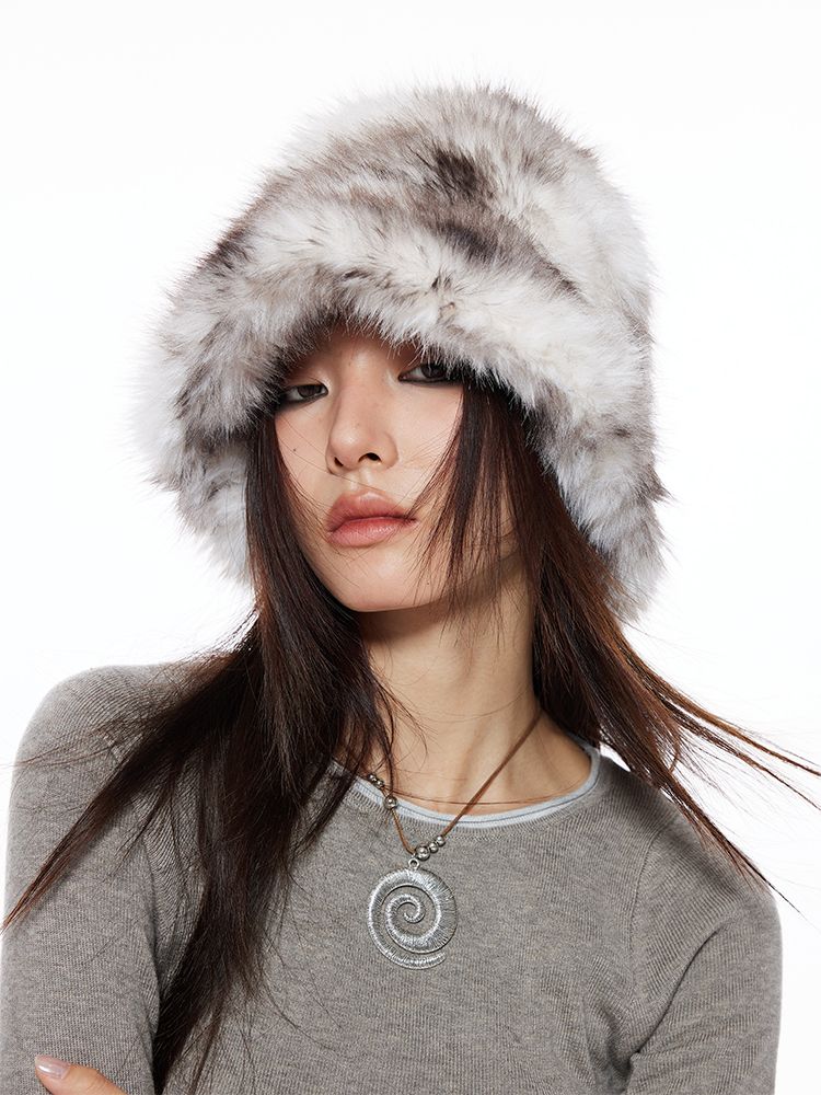 따뜻한 소재의 스타일리쉬한 페이크 퍼 버킷 햇입니다.