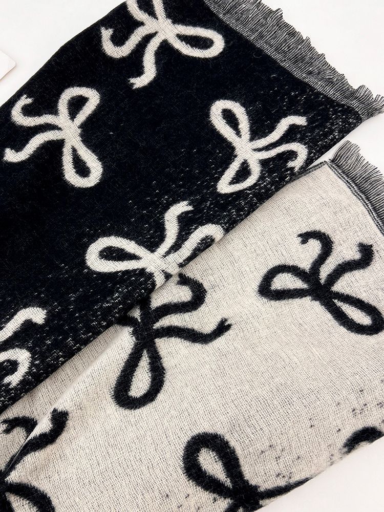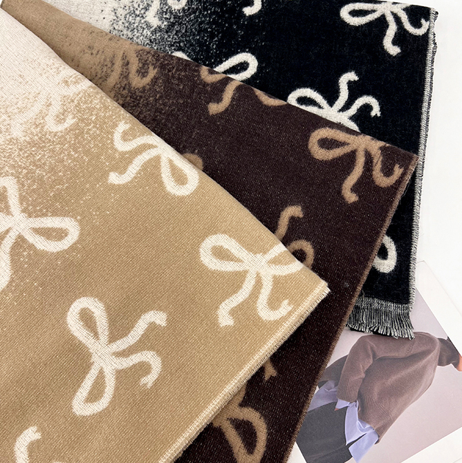 겨울 시즌 포인트 아이템으로 활용하기 좋은 리버시블 스타일의 리본 스카프입니다.