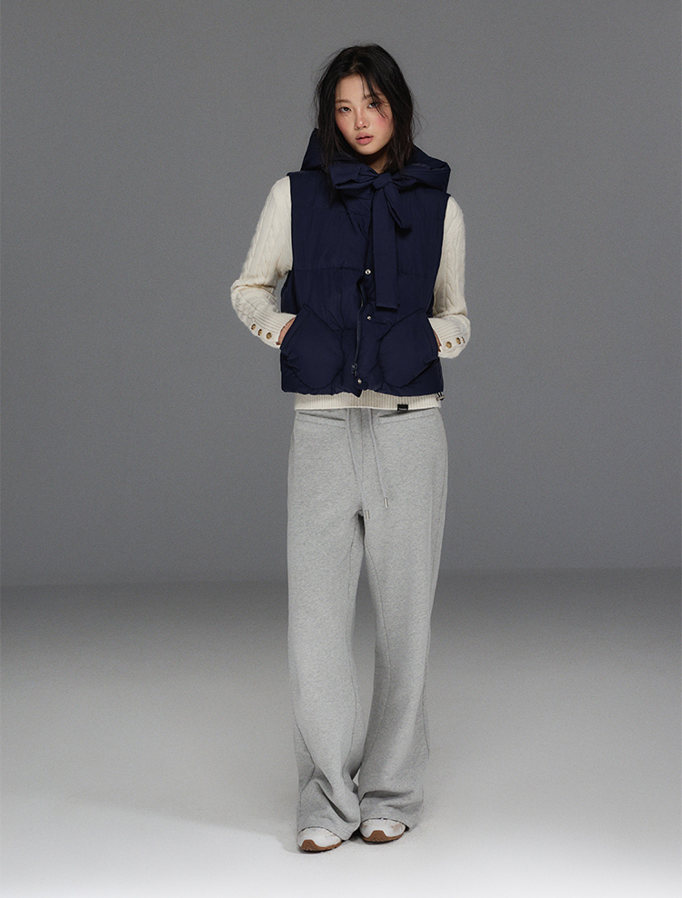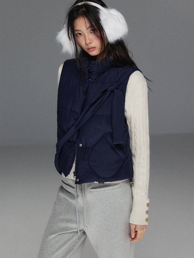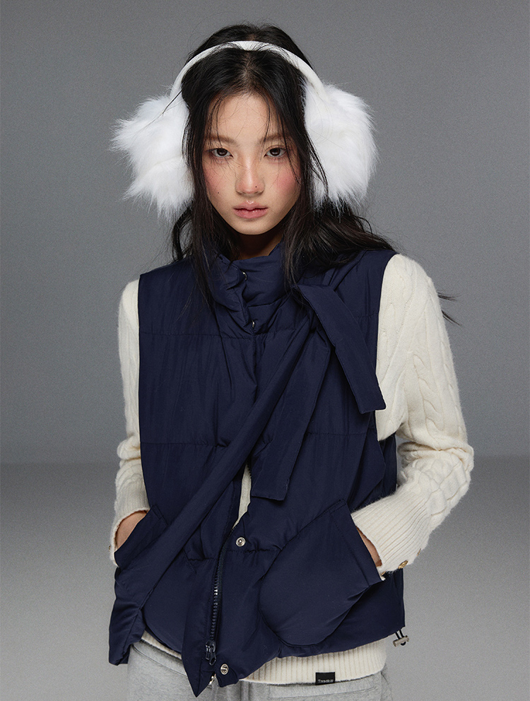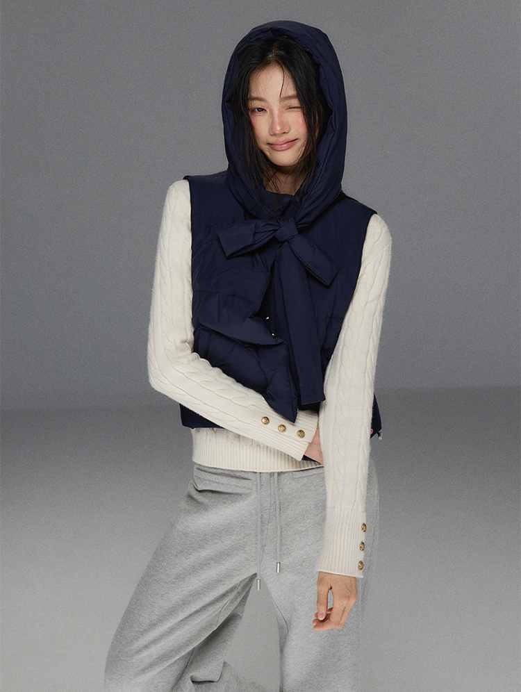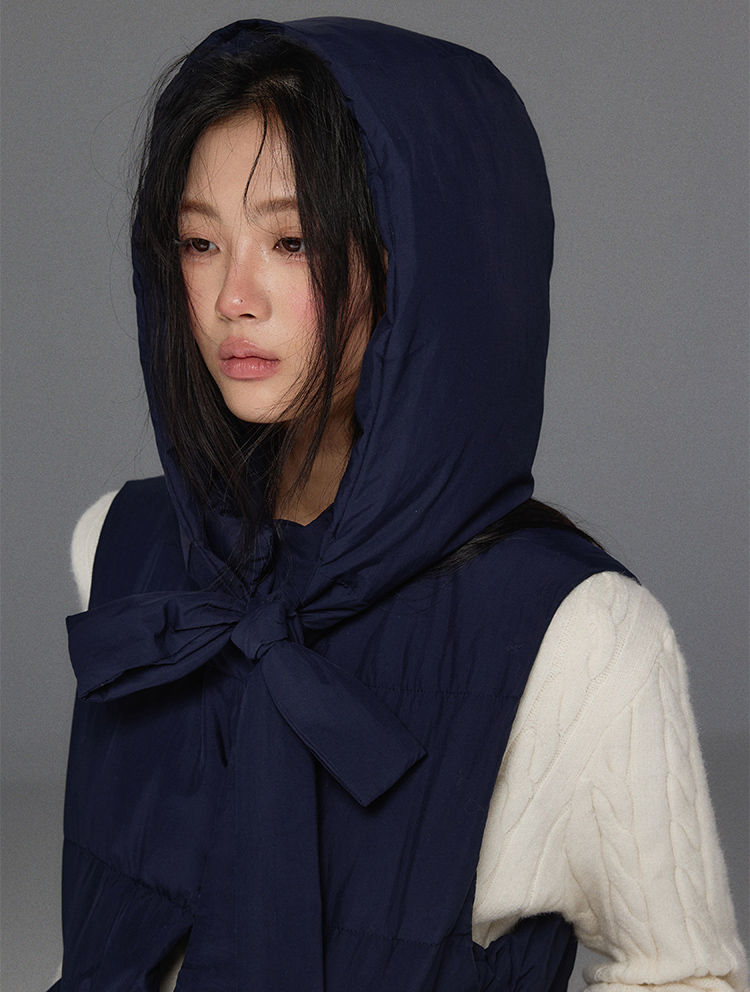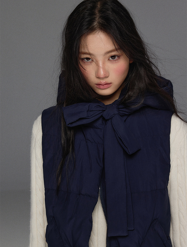 Detechable Ribbon Hoodie Down Padding Vest