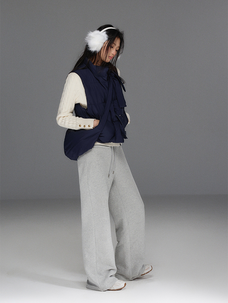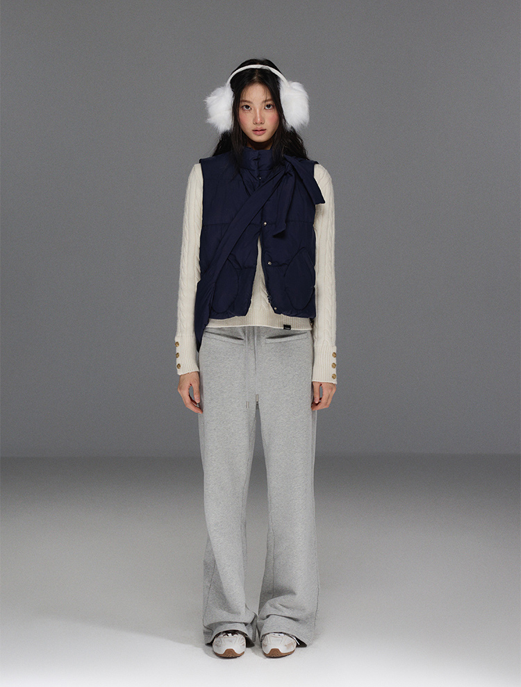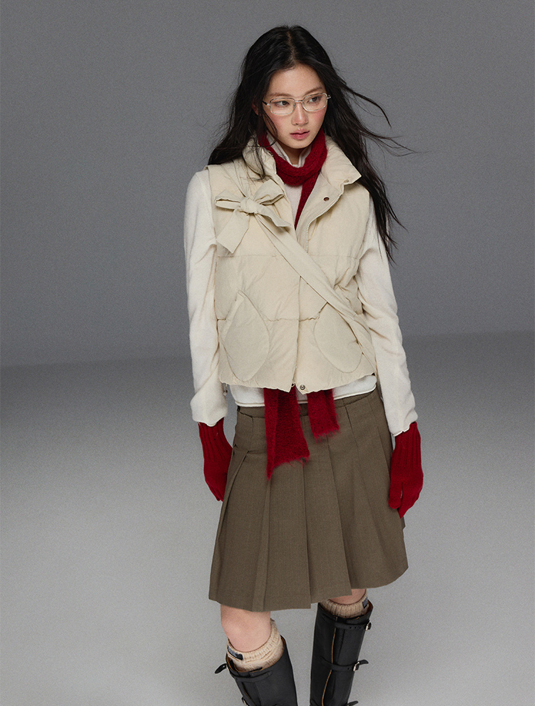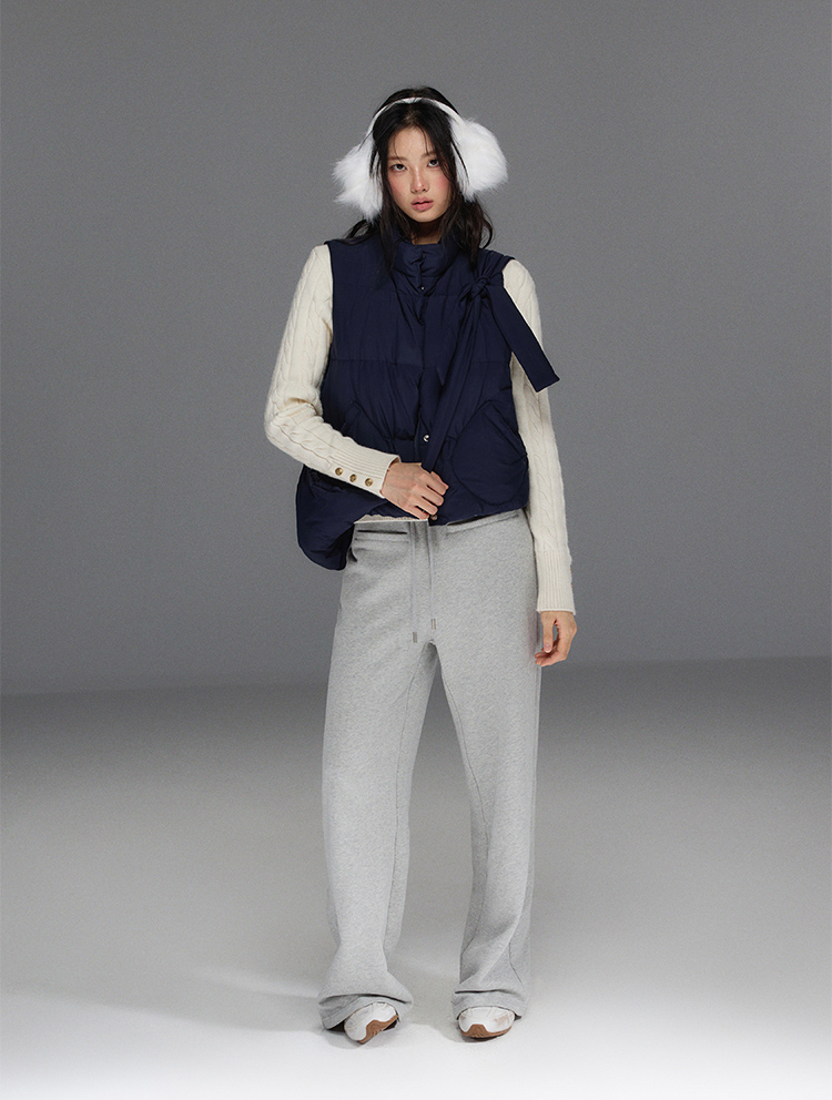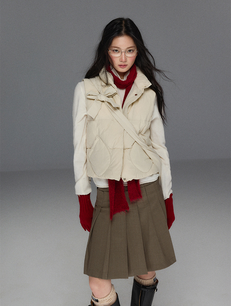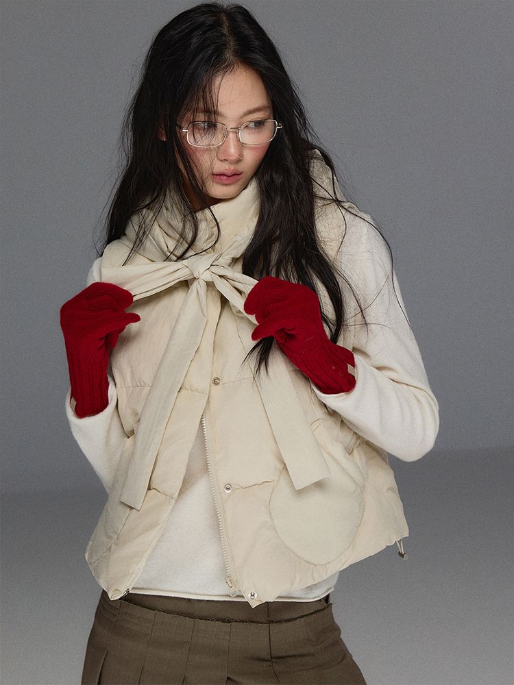 Detechable Ribbon Hoodie Down Padding Vest
