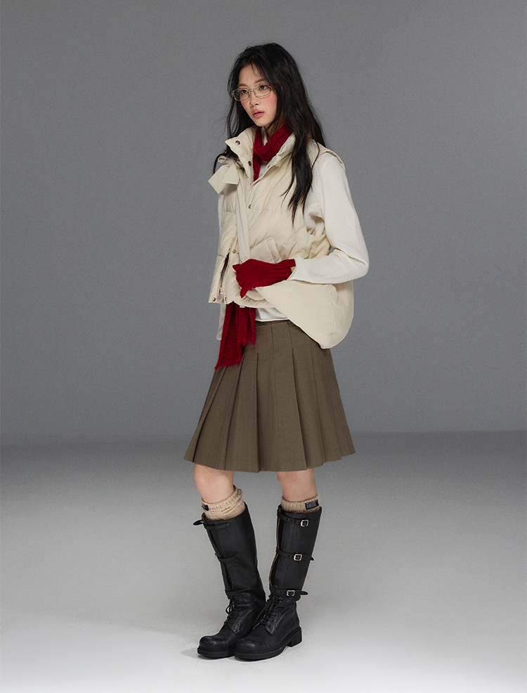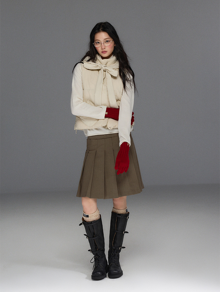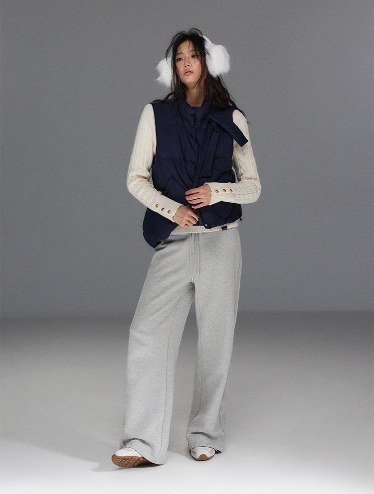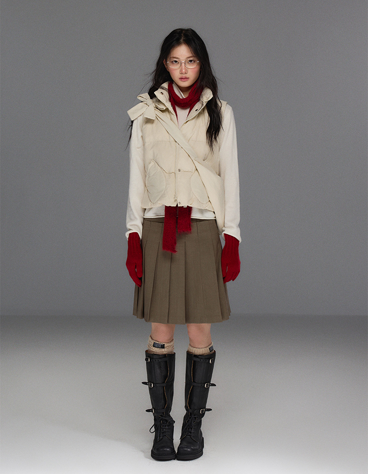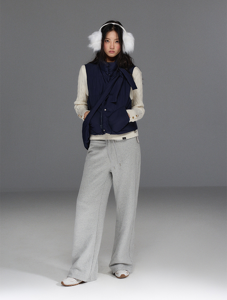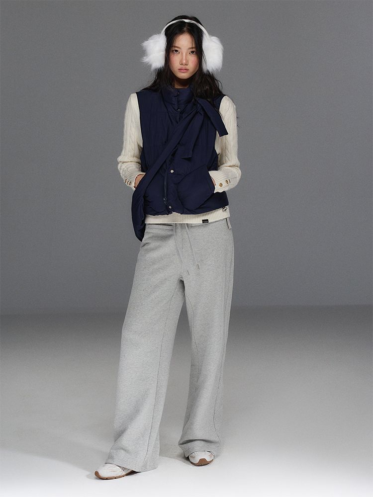Detechable Ribbon Hoodie Down Padding Vest