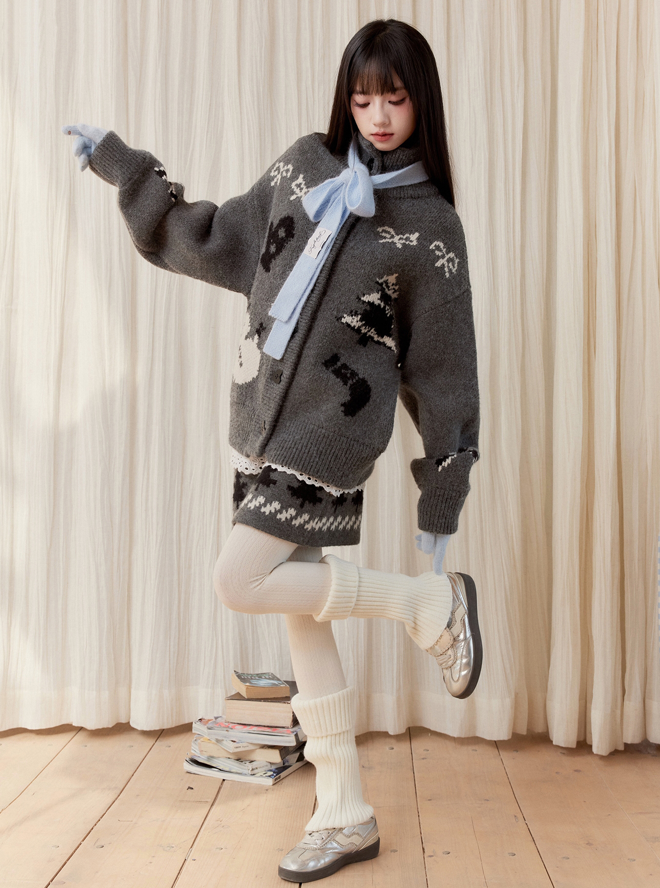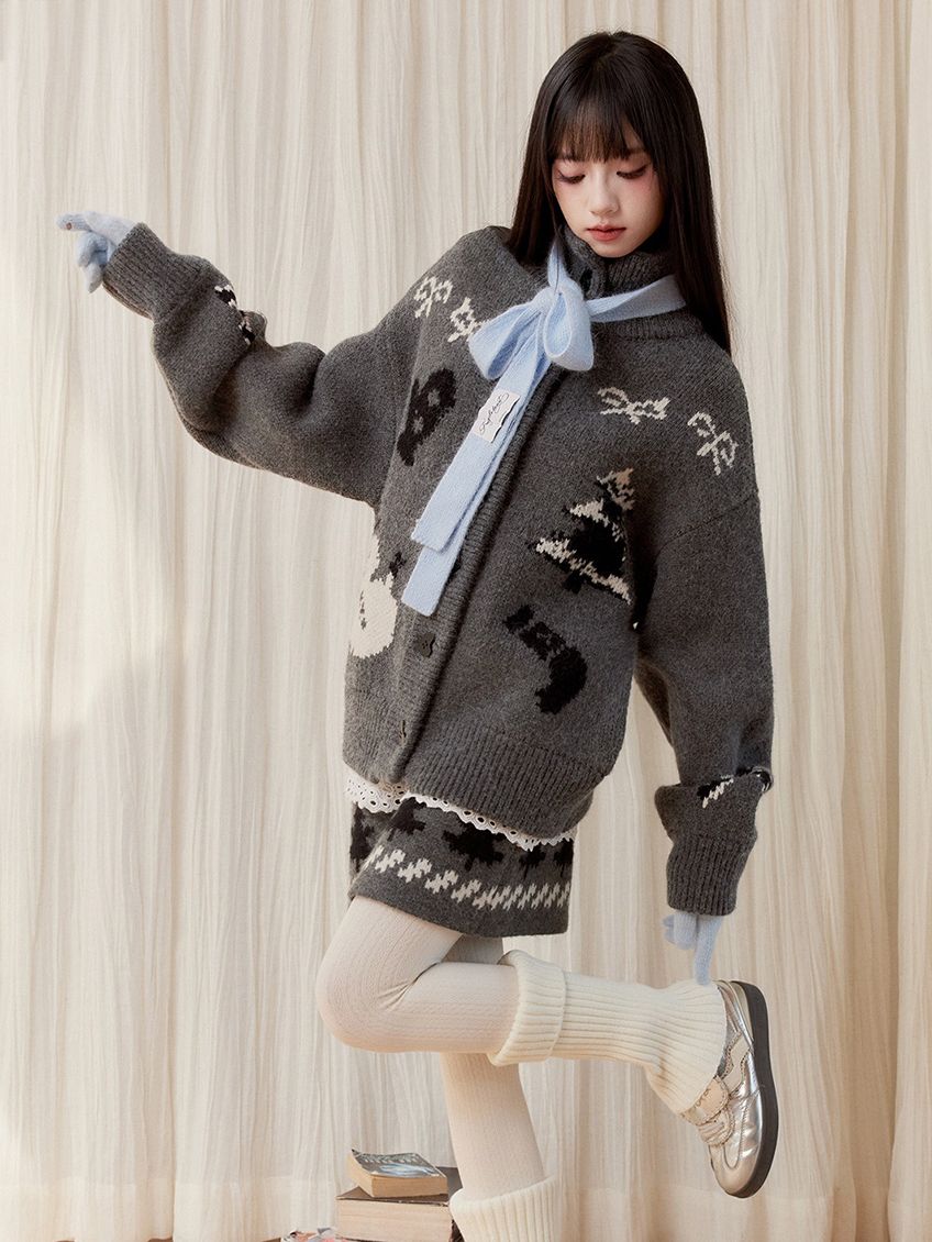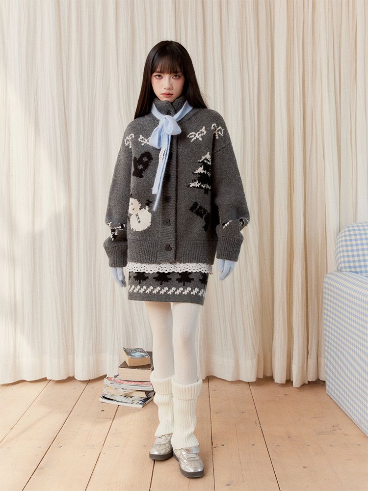 Snowman Fair Island Cardigan & Skirt Set