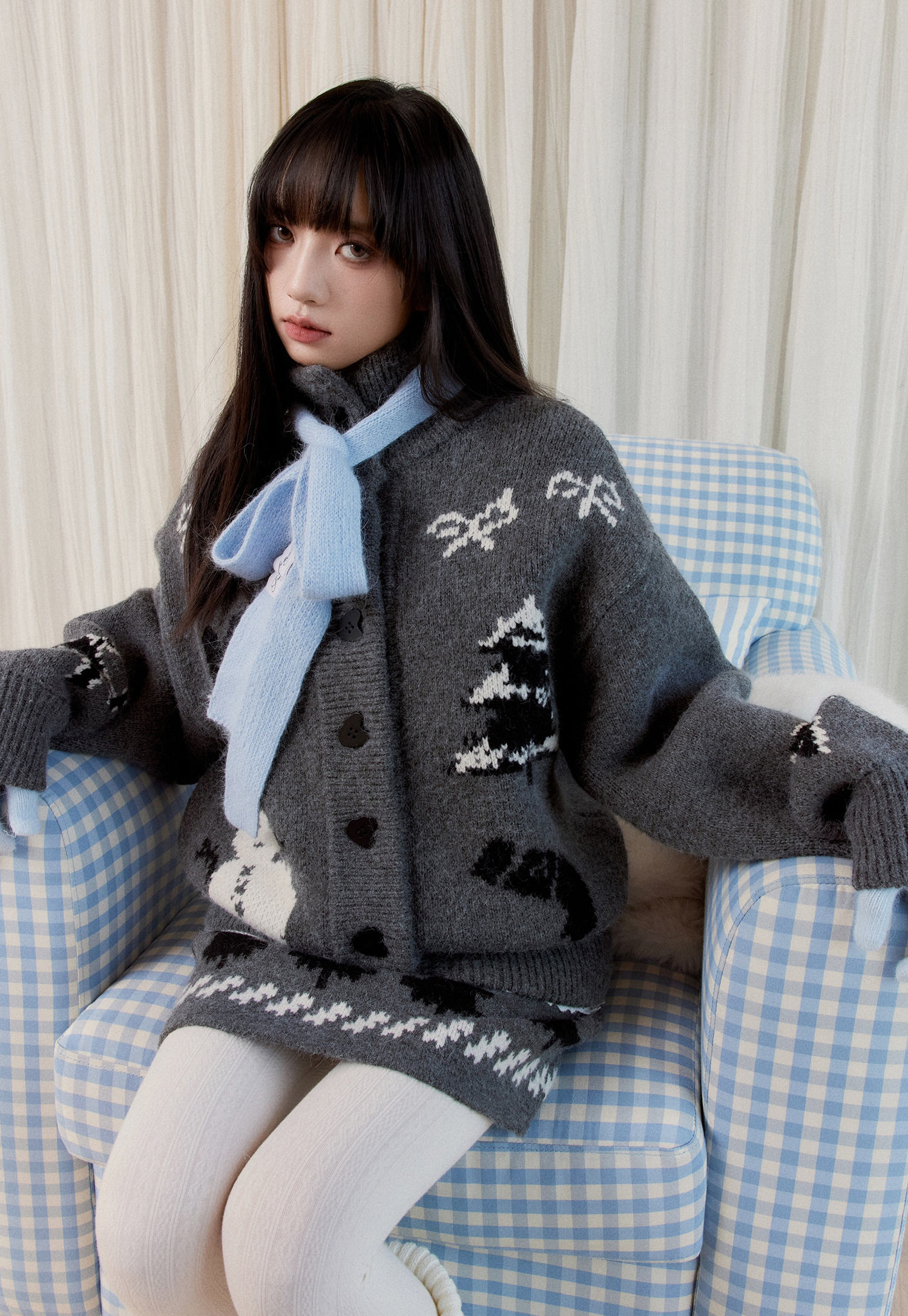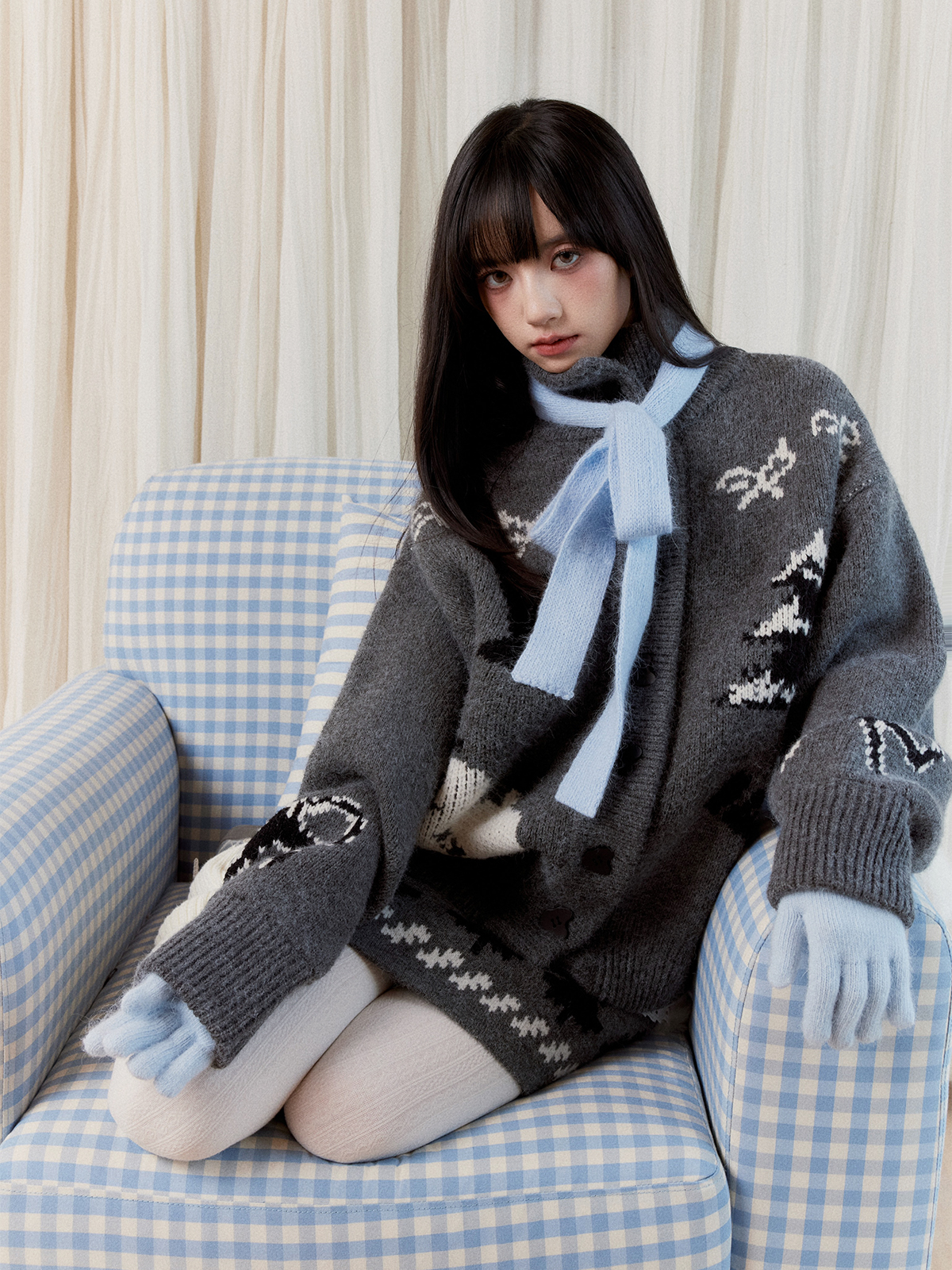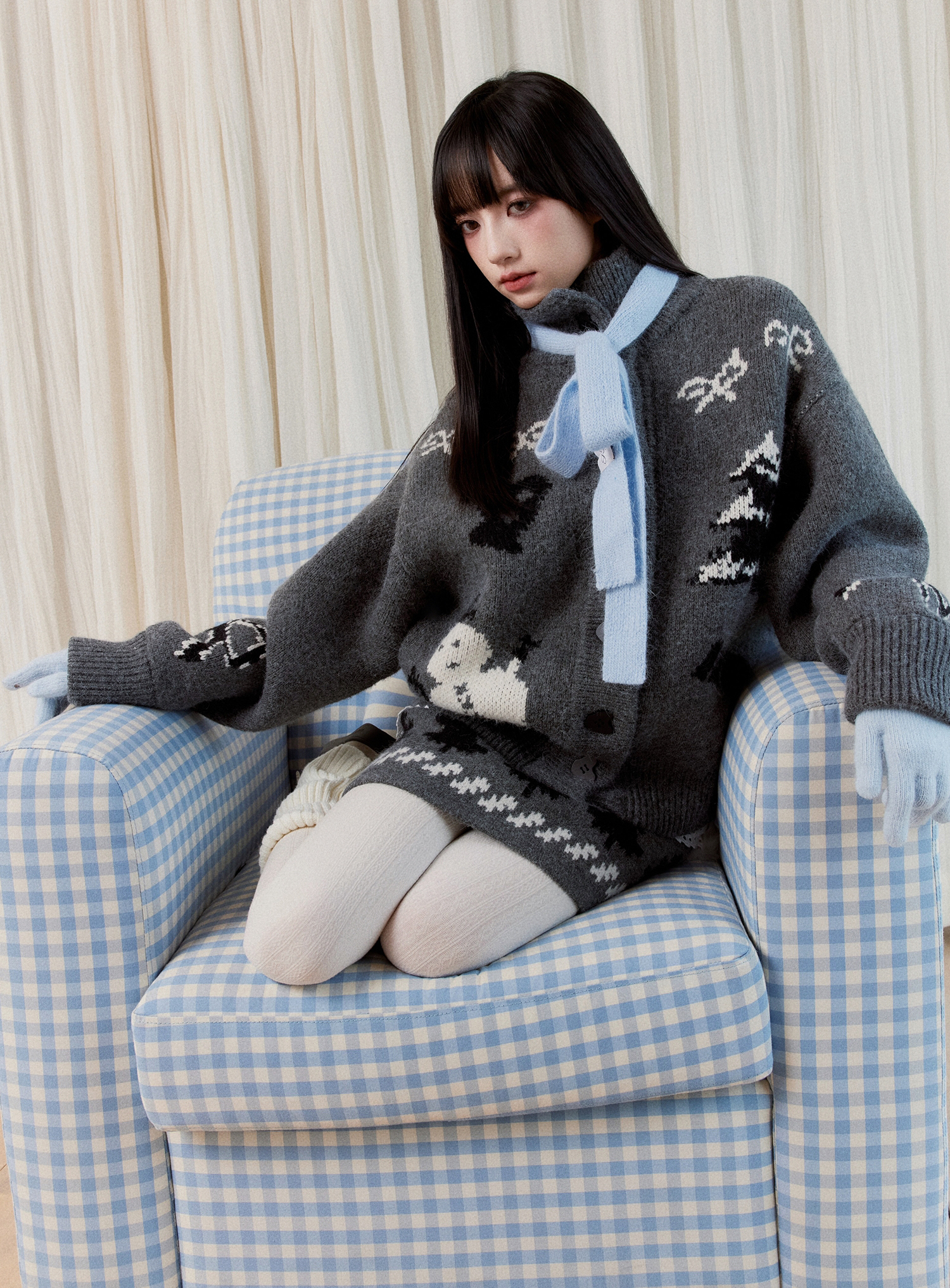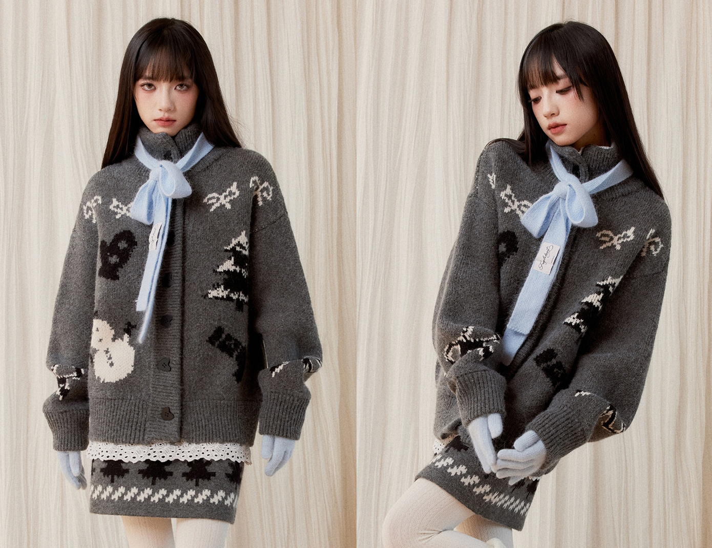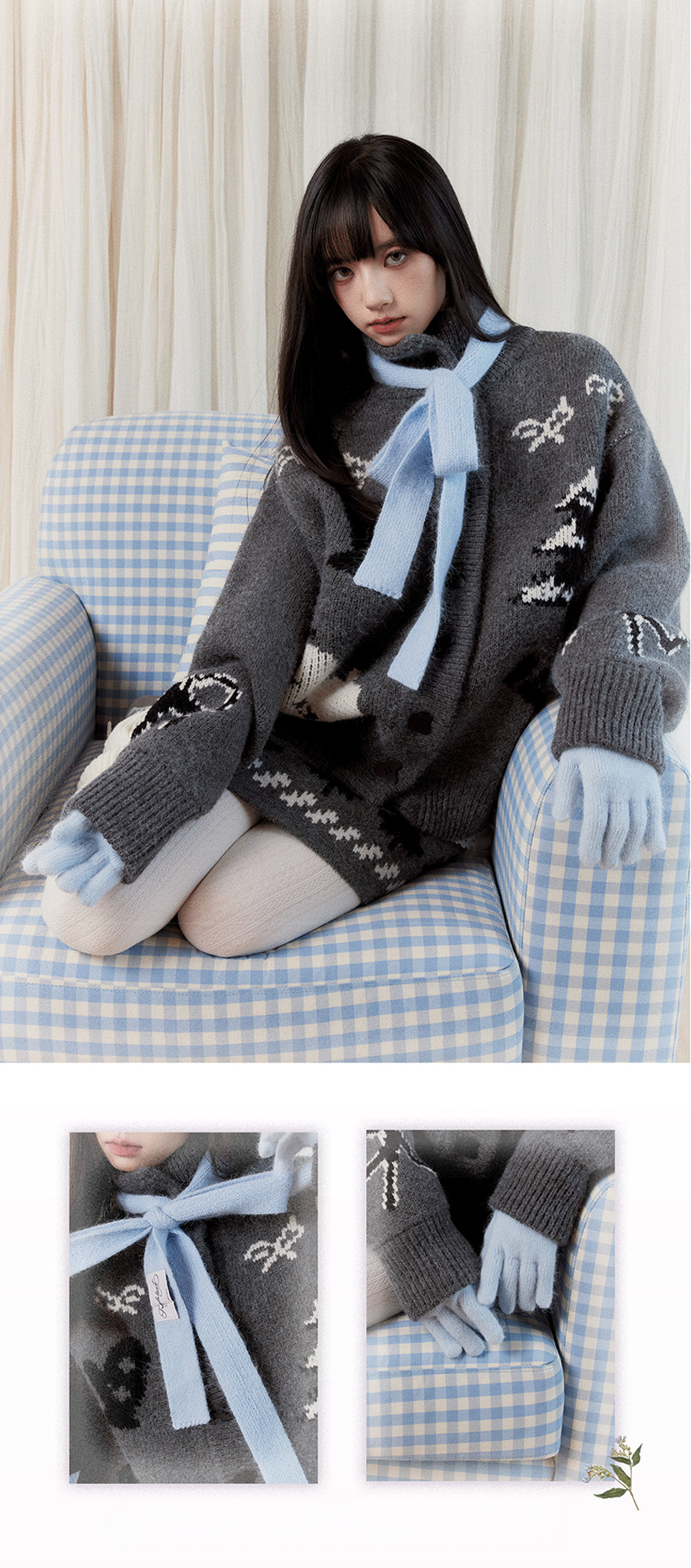 부드러운 터치감의 니트 소재로 제작된 세트로 활용하실 수 있는 가디건&스커트입니다.