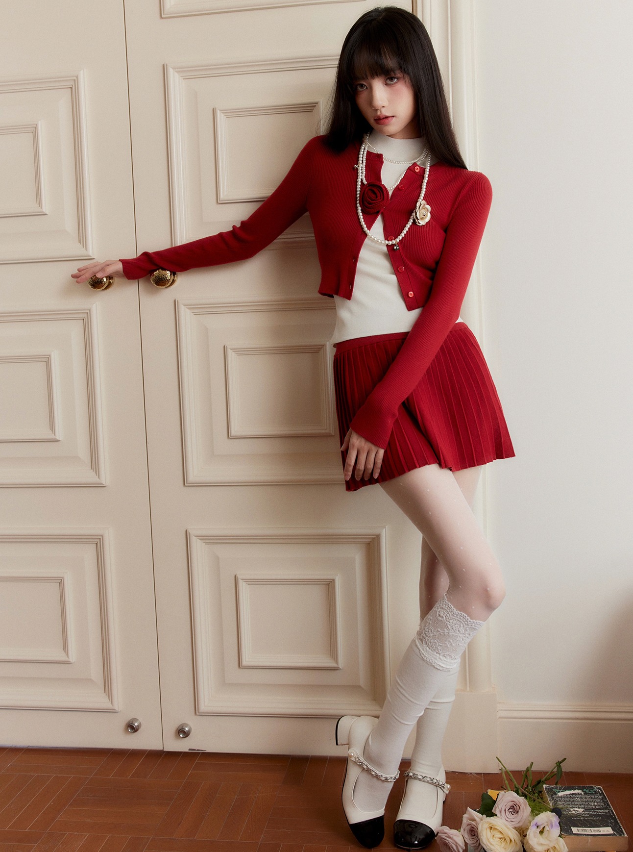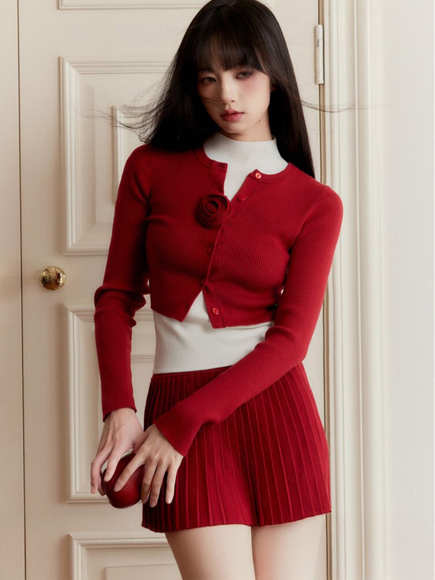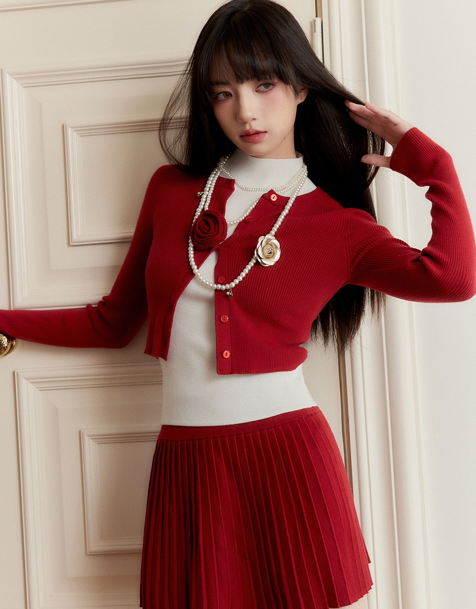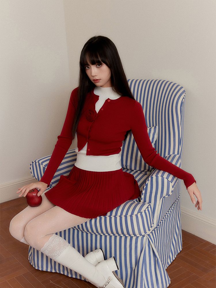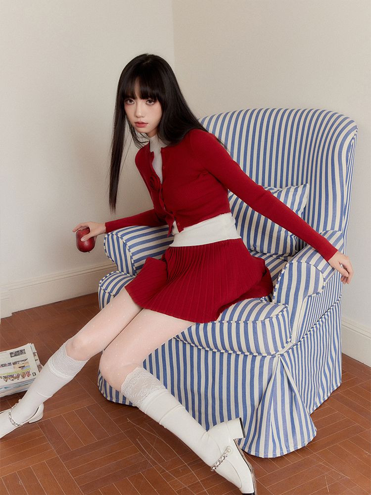 Red Cardigan & Skirt 3P Set-Up ( Sold Separately )