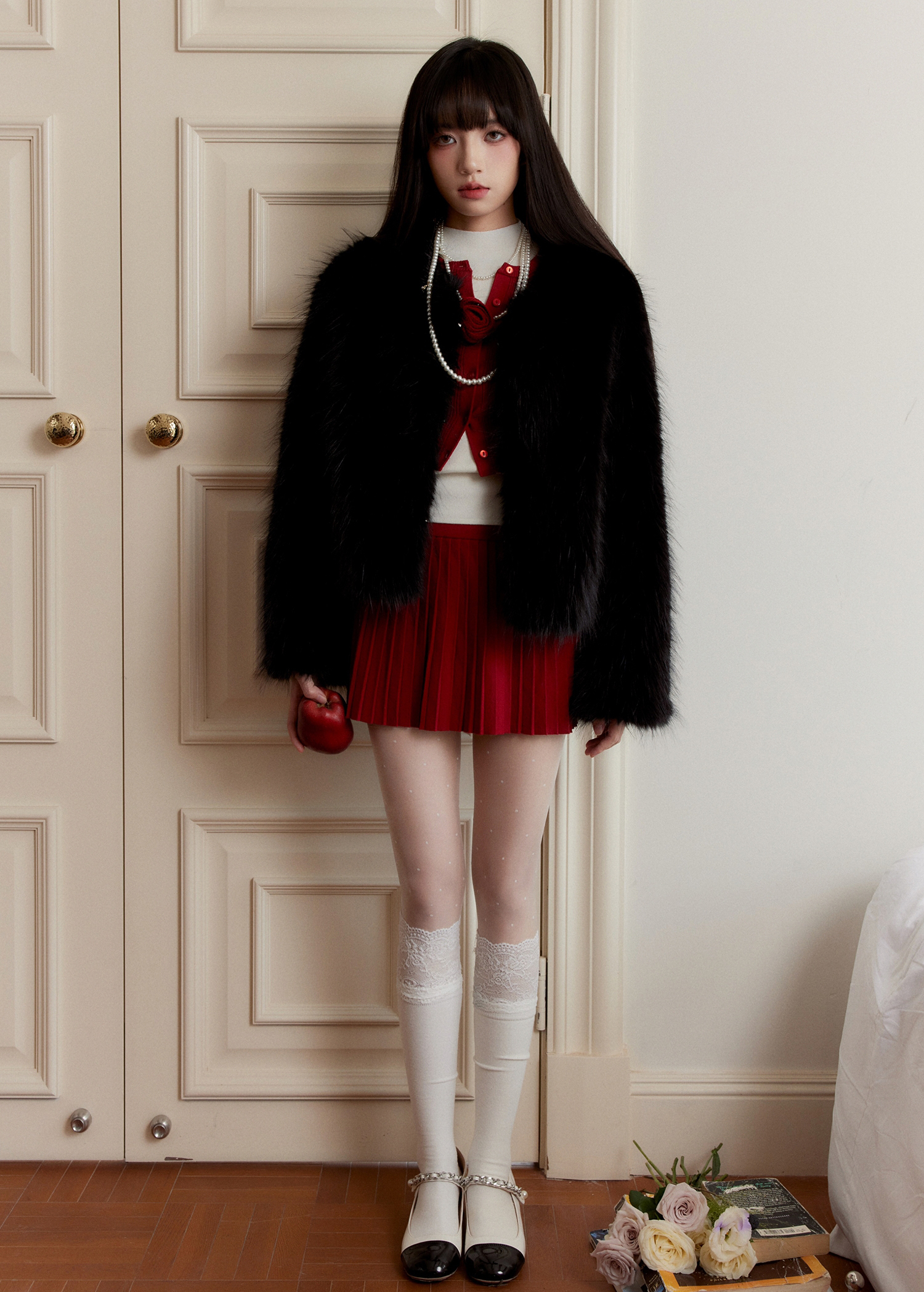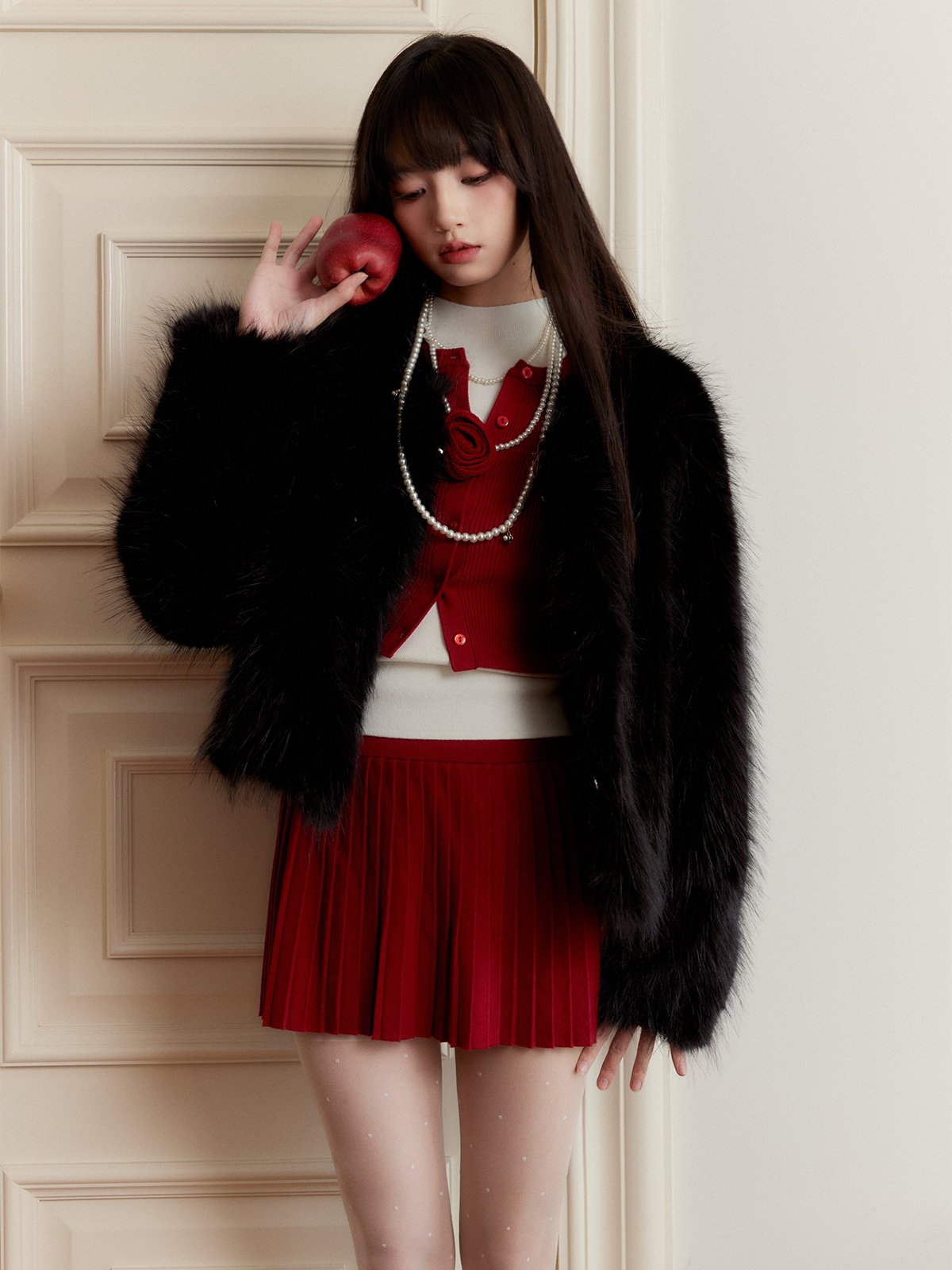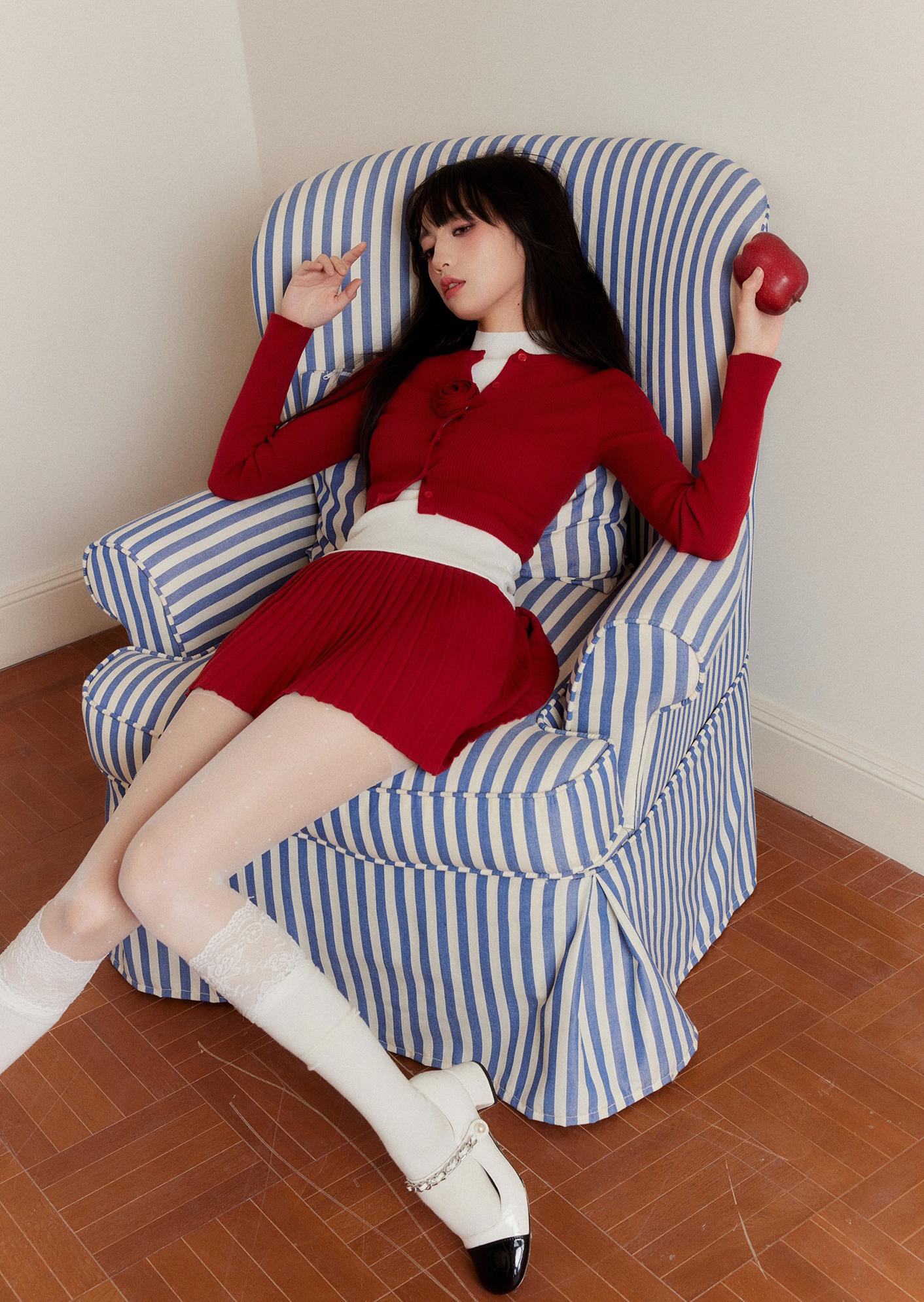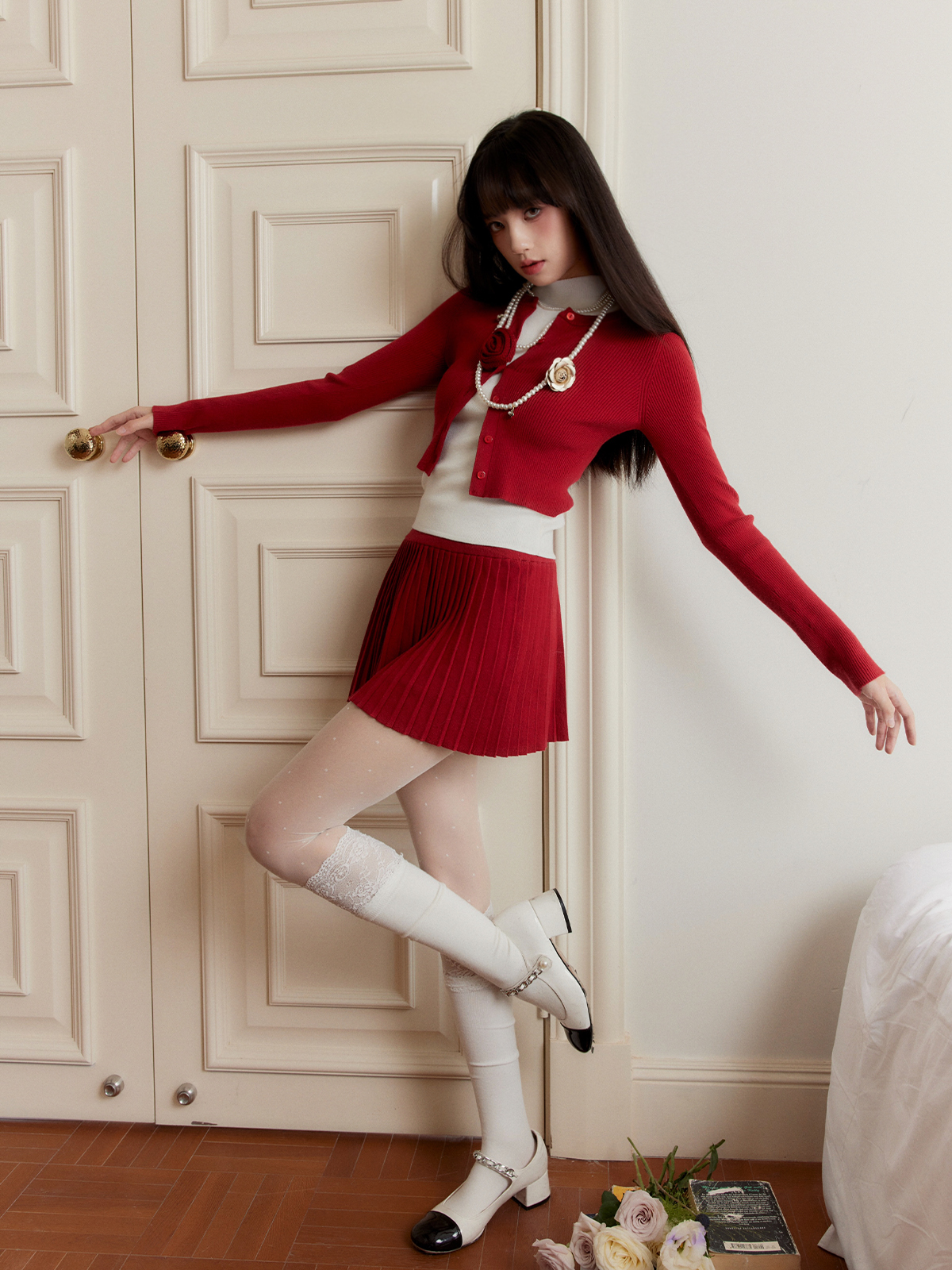 Red Cardigan & Skirt 3P Set-Up ( Sold Separately )