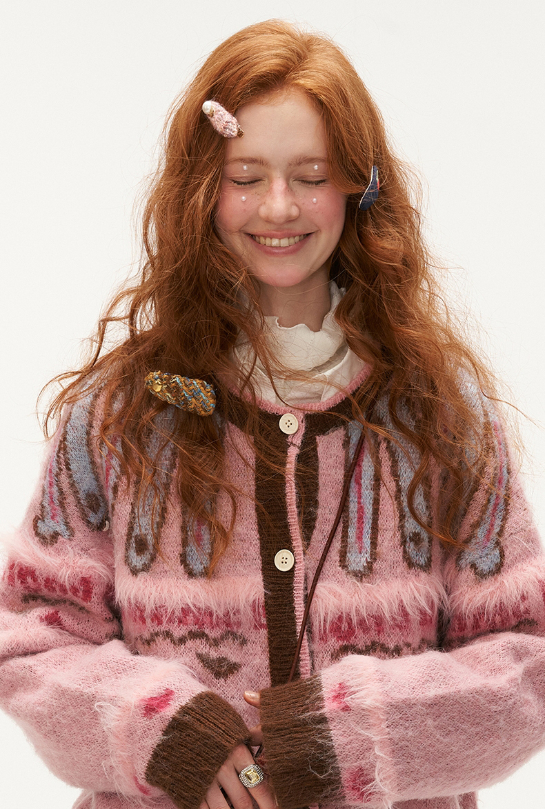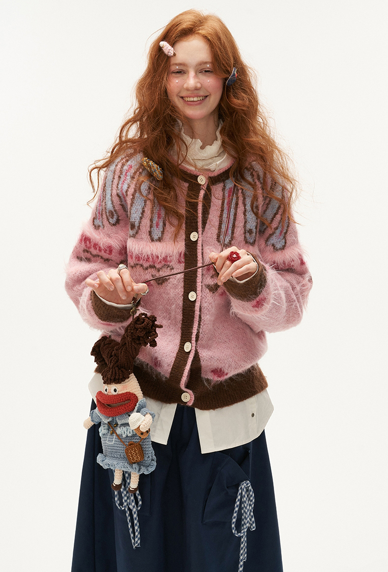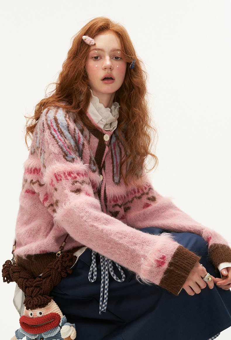 키치한 디자인의 색감이 매력적인 니트 가디건입니다.