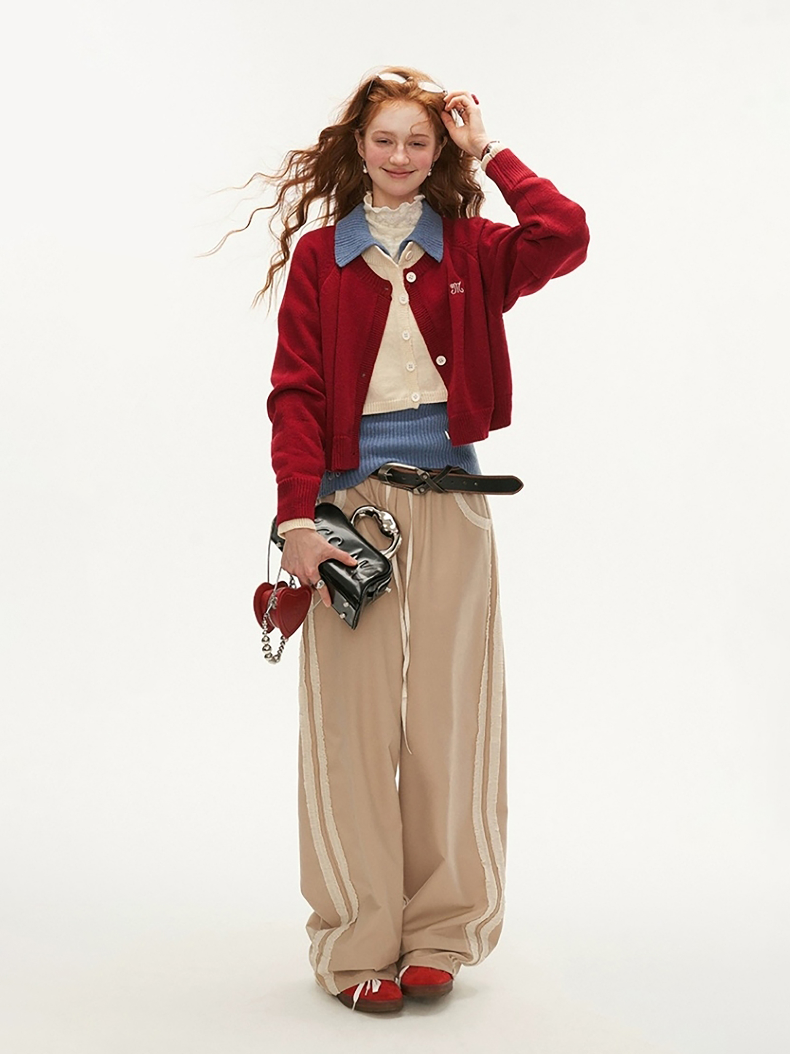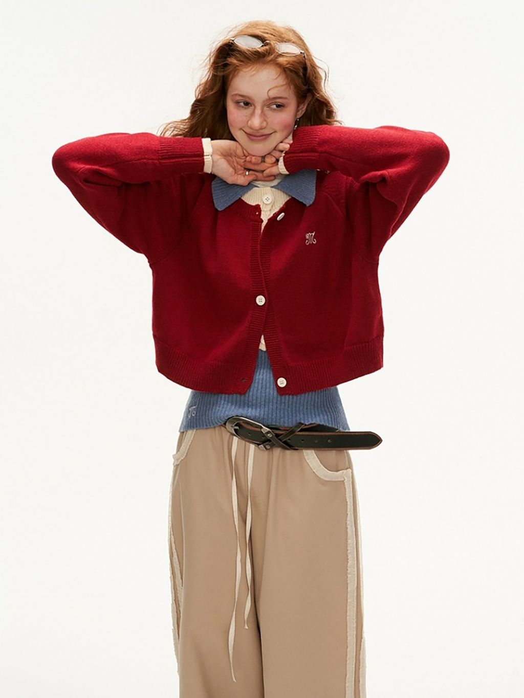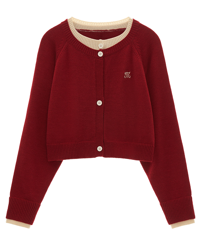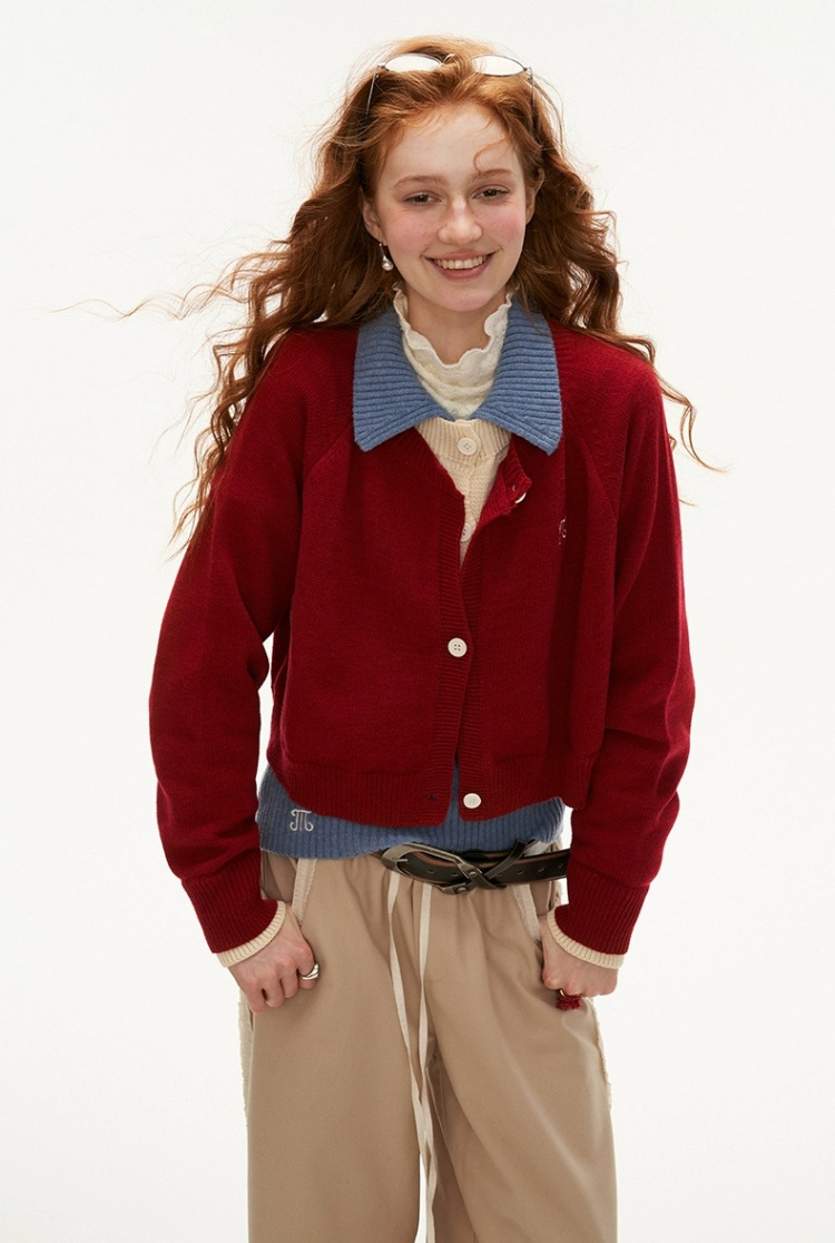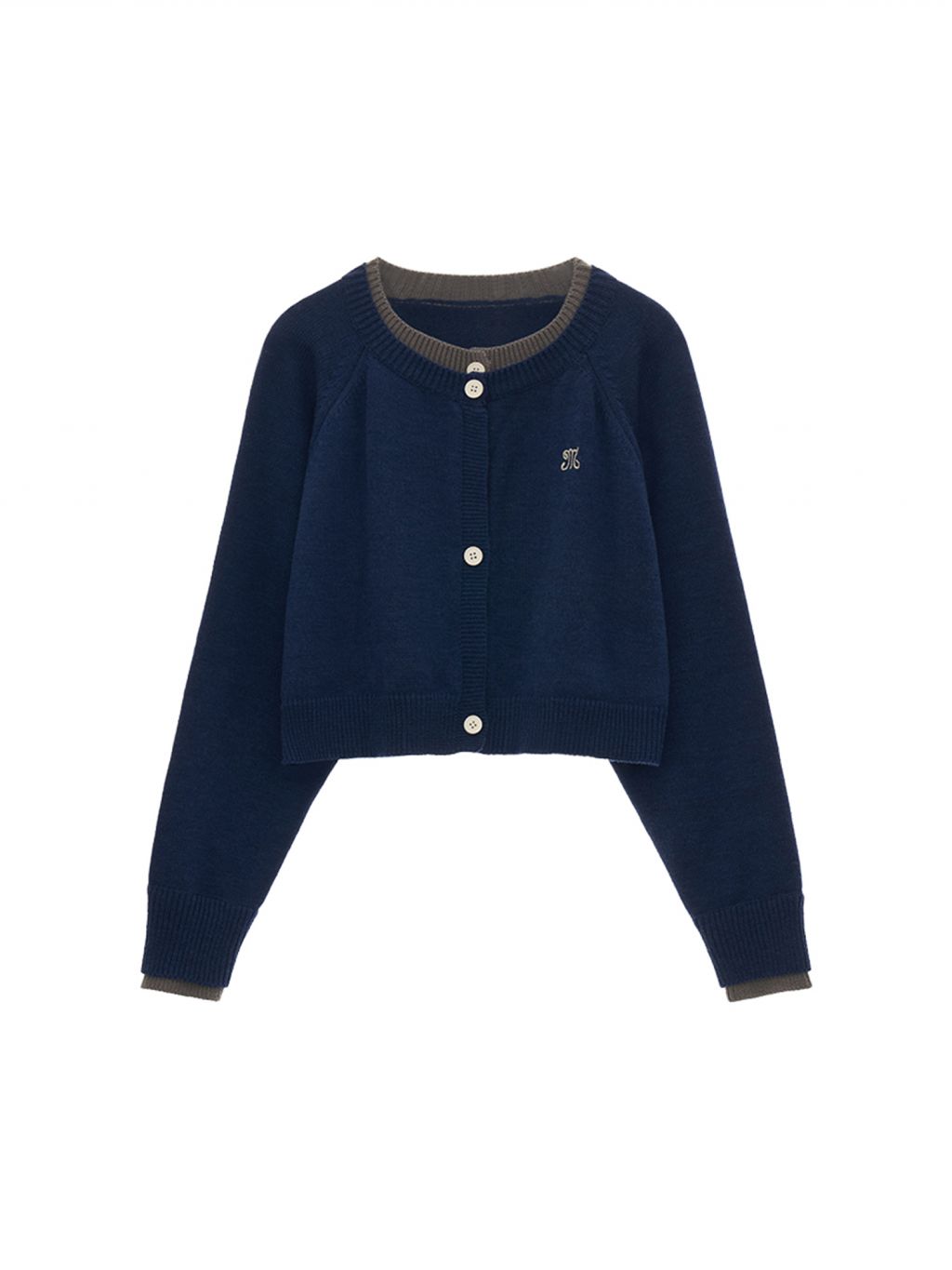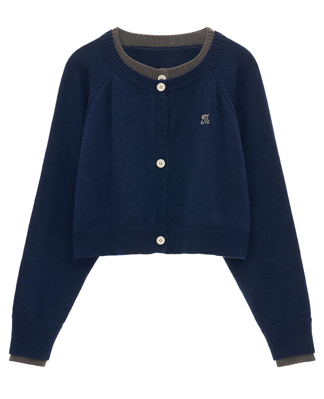 컬러 배색 디자인이 돋보이는 레이어드 니트 가디건입니다.