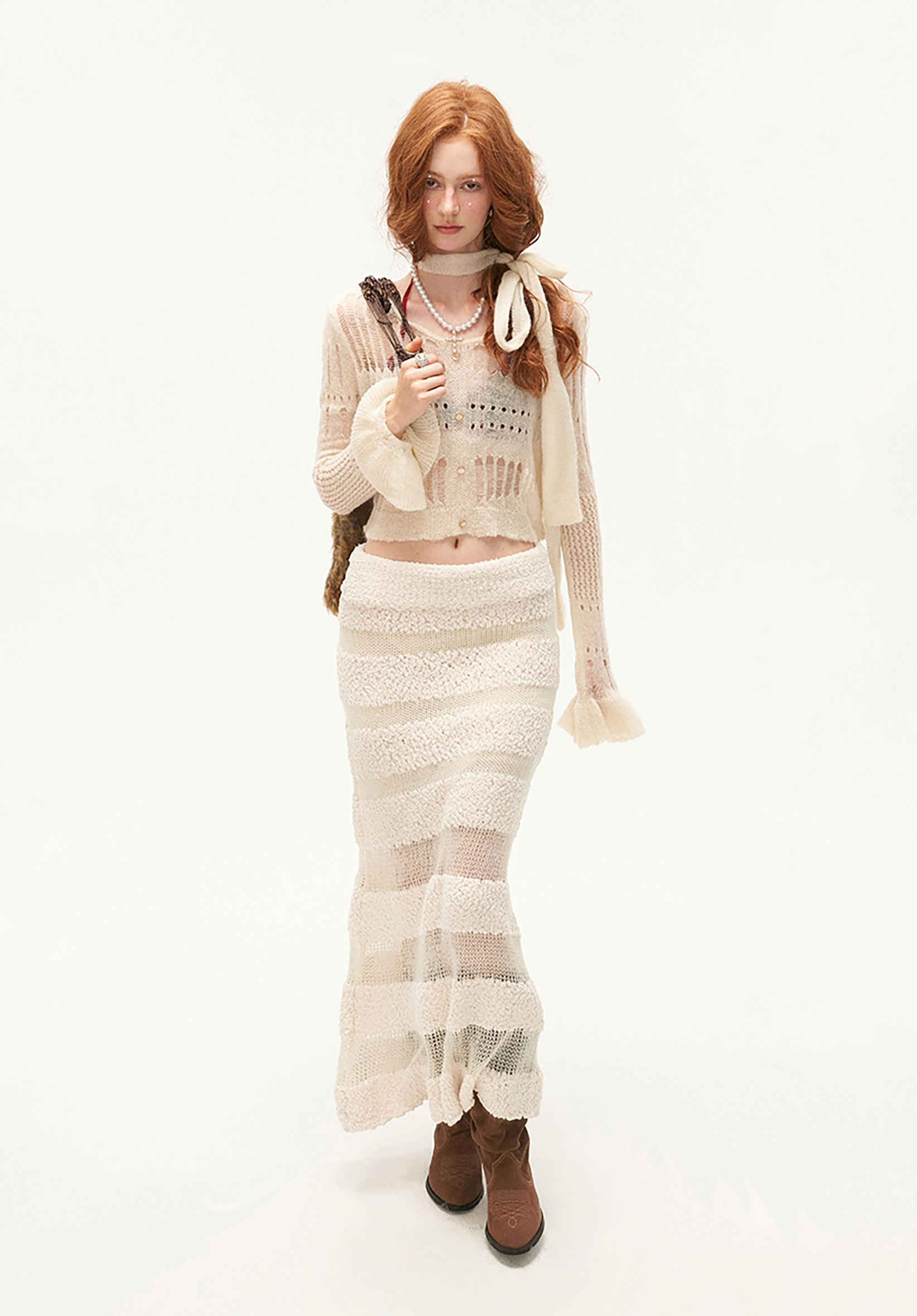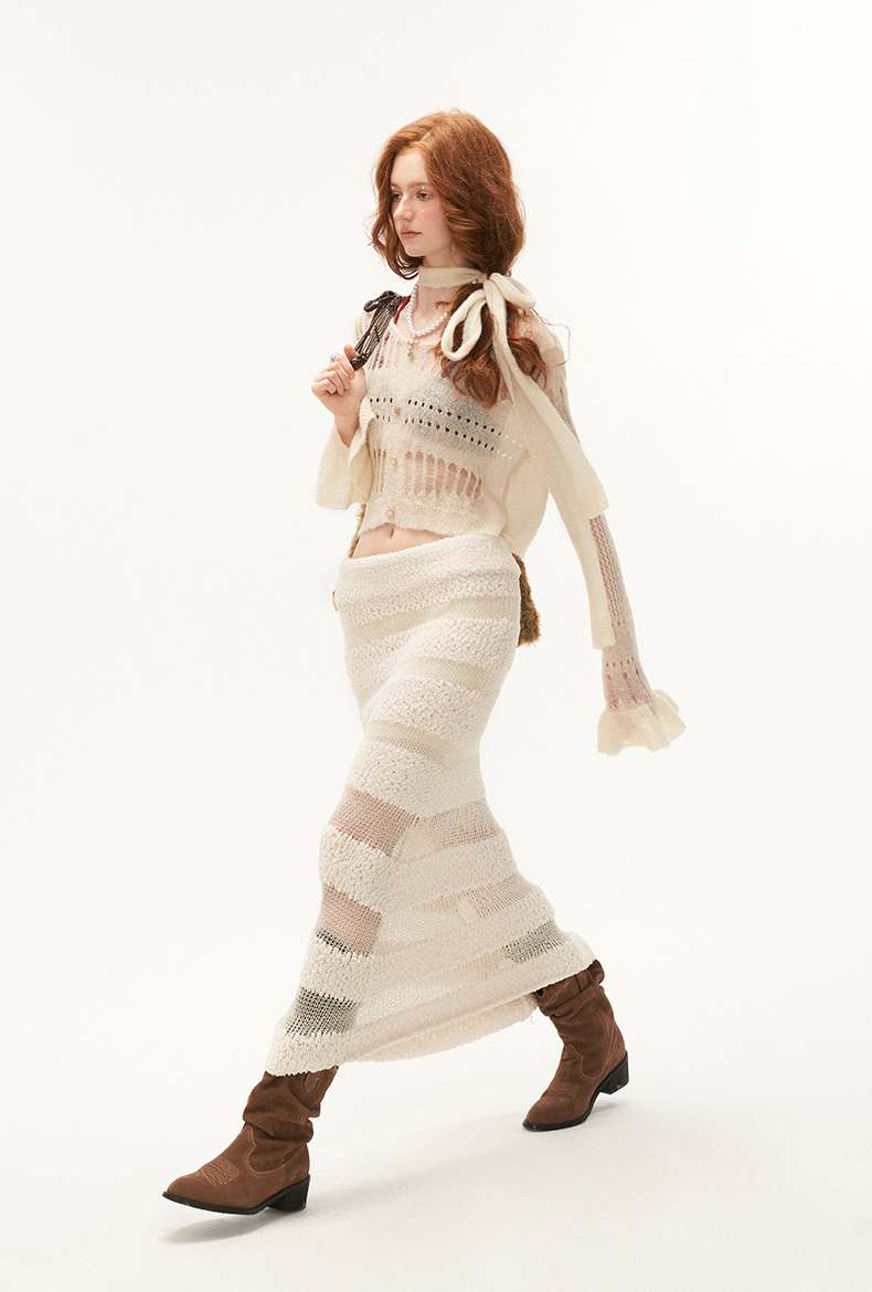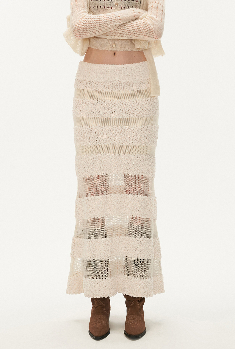 See-Through Knit Striped Long Skirt