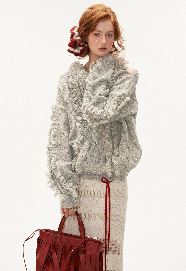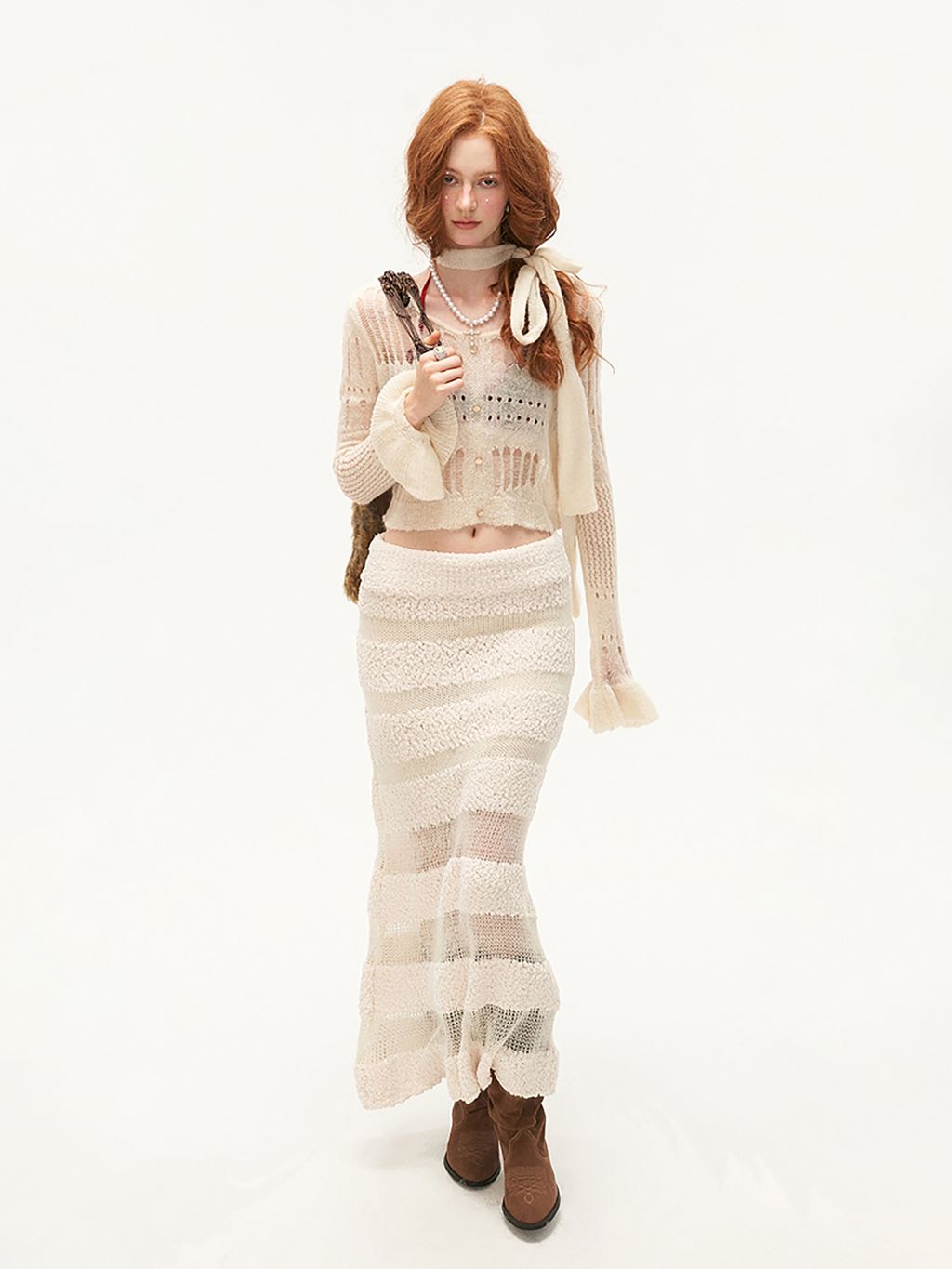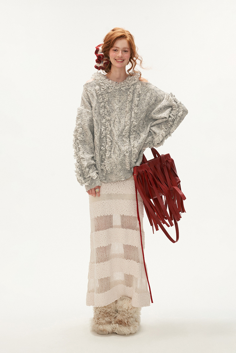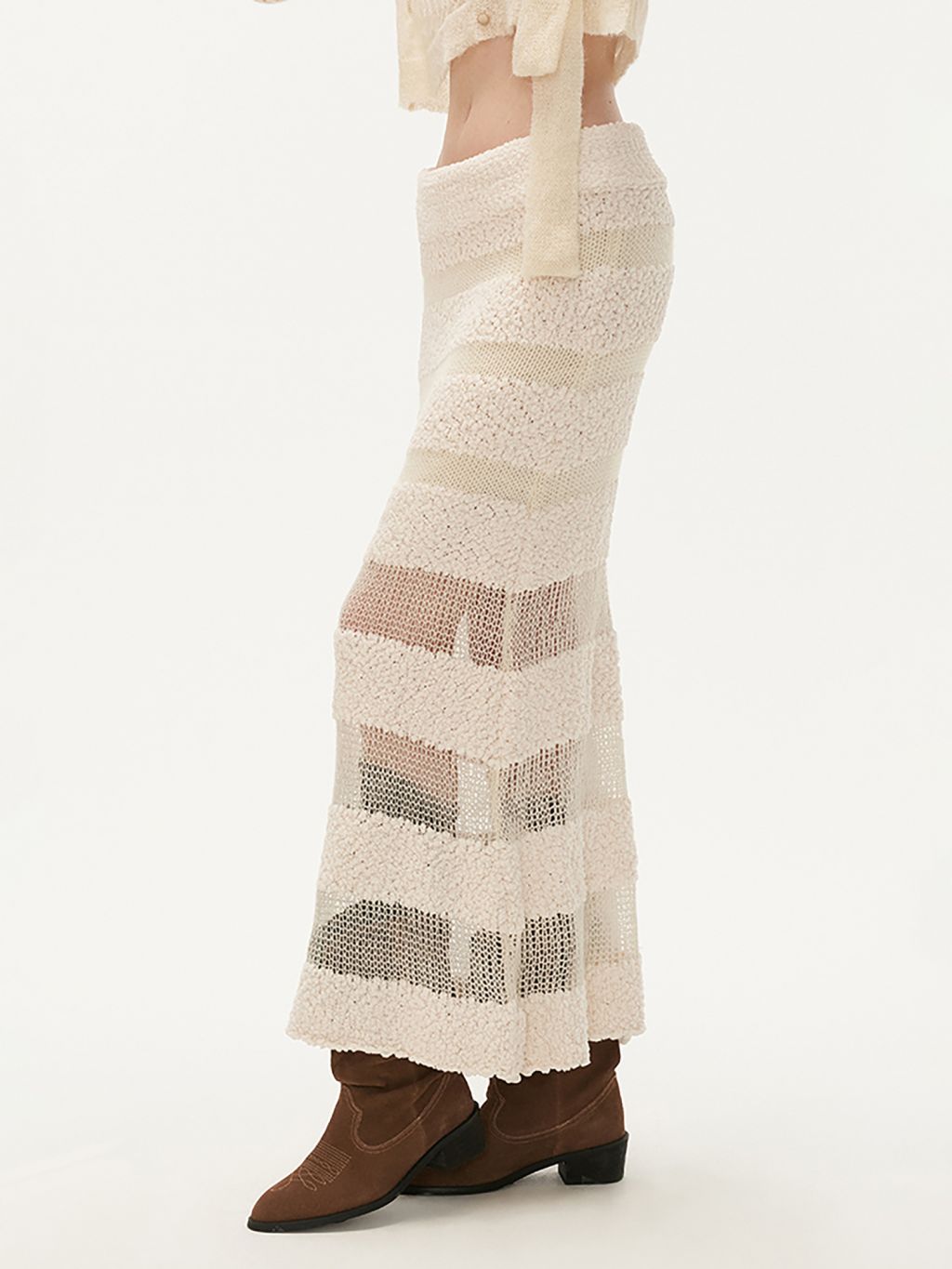 See-Through Knit Striped Long Skirt