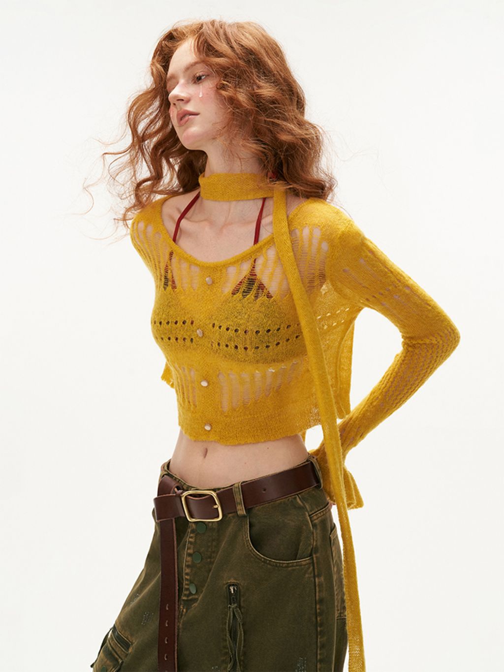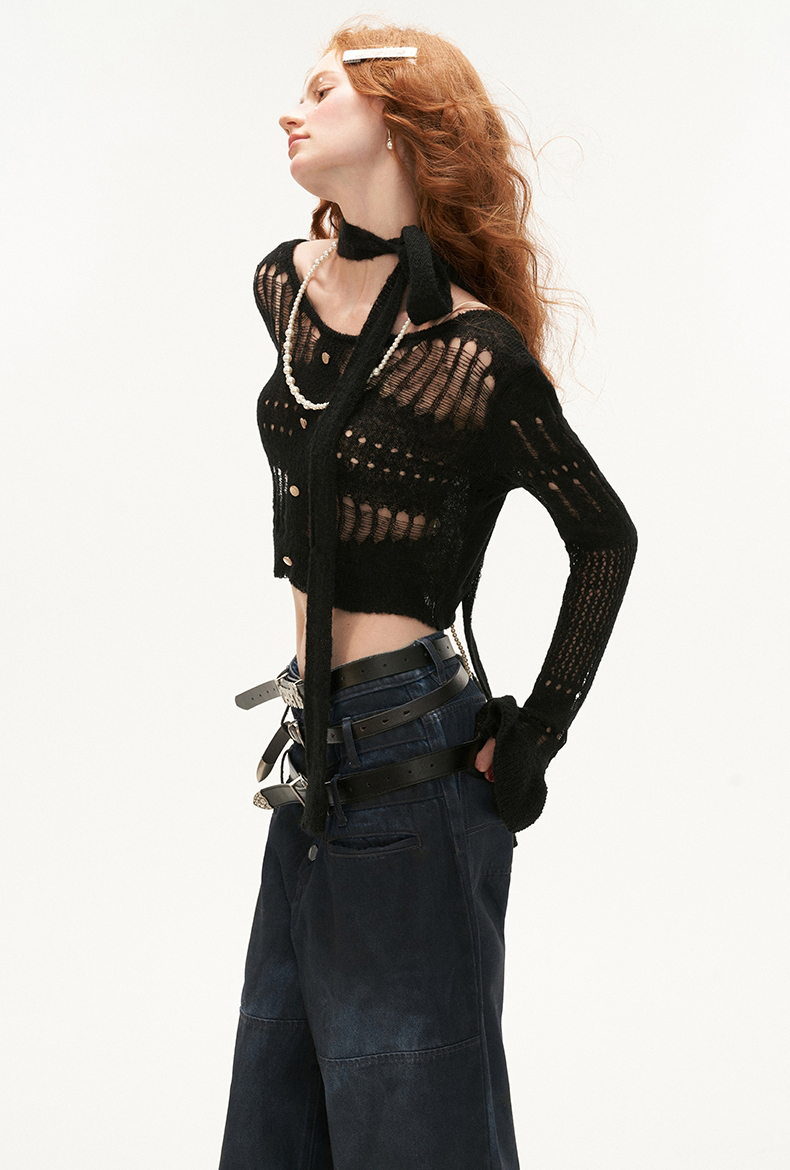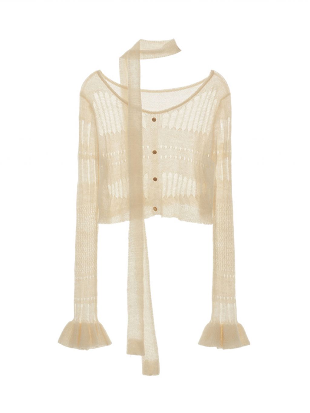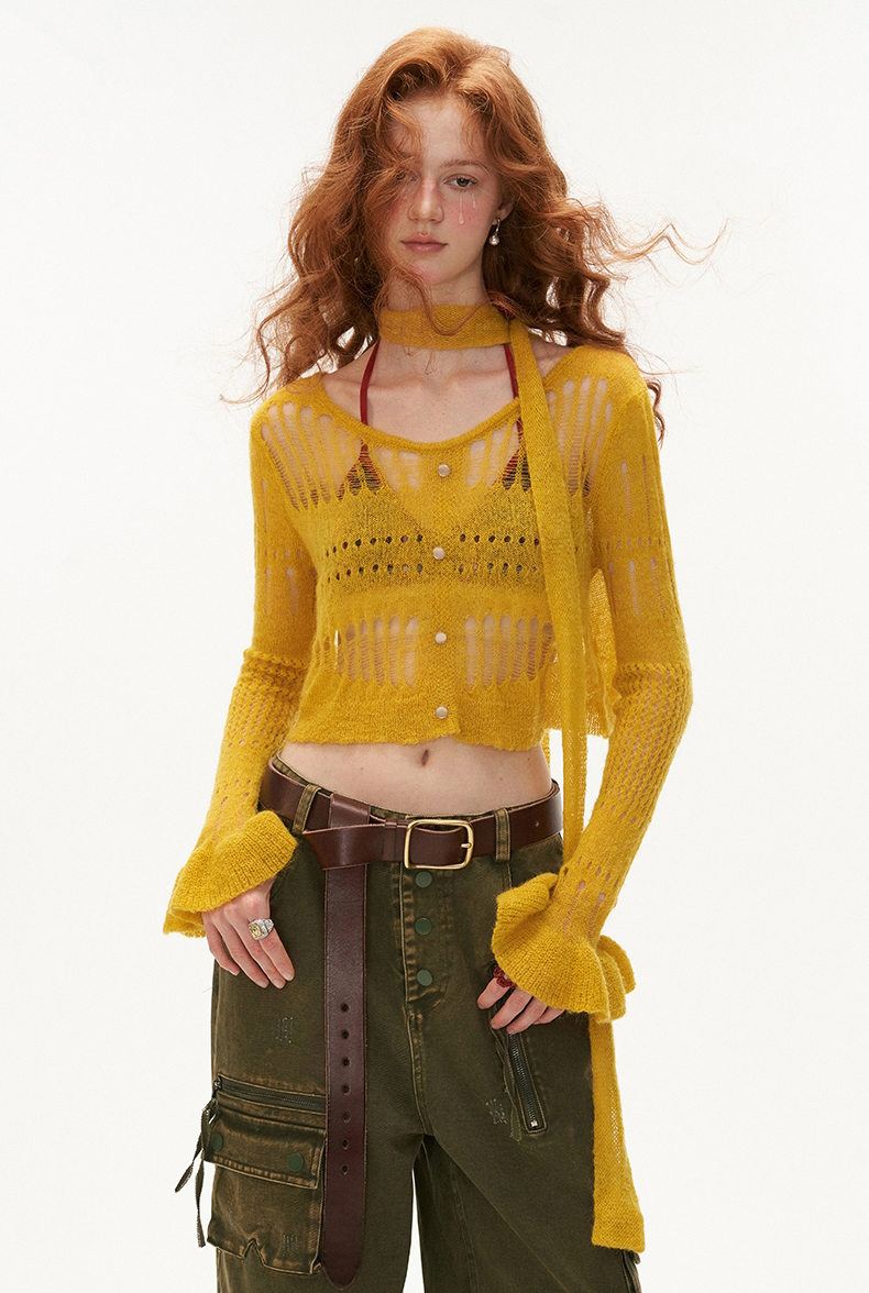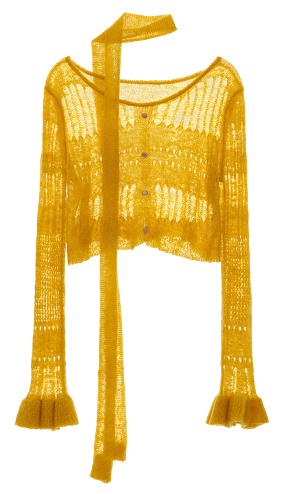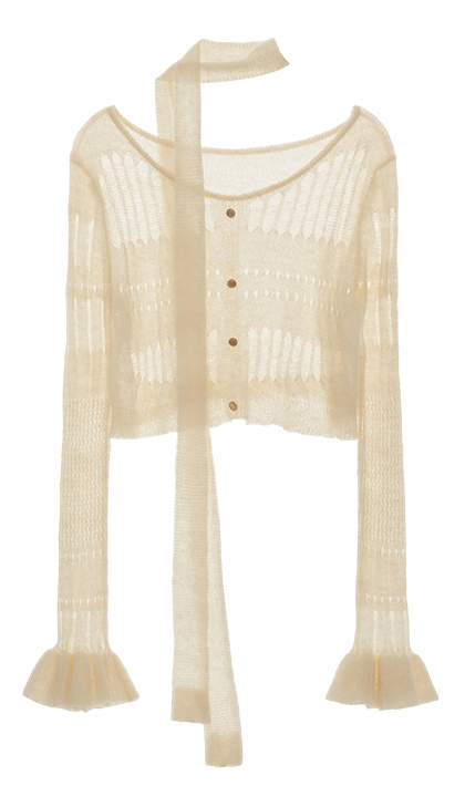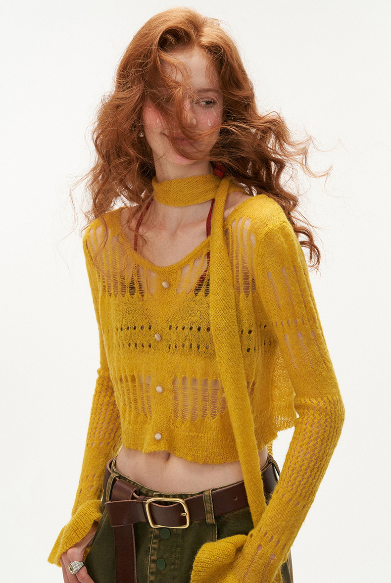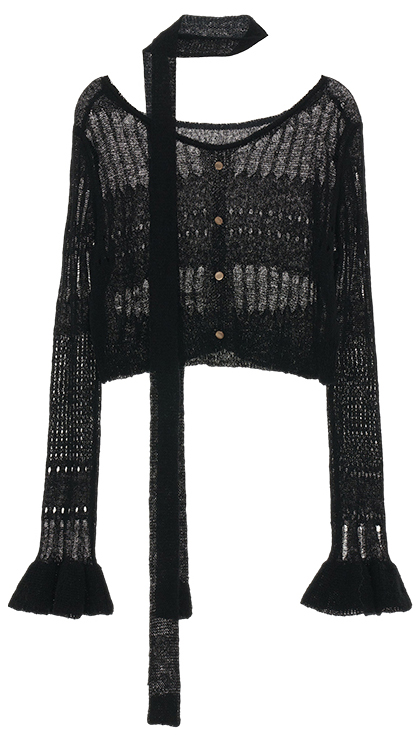 성글한 짜임이 돋보이는 가디건과 스카프 세트 상품입니다.