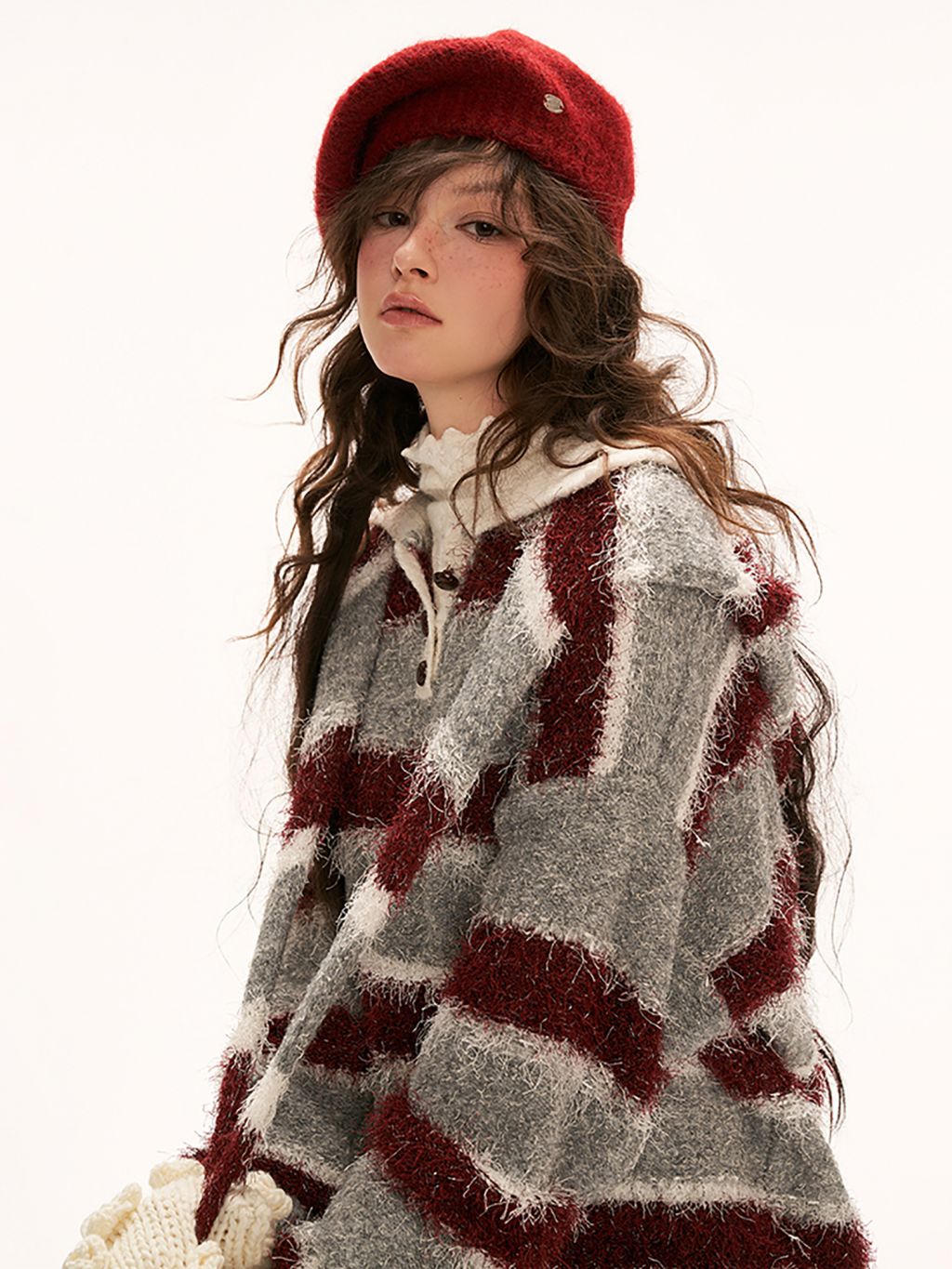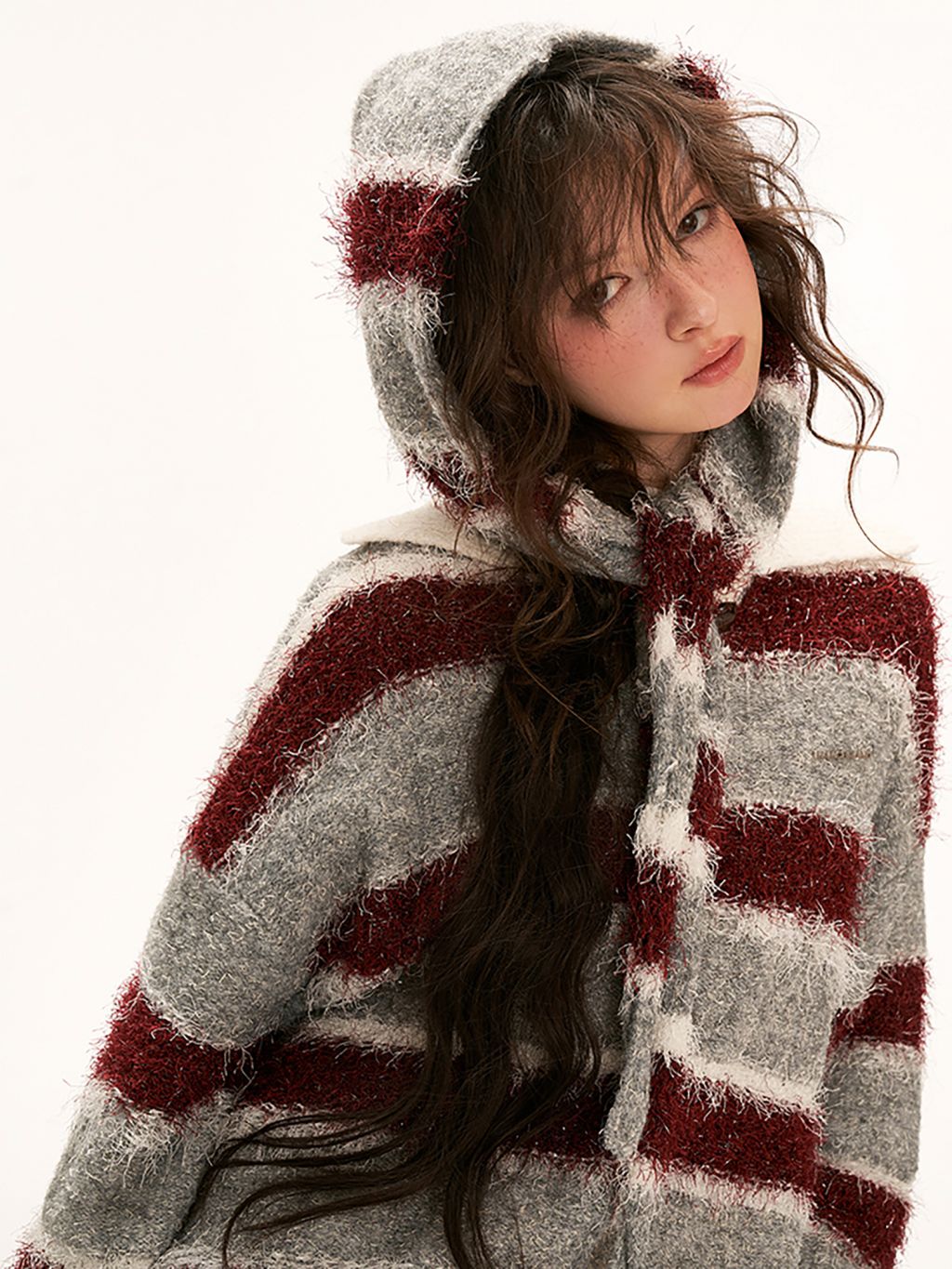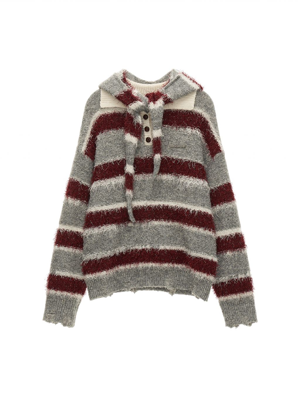 플러피한 원단의 스트라이프 폴로 스웨터입니다.