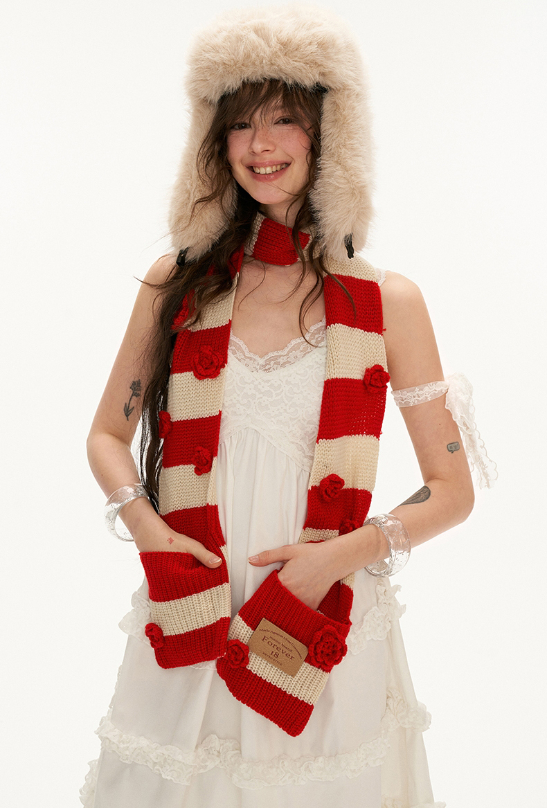 Rose Striped Pocket Scarf