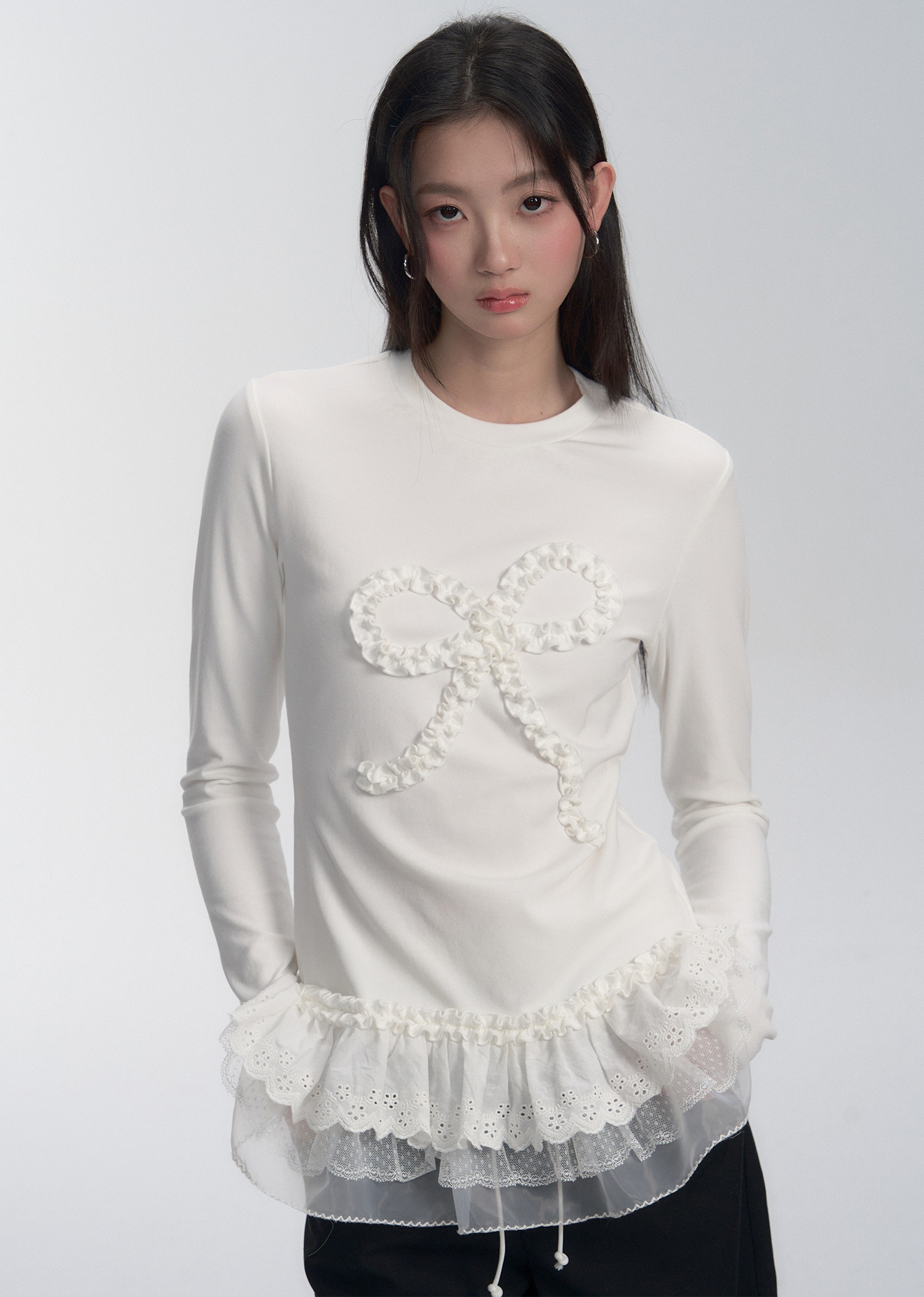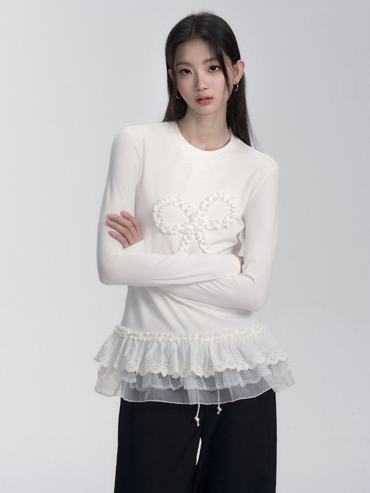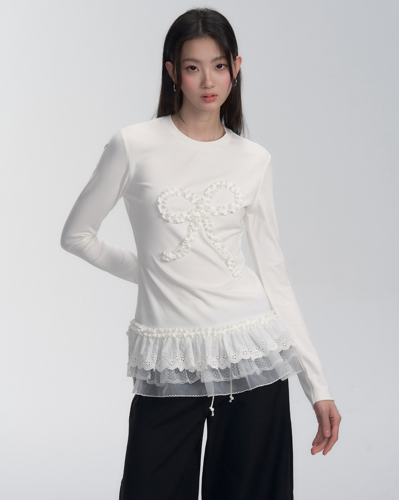 레이어드 룩으로 연출할 수 있는 레이스 티셔츠입니다.