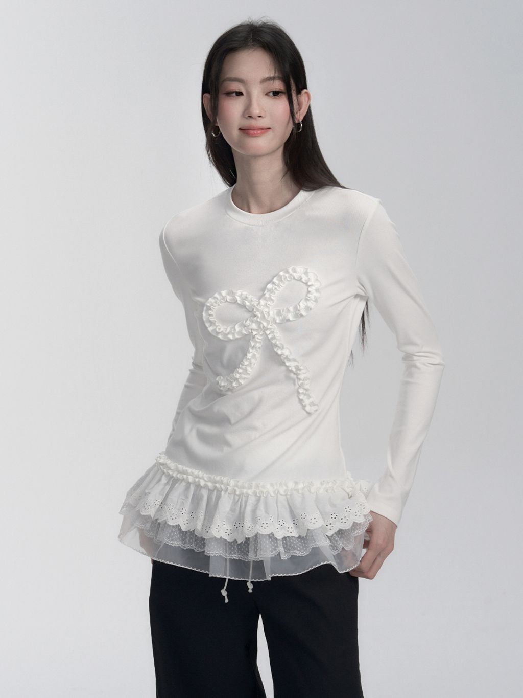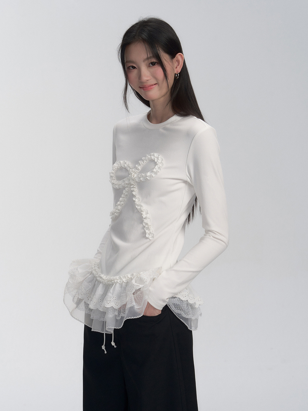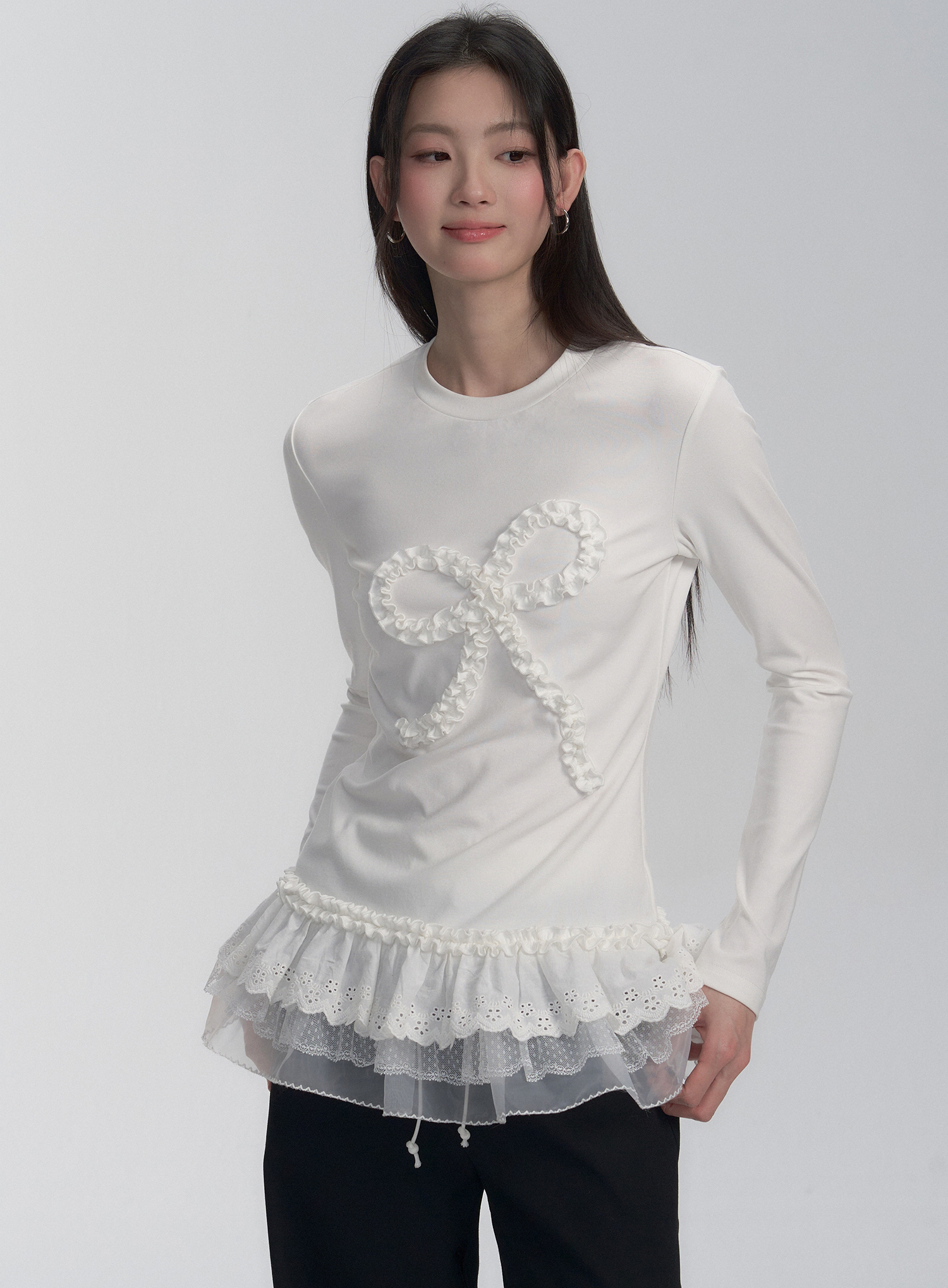 레이어드 룩으로 연출할 수 있는 레이스 티셔츠입니다.