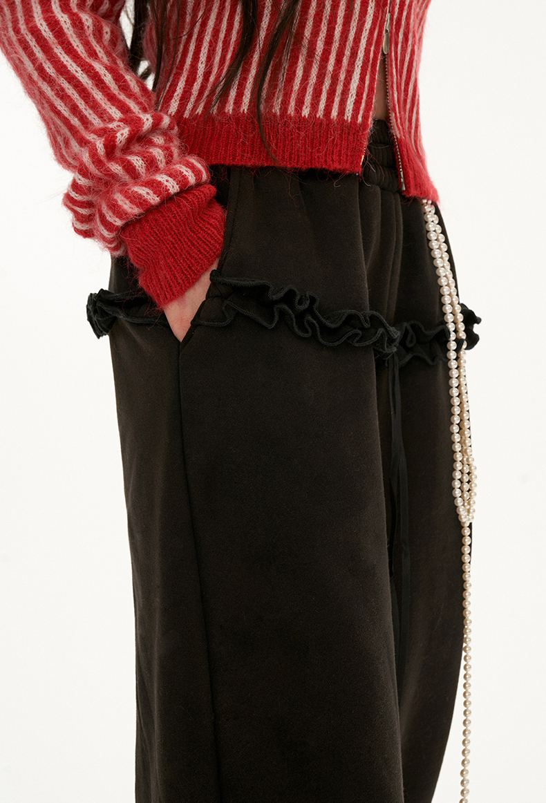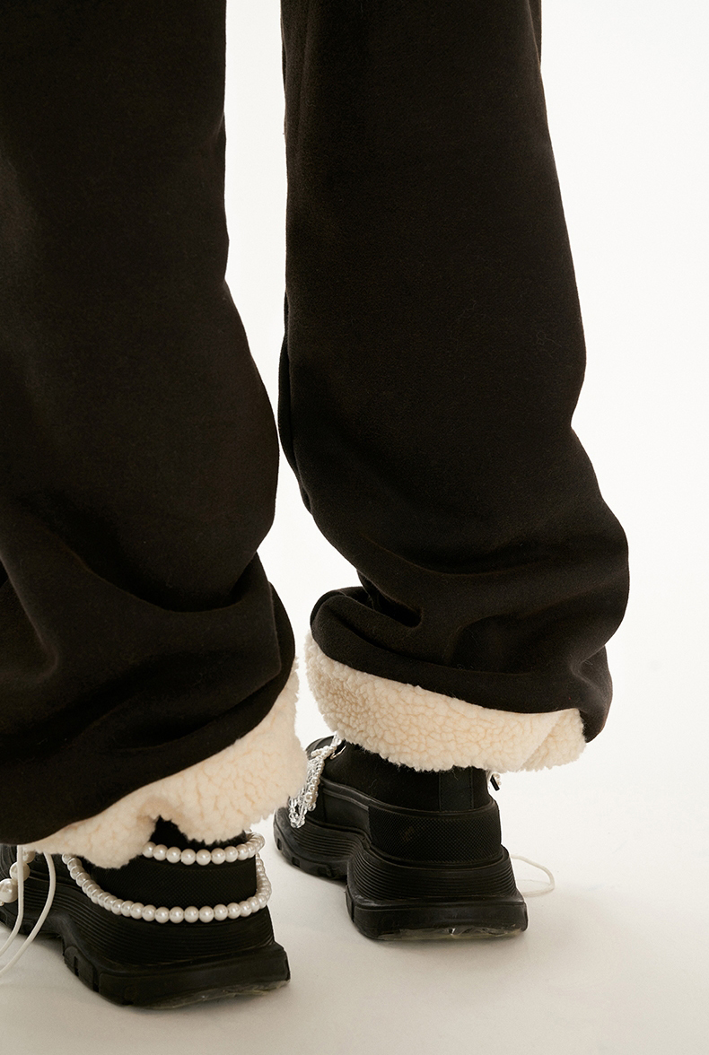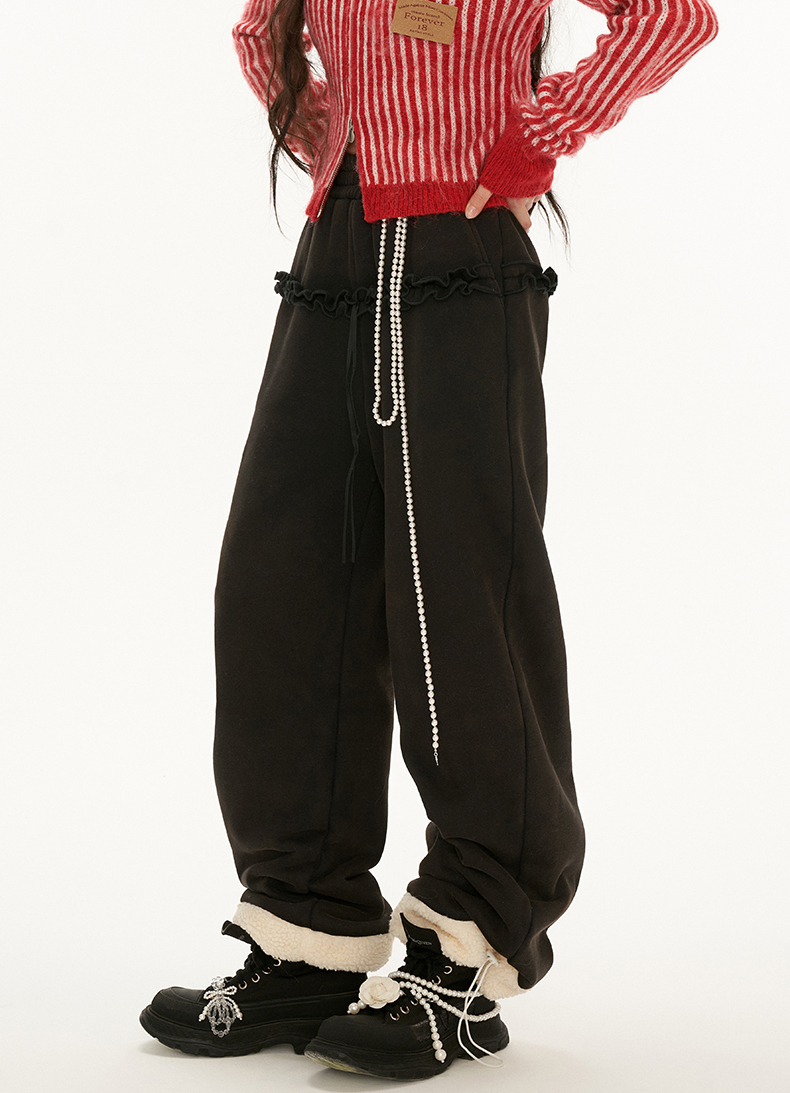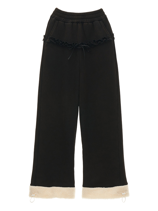 Frill Detiailed Fur lining Sweat Pants