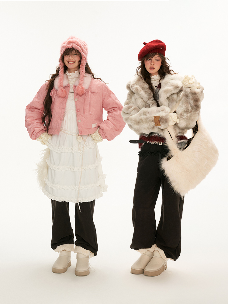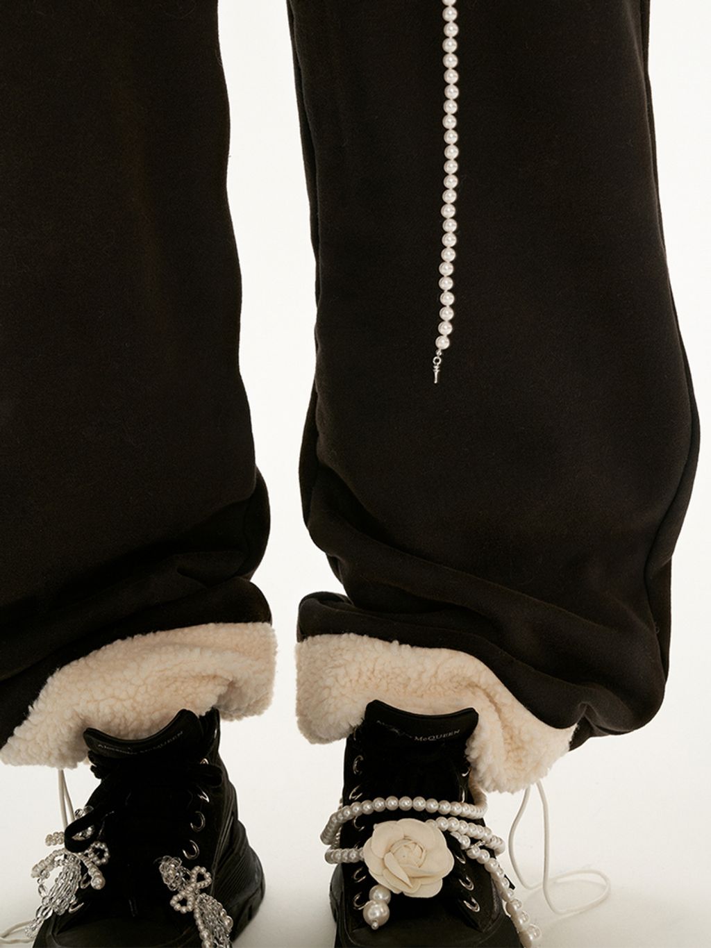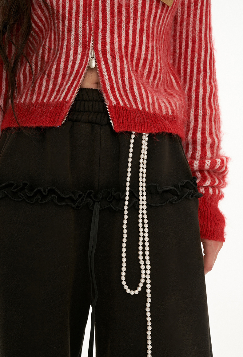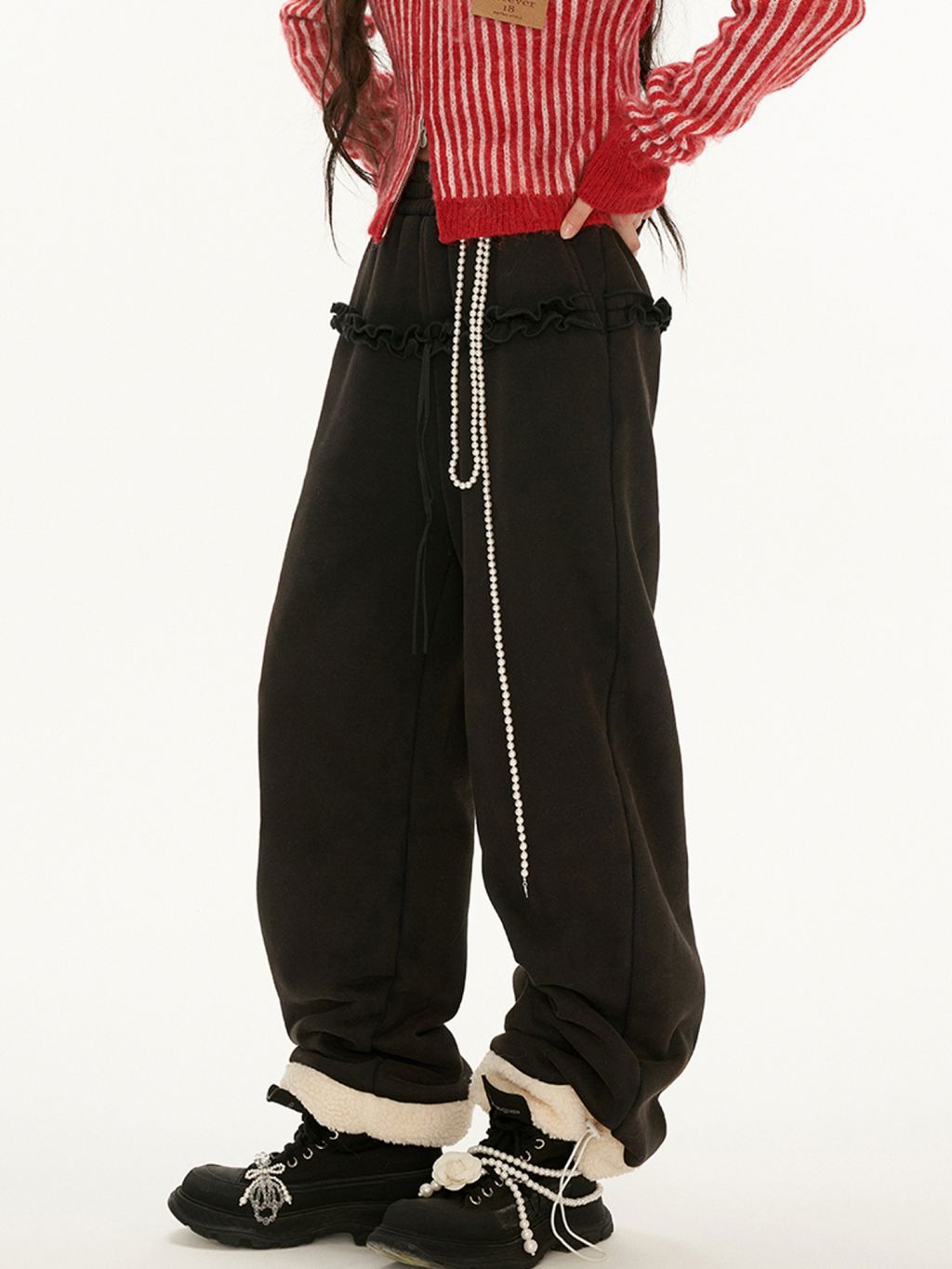 Frill Detiailed Fur lining Sweat Pants