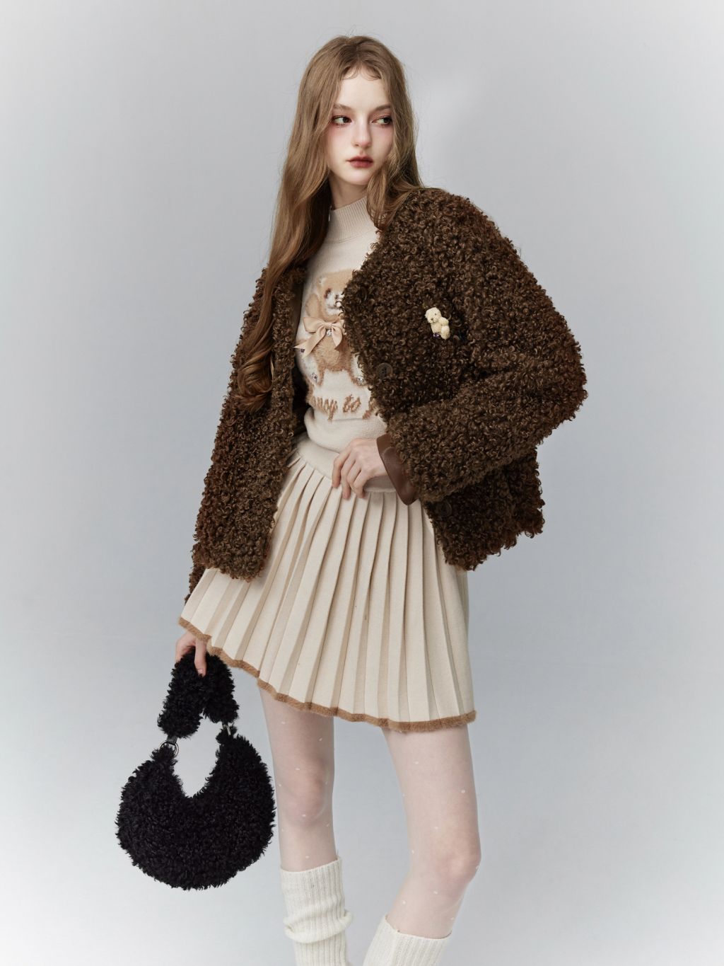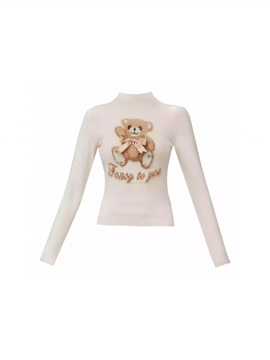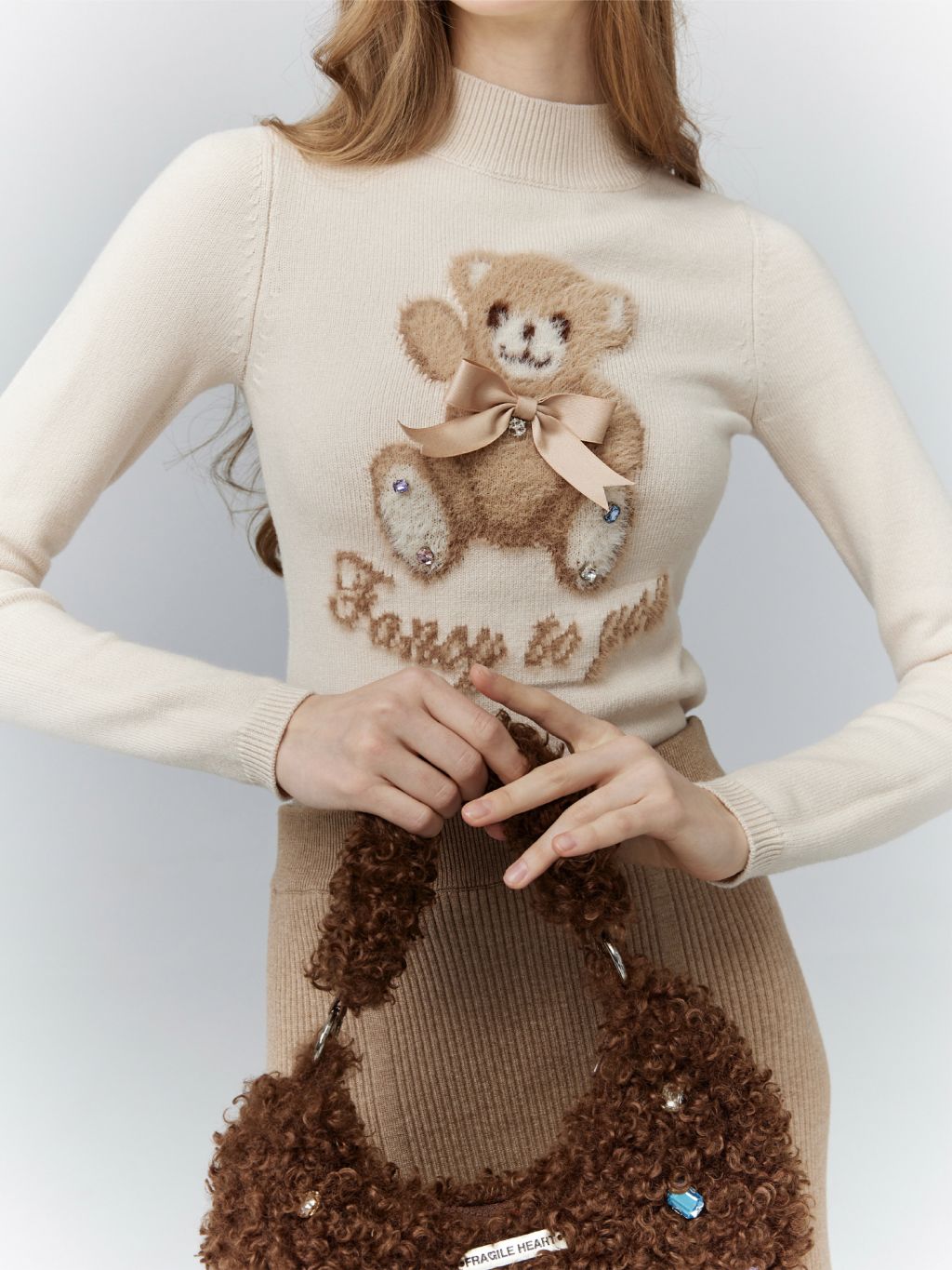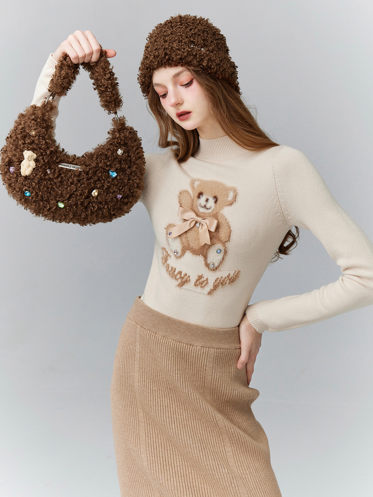 테디베어 패턴이 포인트되는 스웨터 스커트 셋업입니다.