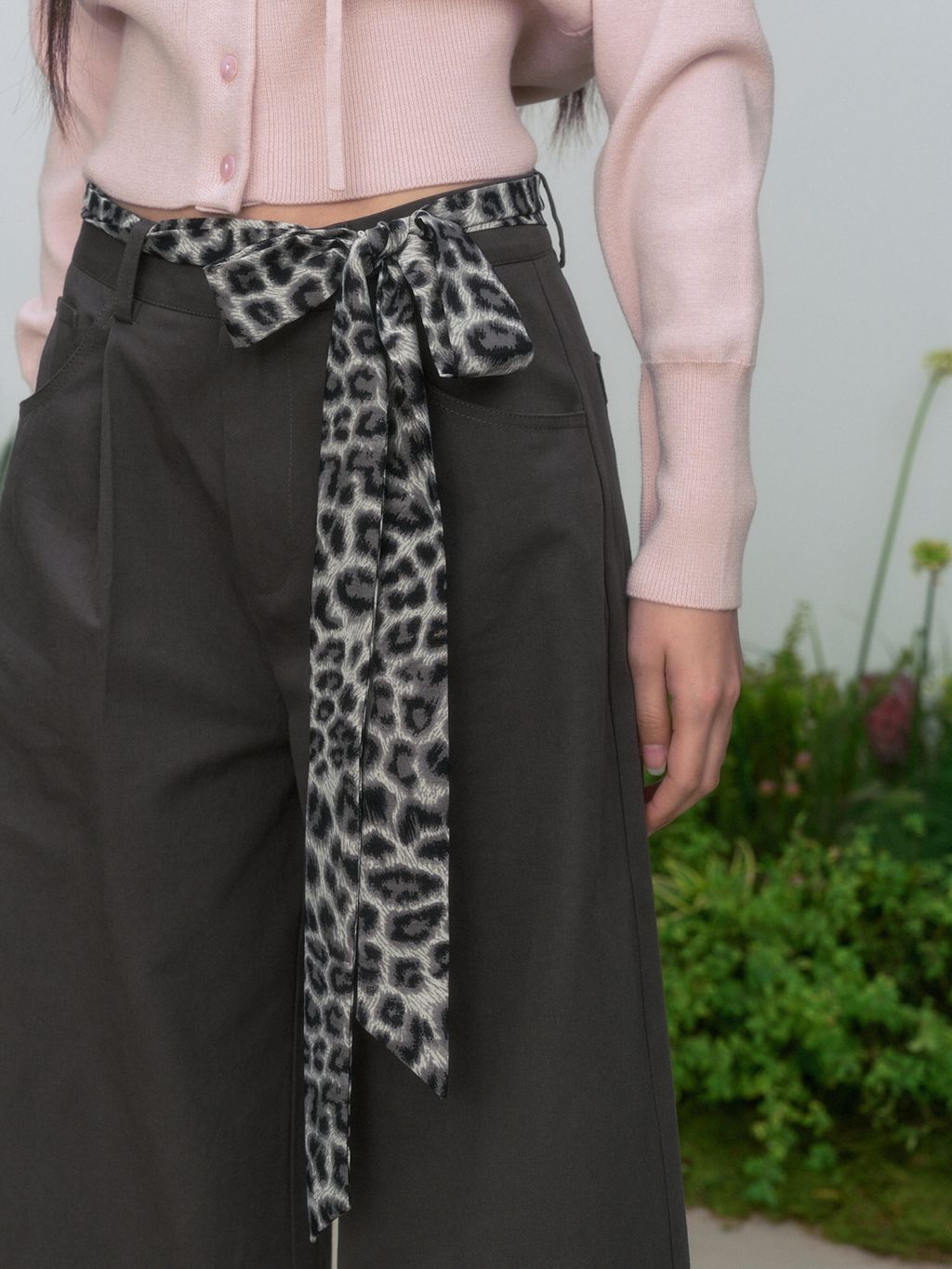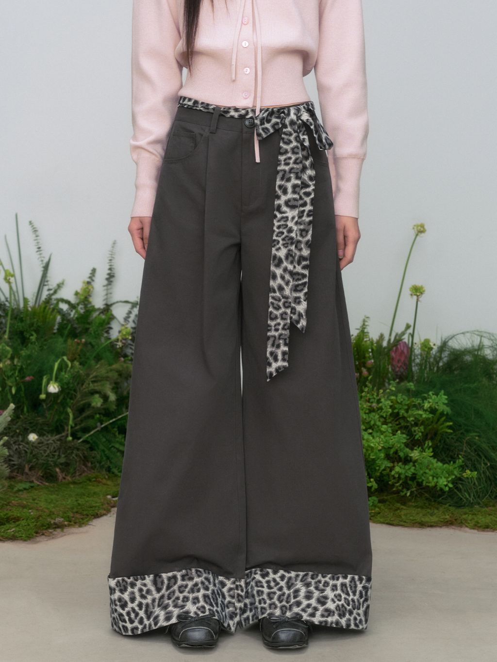 스타일리시한 무드의 레오파드 리본 벨트 와이드 팬츠입니다.