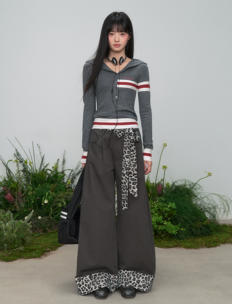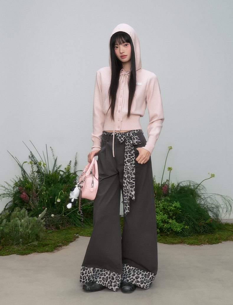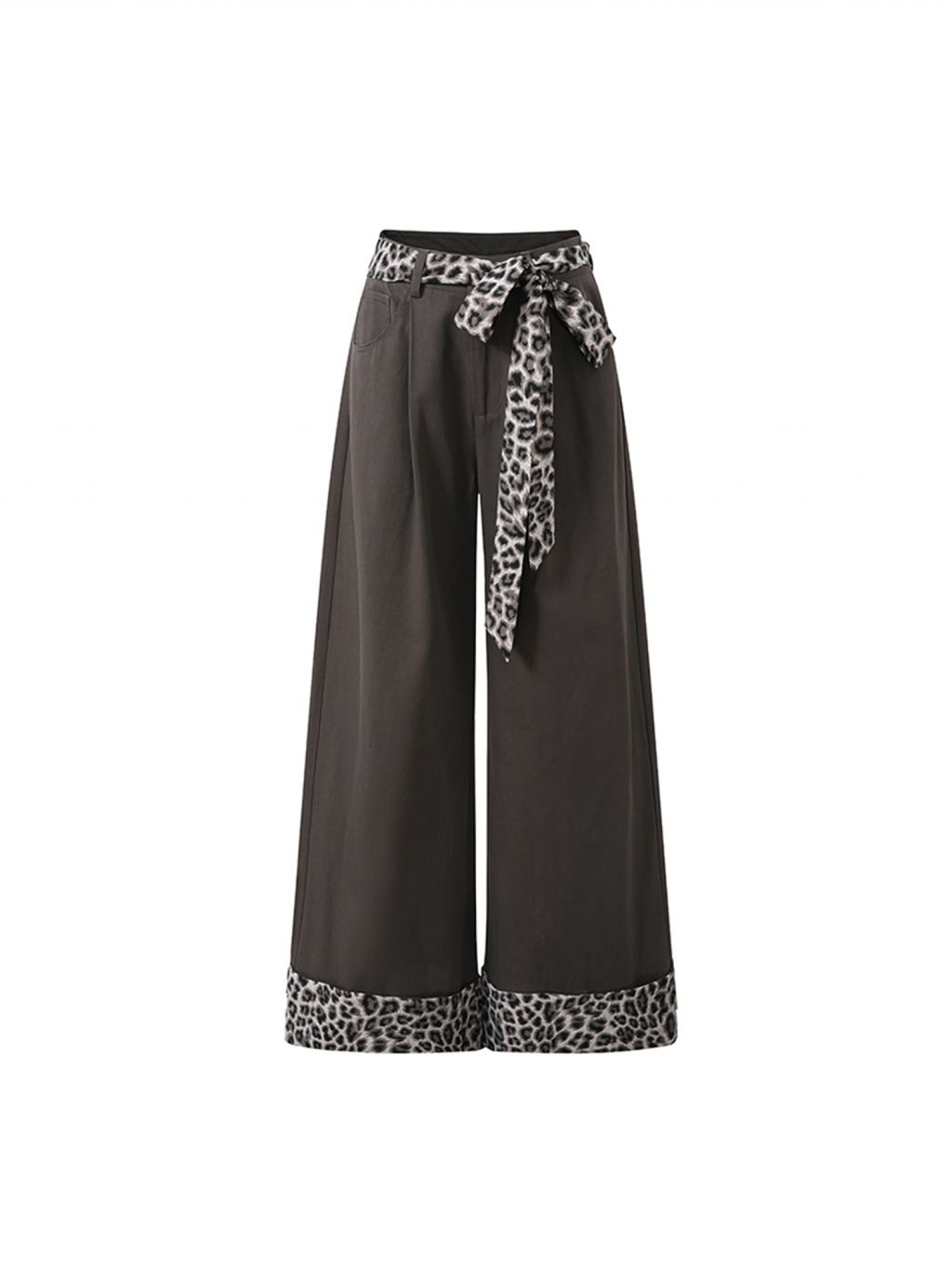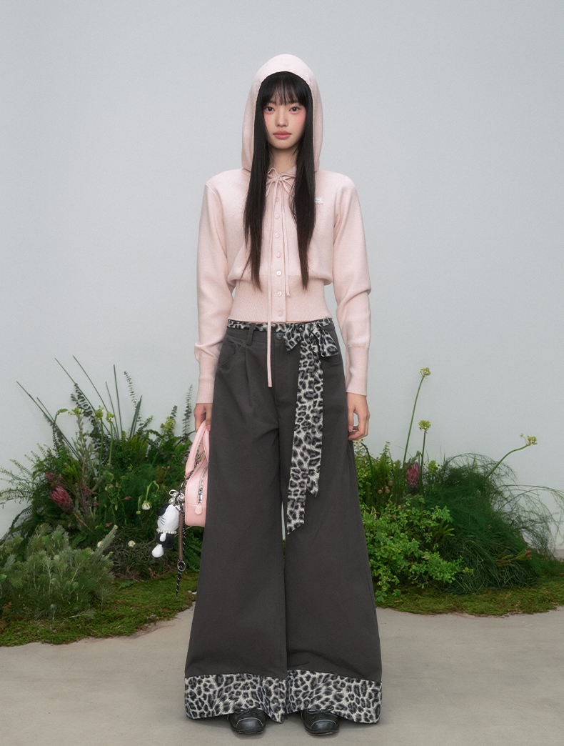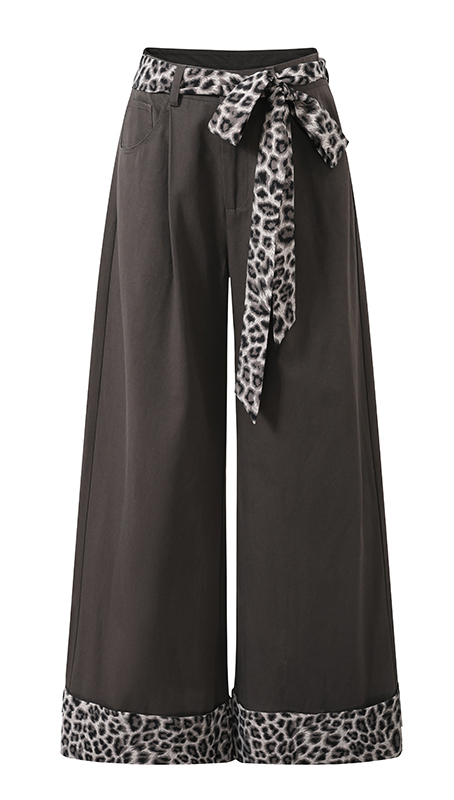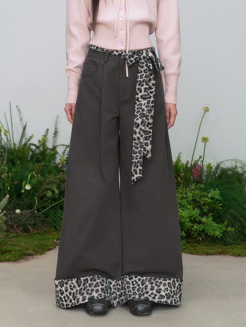 Leopard Ribbon Belted Wide Pants