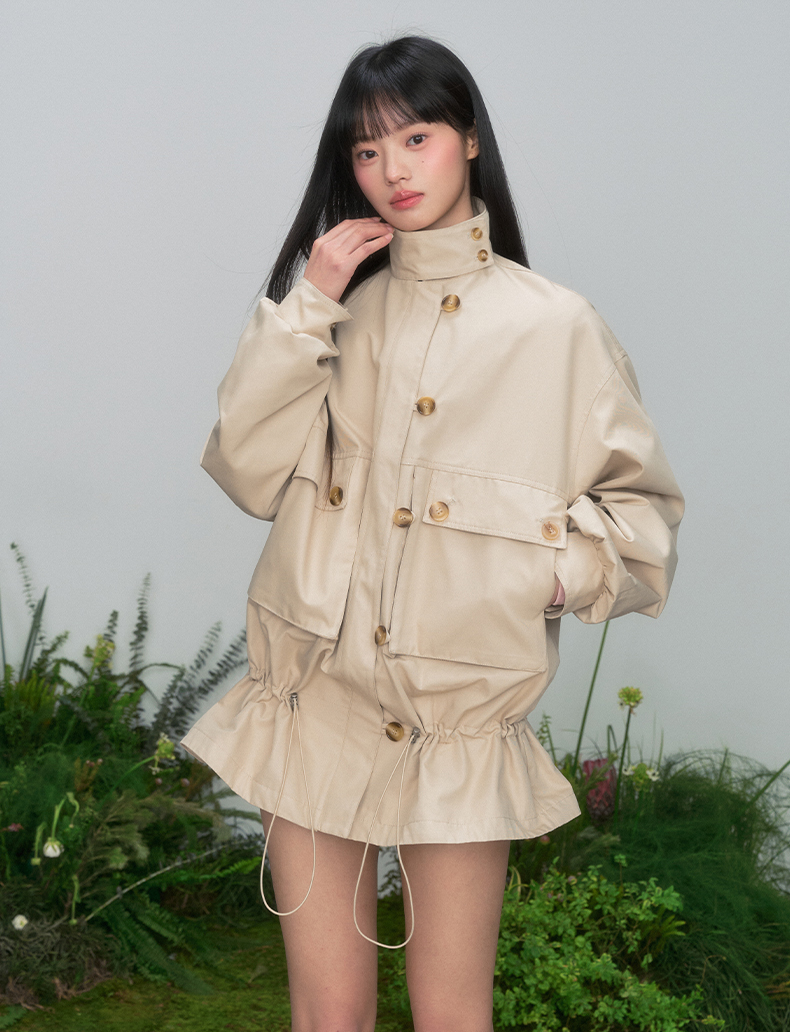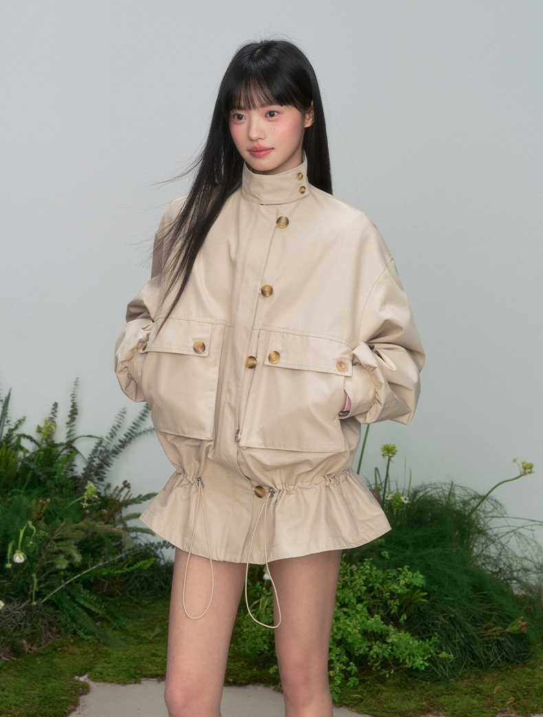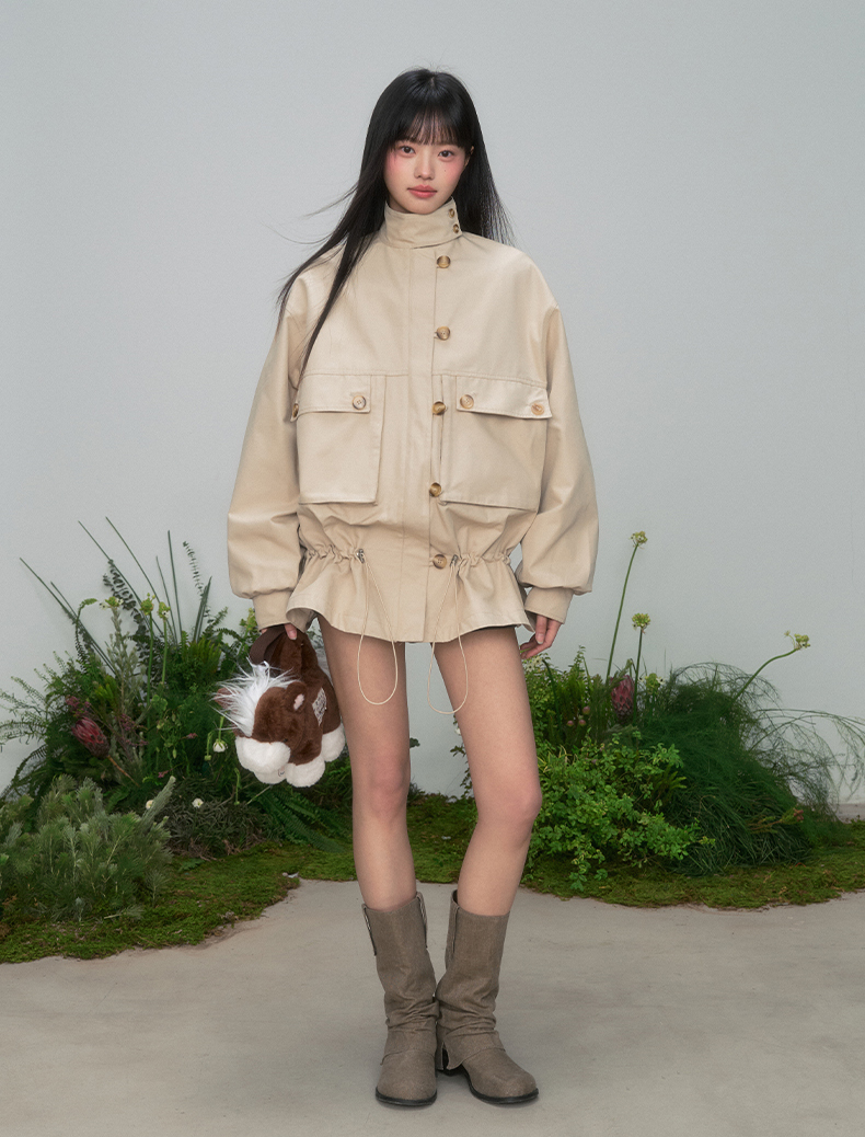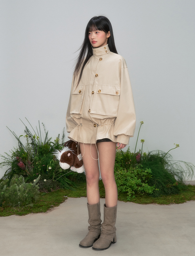 밑단 스트링으로 캐주얼함을 더한 봄버 자켓입니다.