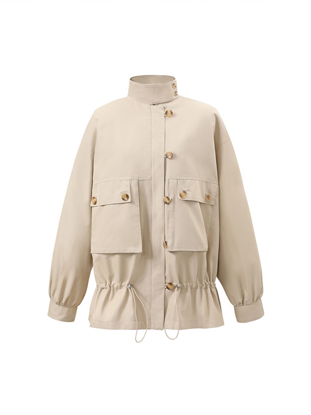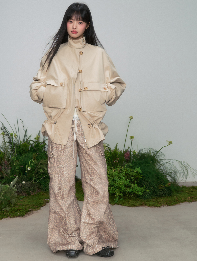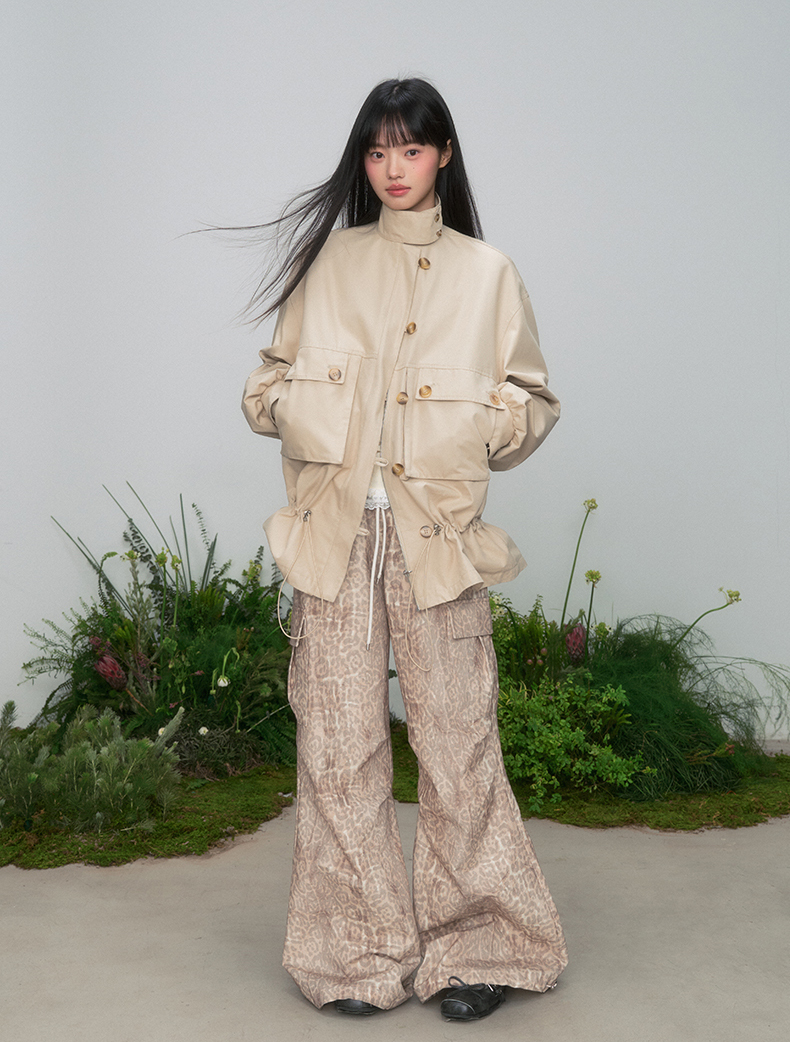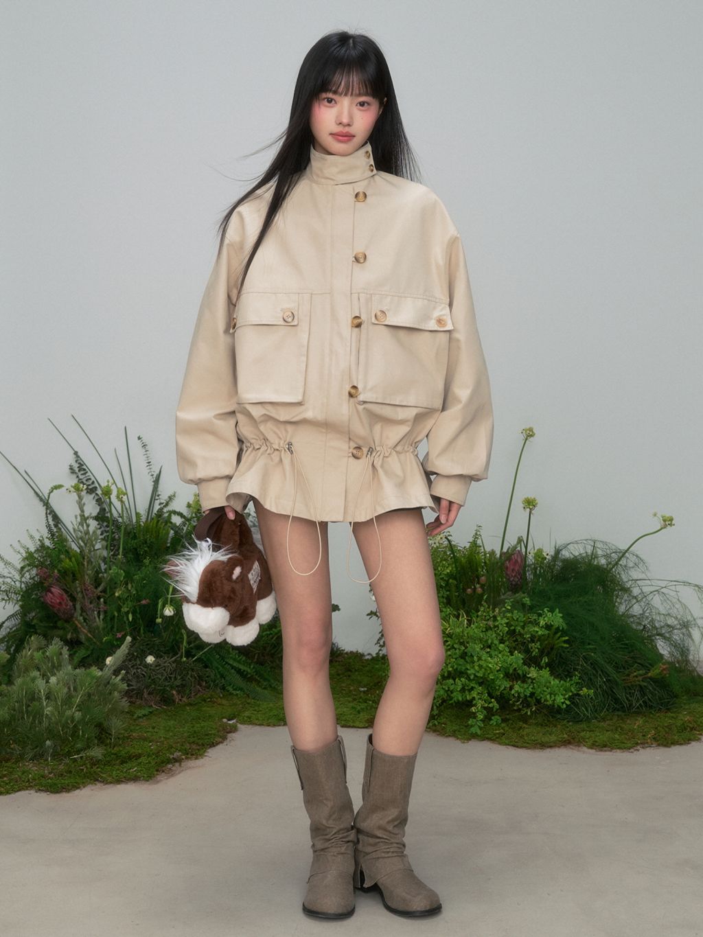 밑단 스트링으로 캐주얼함을 더한 봄버 자켓입니다.