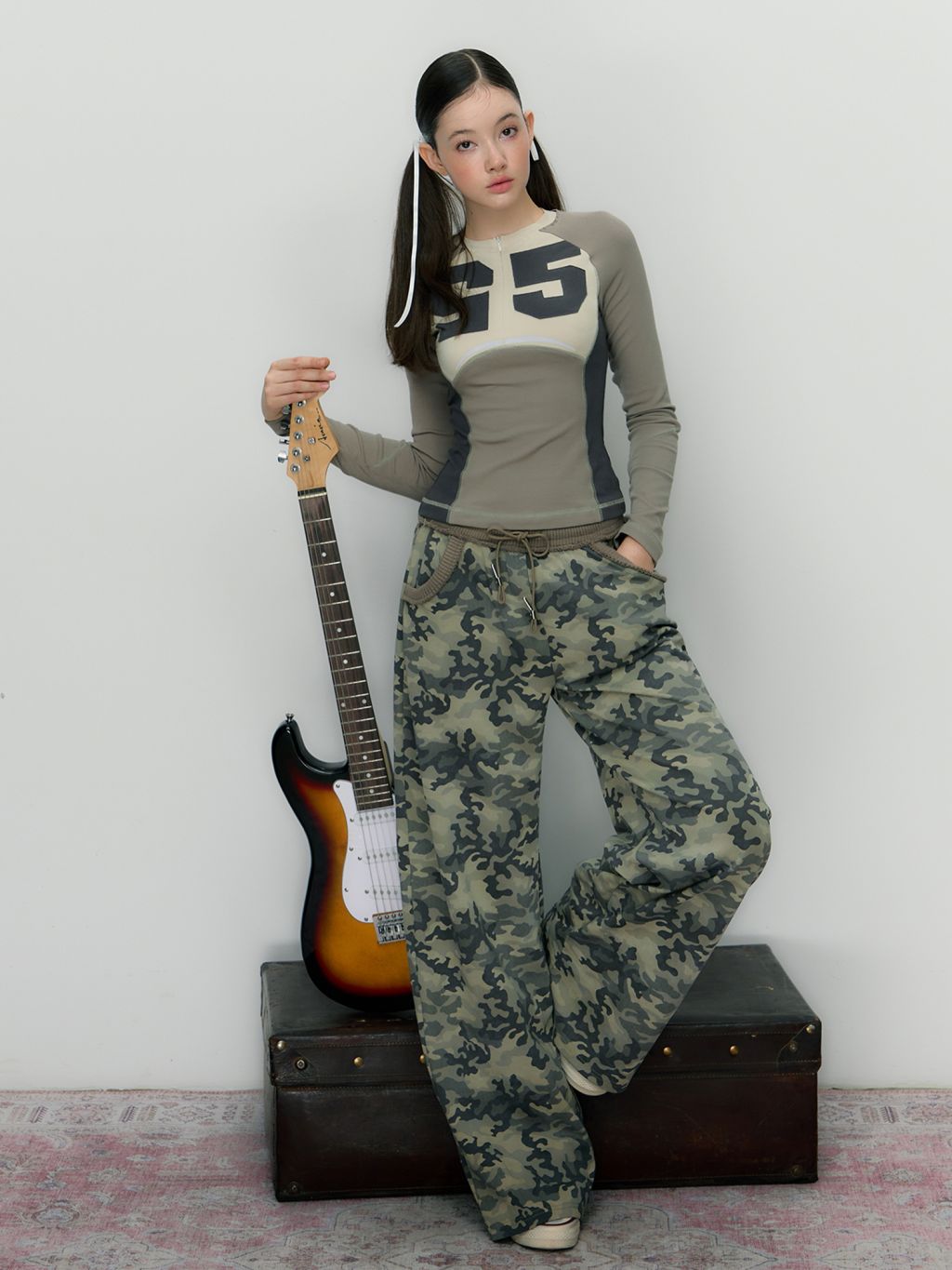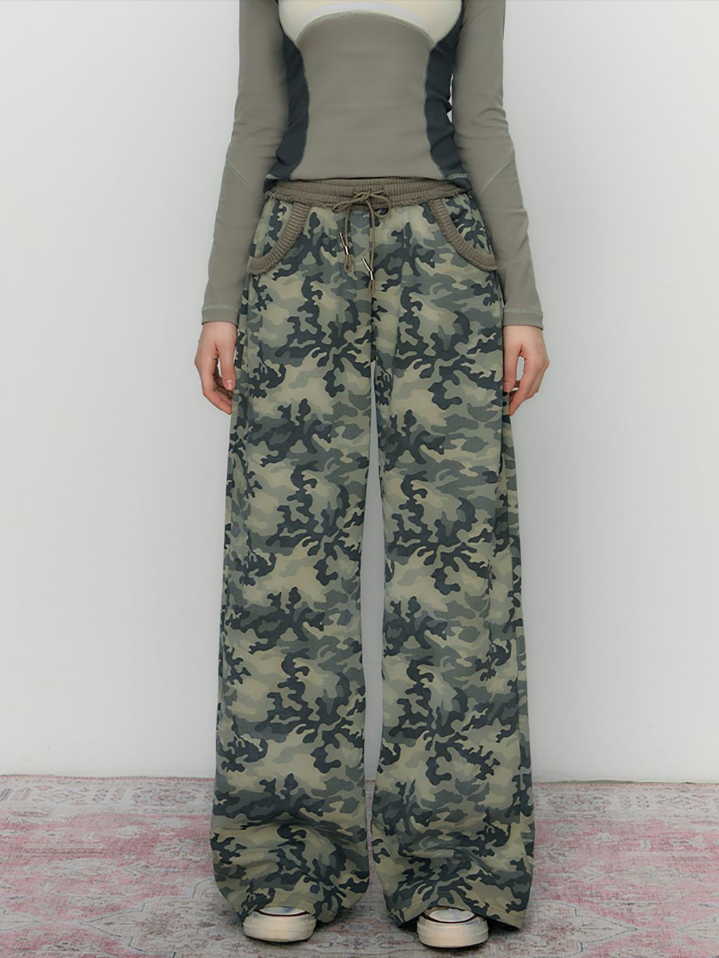 빈티지한 카모플라쥬 패턴의 롱 팬츠입니다.